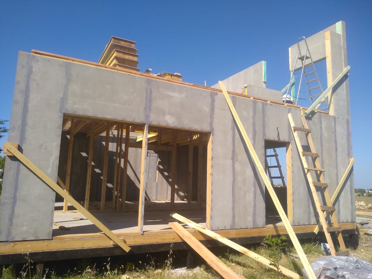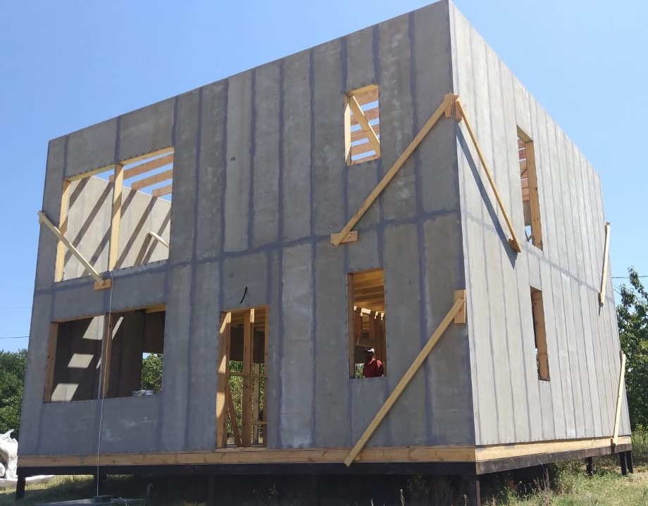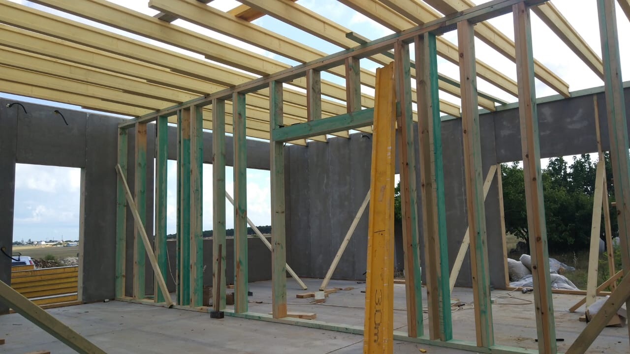 Ростверк изготовлен из калиброванного клееного бруса и защищен снаружи цементно-стружечной плитой