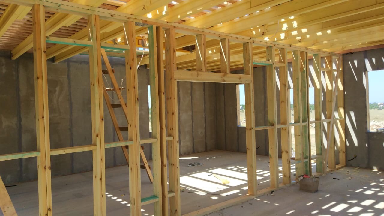 Наш обвязочный брус (ростверк) выполнен из калиброванного клееного пиломатериала собственного производства и защищен снаружи ЦСП листом!
