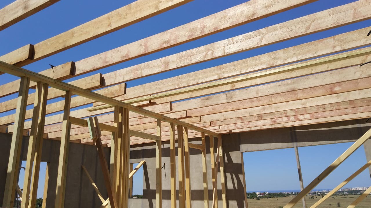 Кровля может быть построена из бруса 150х50мм или SIP панелей. В качестве кровельного материала можно использовать: металлочерепицу, битумную и керамическую черепицу. Также производим кровельные шовные сэндвич-панели.