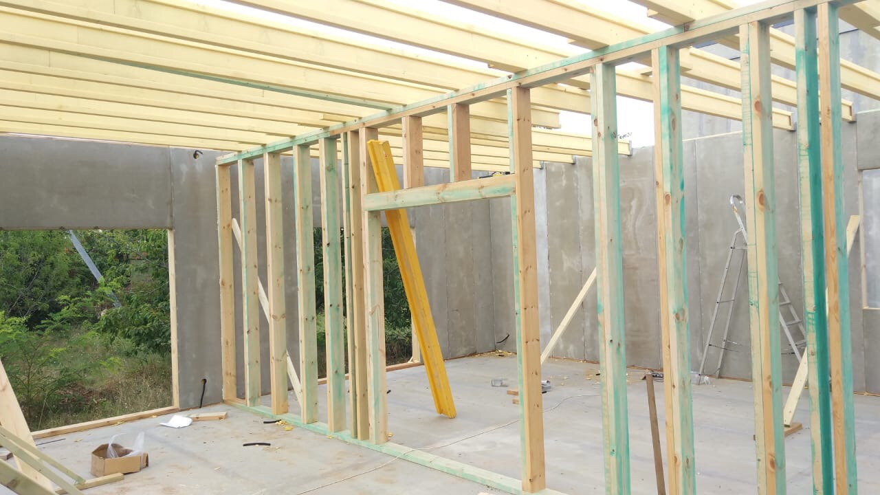 В межэтажных перекрытиях в качестве несущих лаг мы применяем двутавровые балки собственного производства с влагостойкой 24 мм. фанерой в сердечнике.