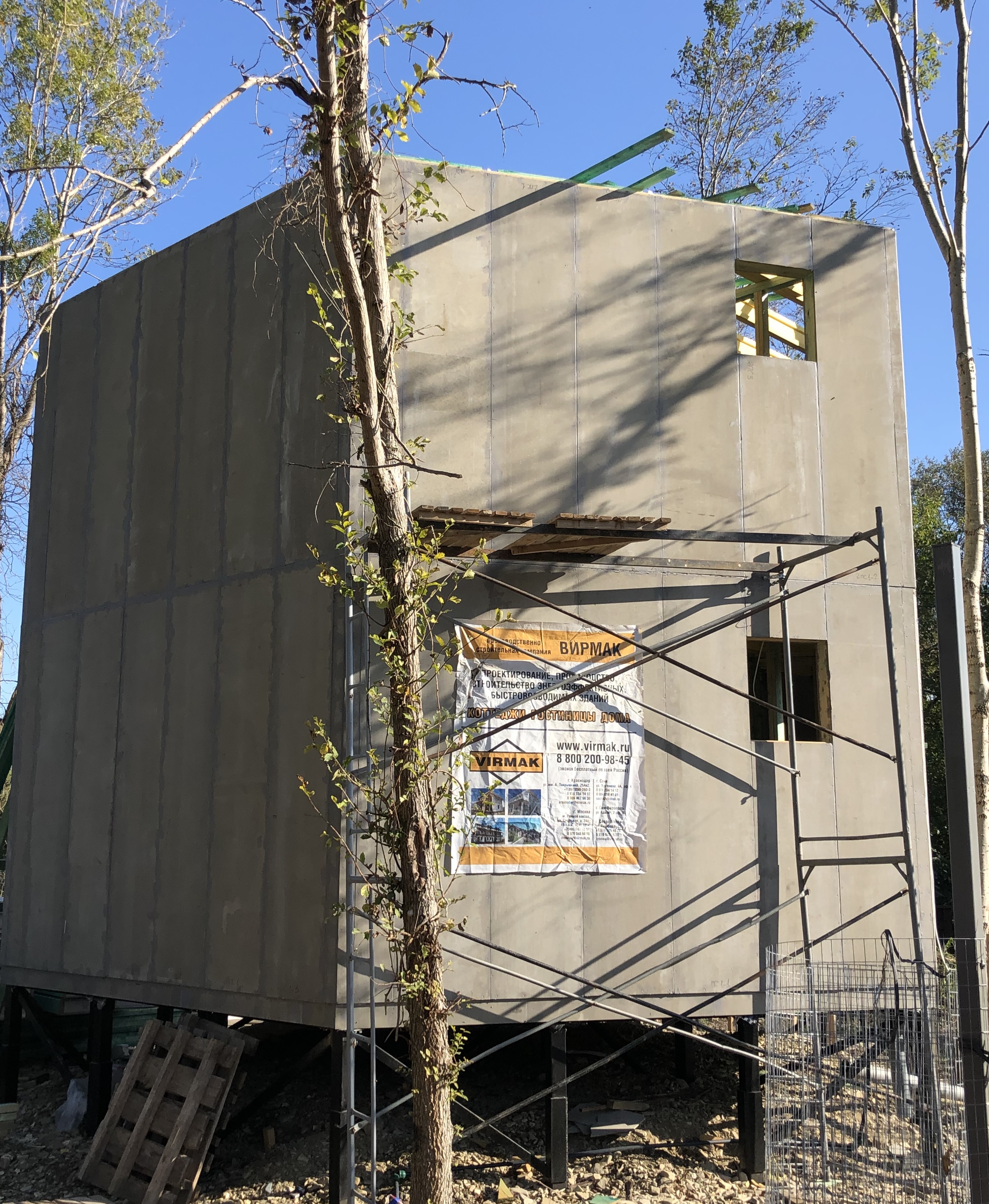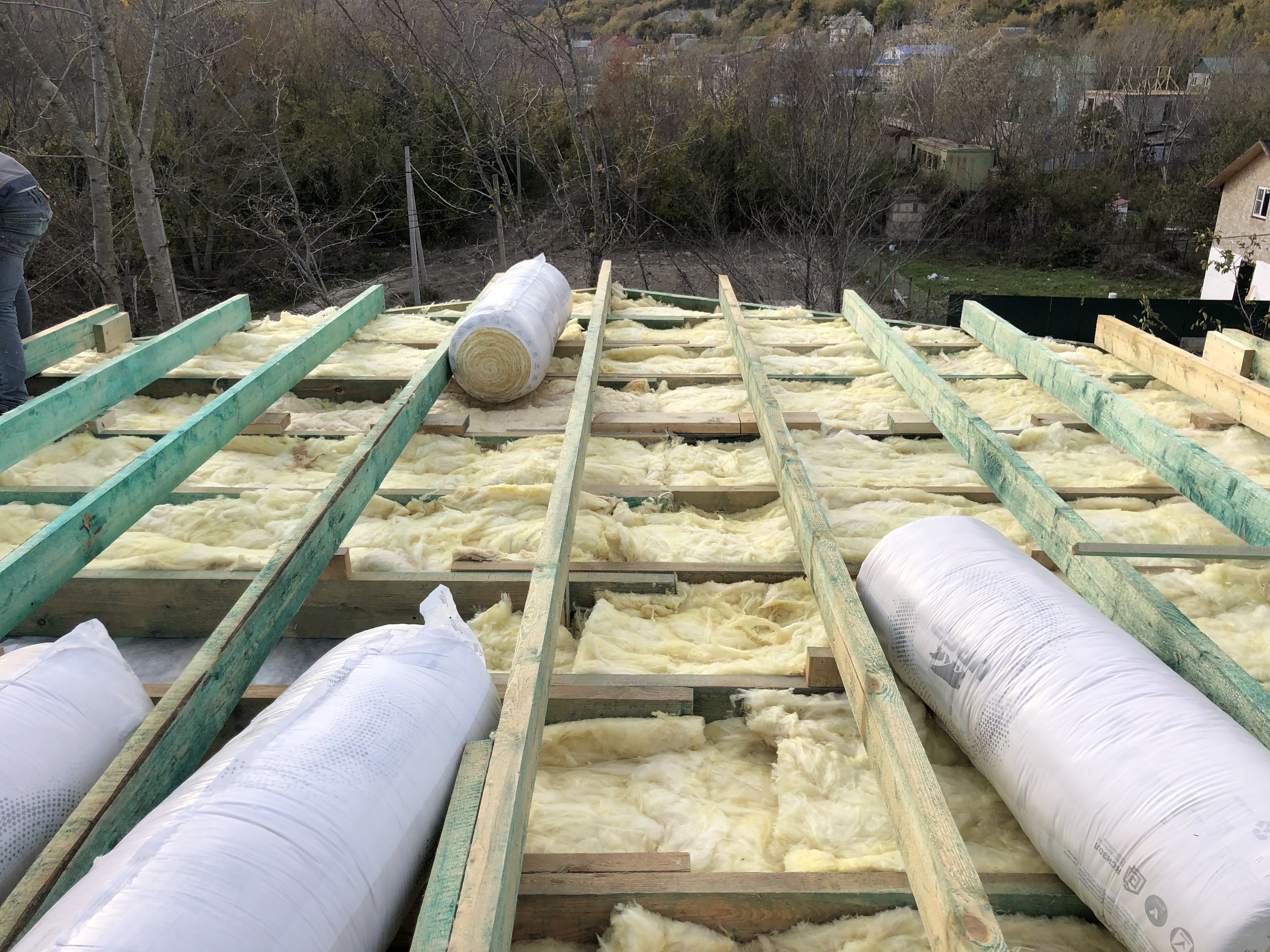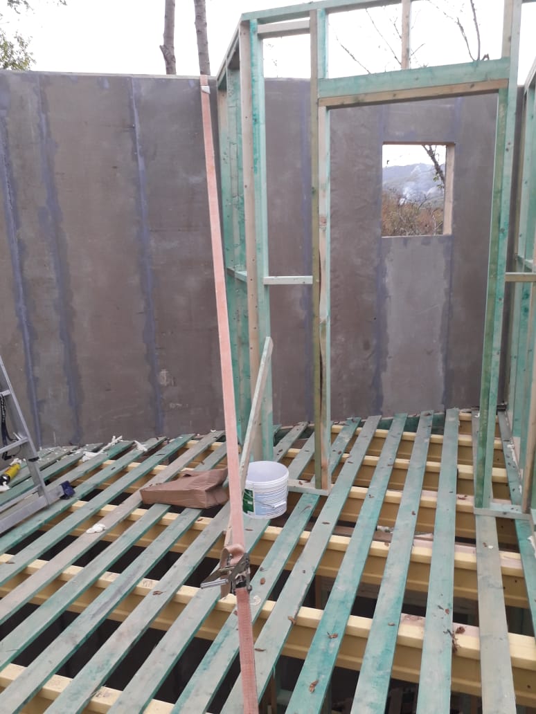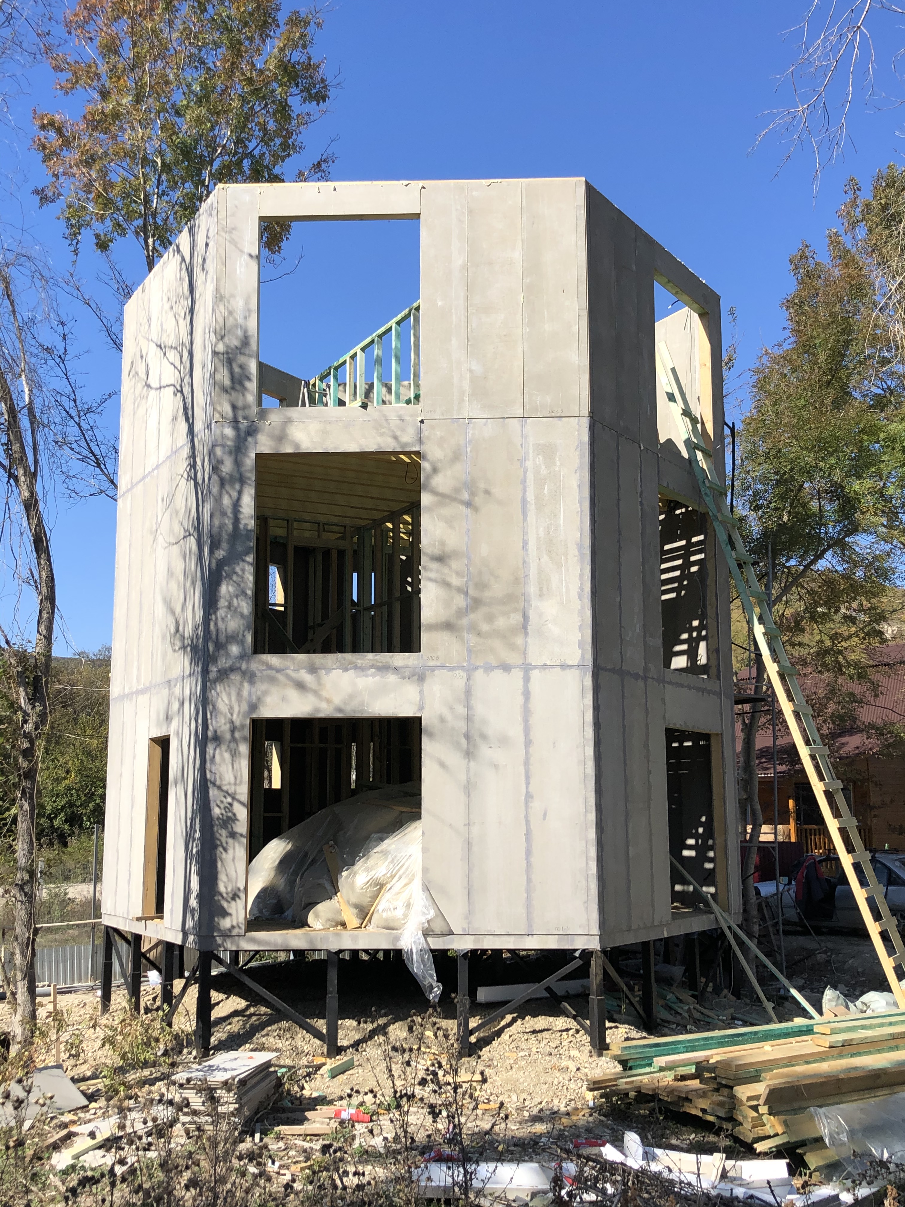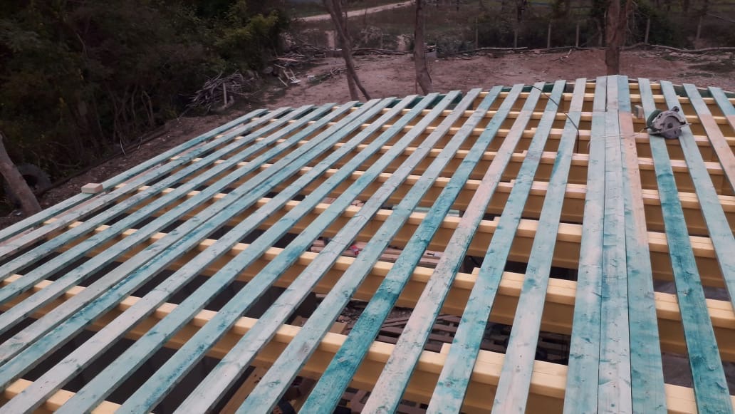 Ростверк изготовлен из калиброванного клееного бруса и защищен снаружи цементно-стружечной плитой