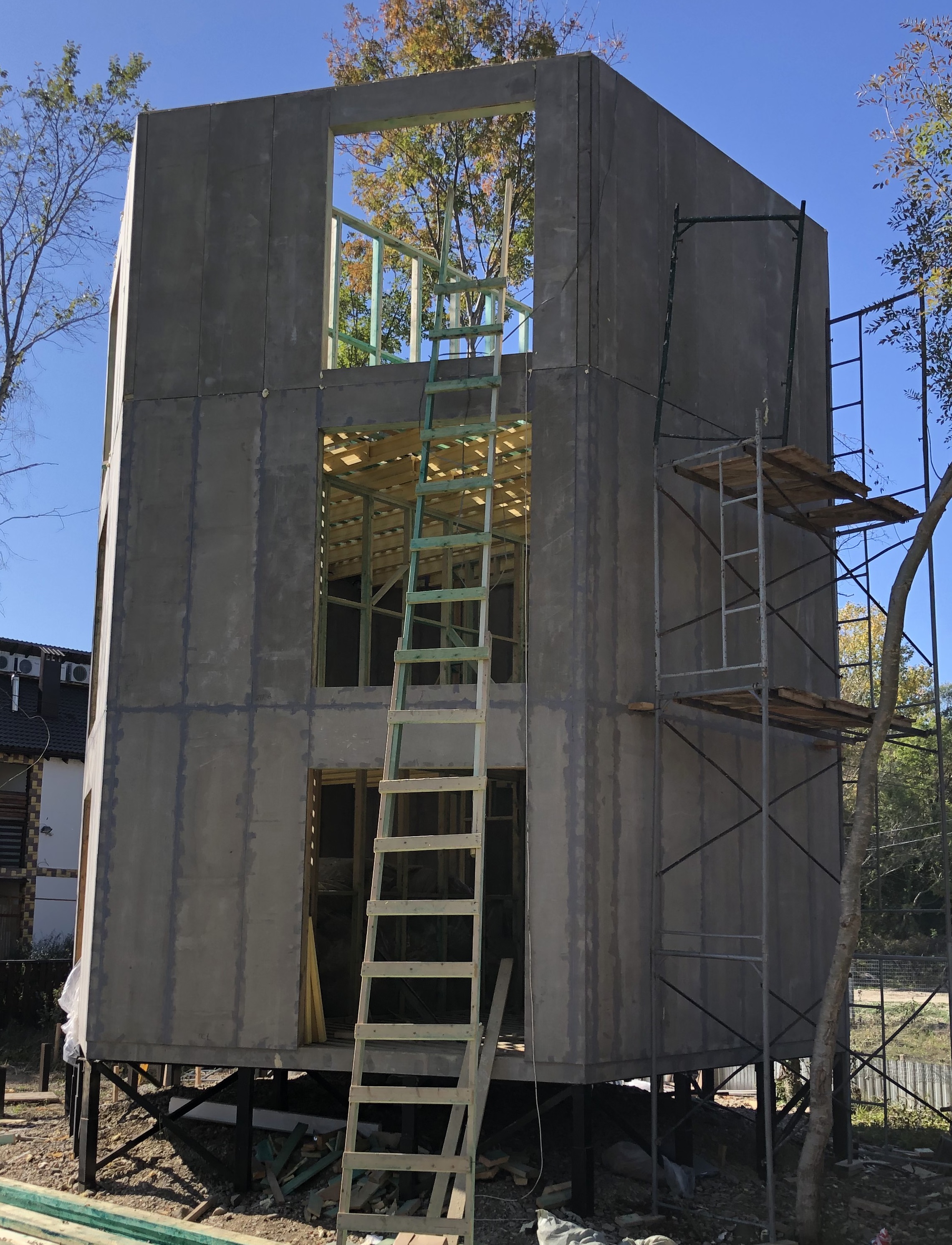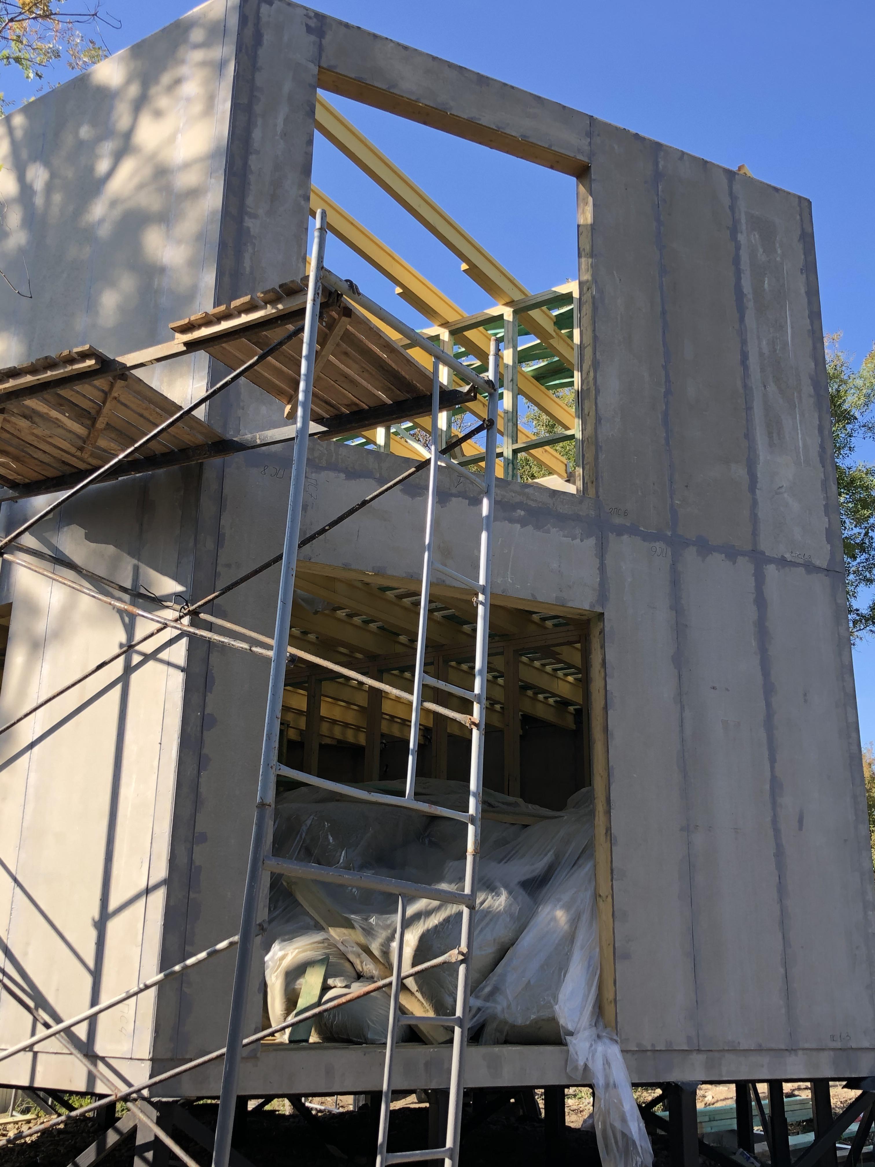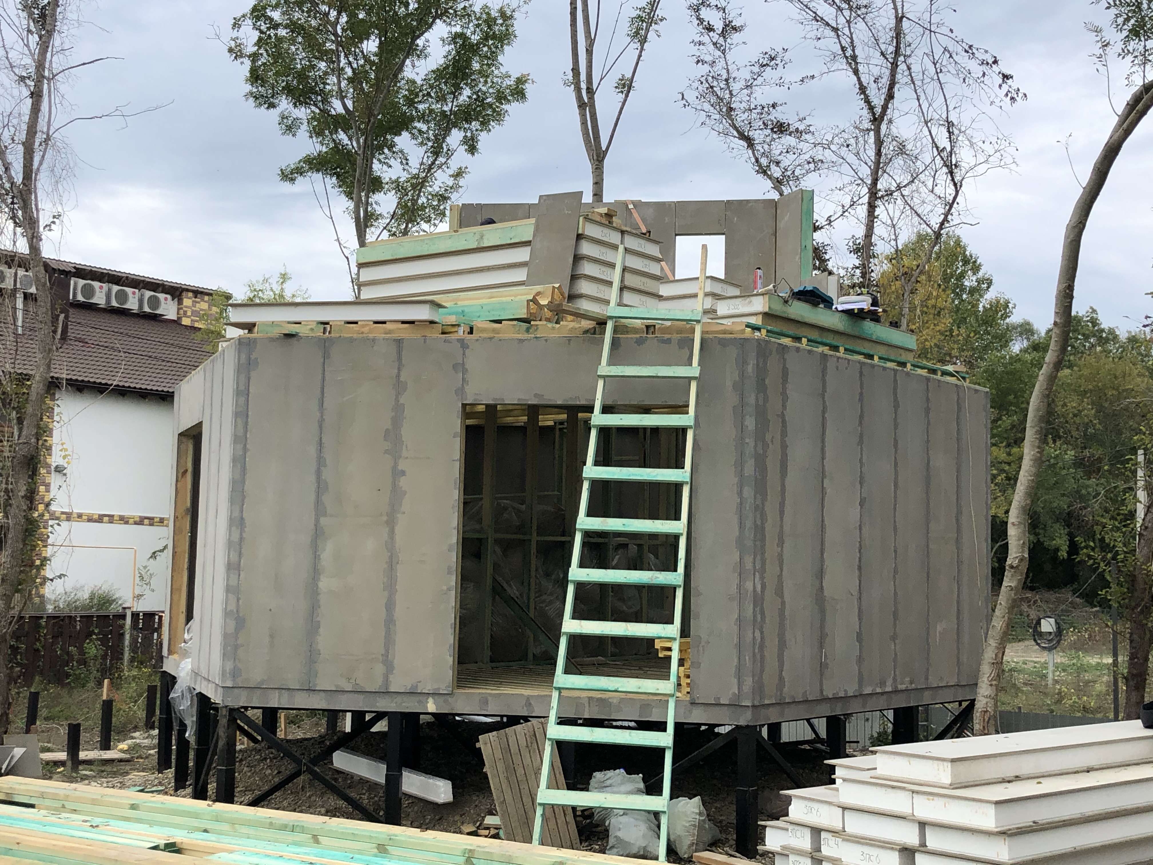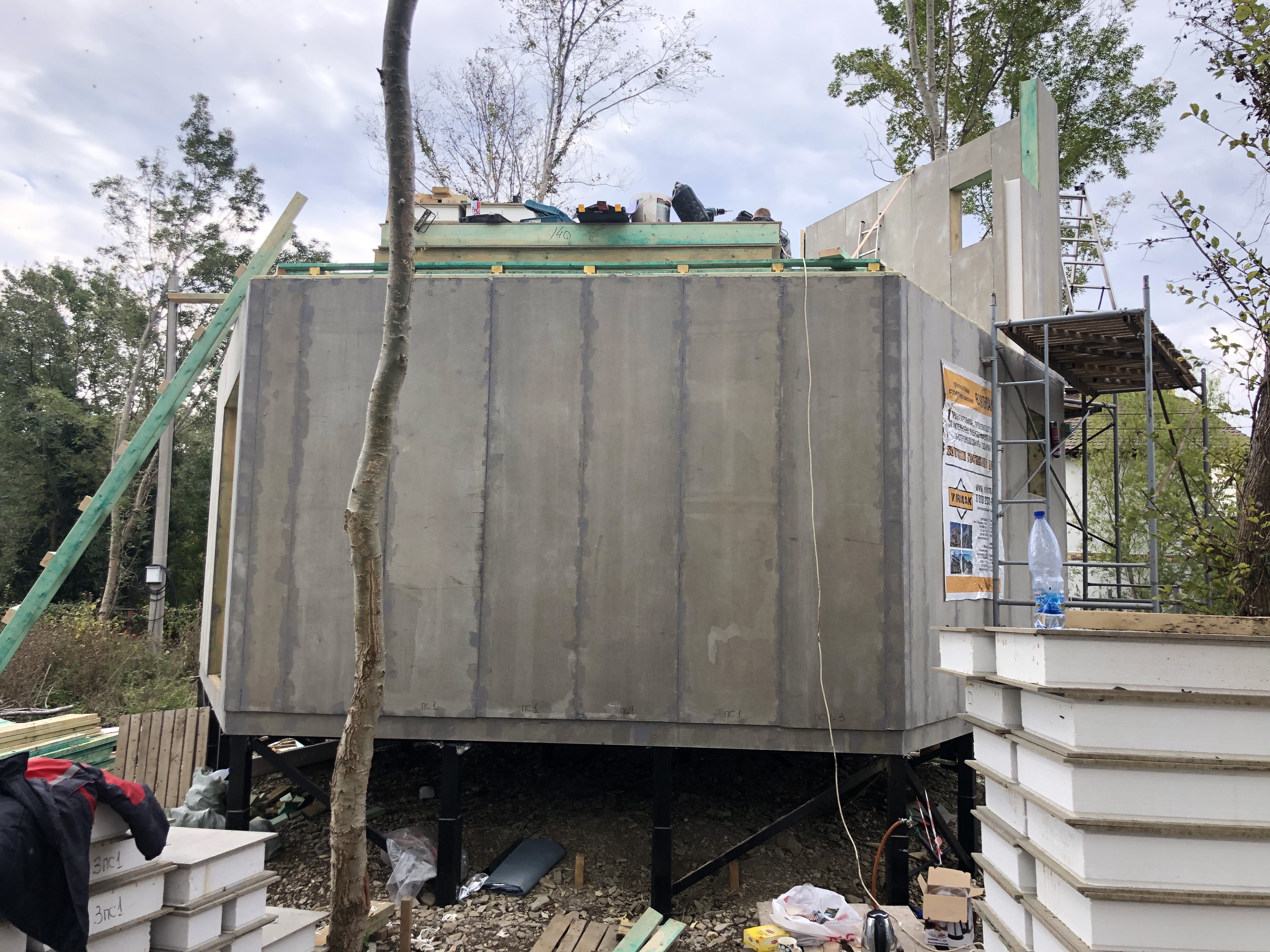 Ростверк изготовлен из калиброванного клееного бруса и защищен снаружи цементно-стружечной плитой