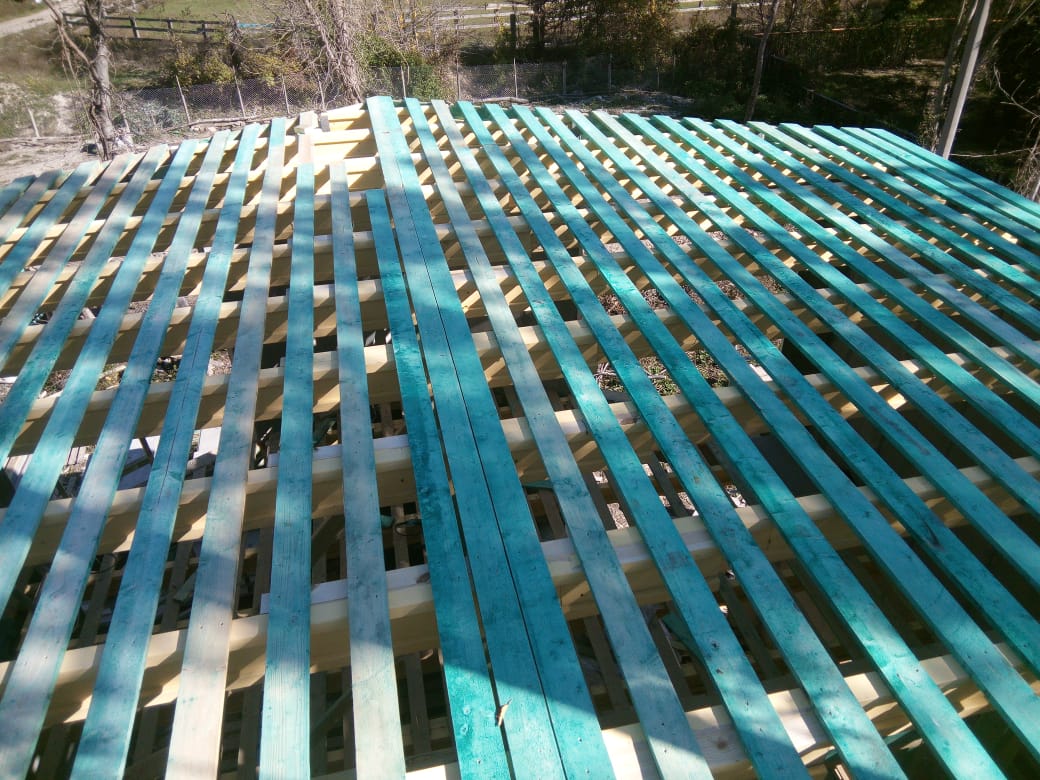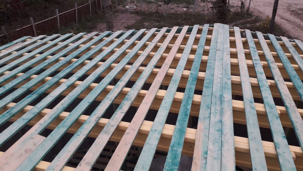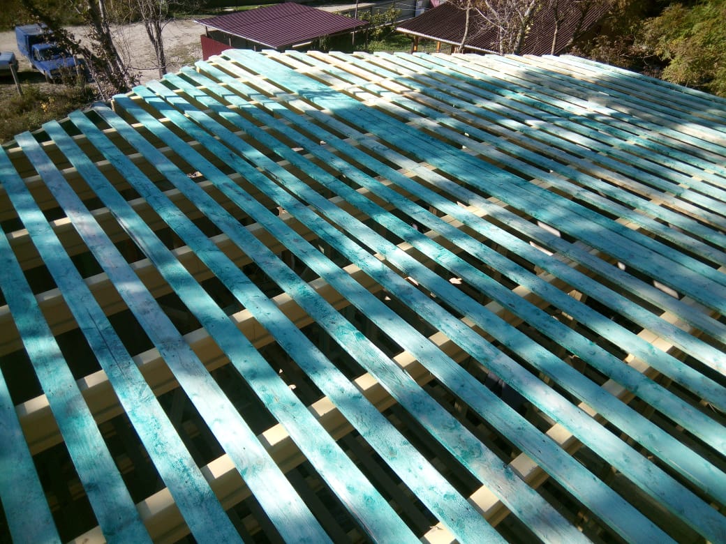 Кровля может быть построена из бруса 150х50мм или SIP панелей. В качестве кровельного материала можно использовать: металлочерепицу, битумную и керамическую черепицу. Также производим кровельные шовные сэндвич-панели.
