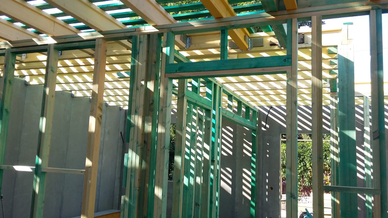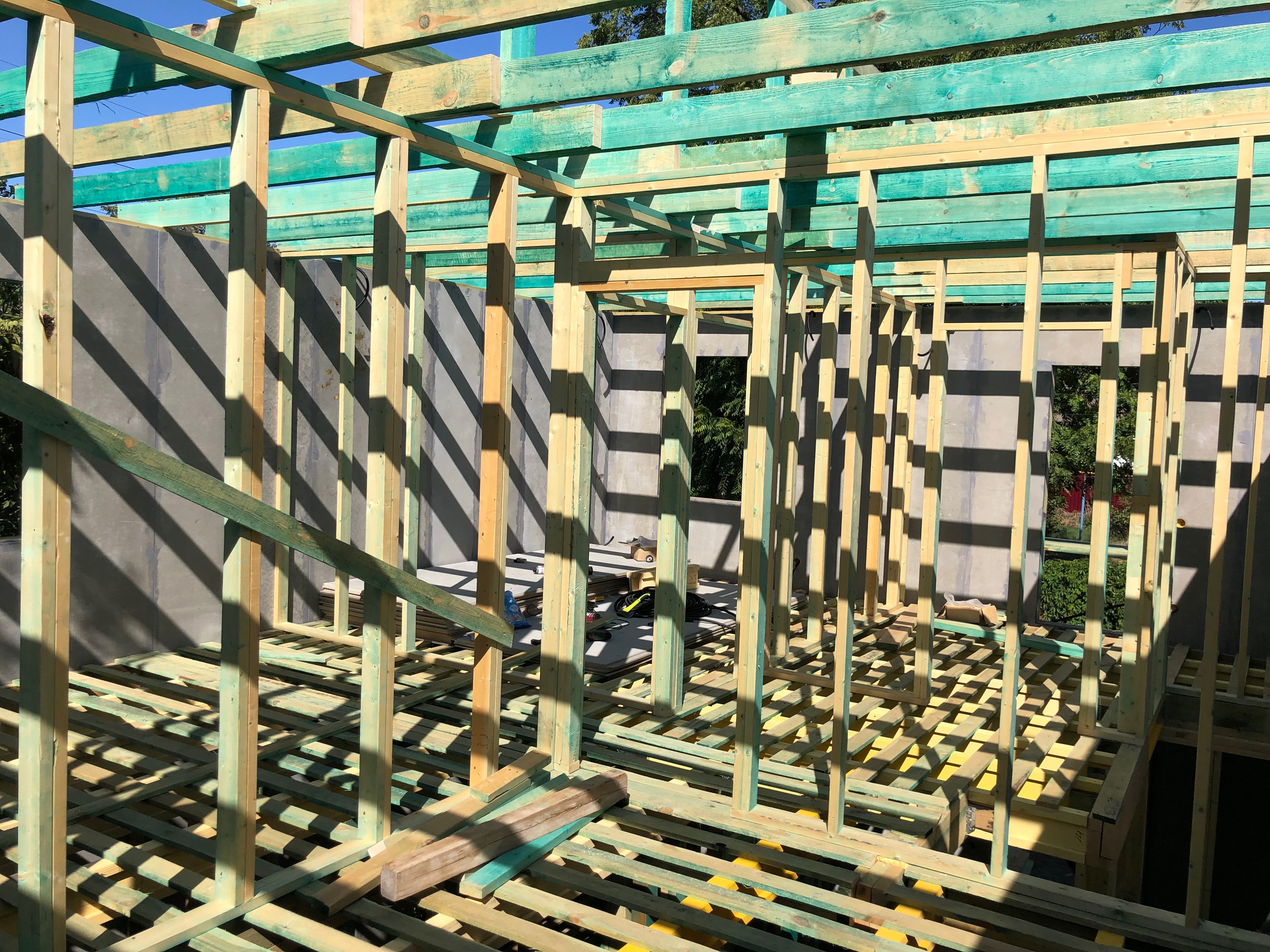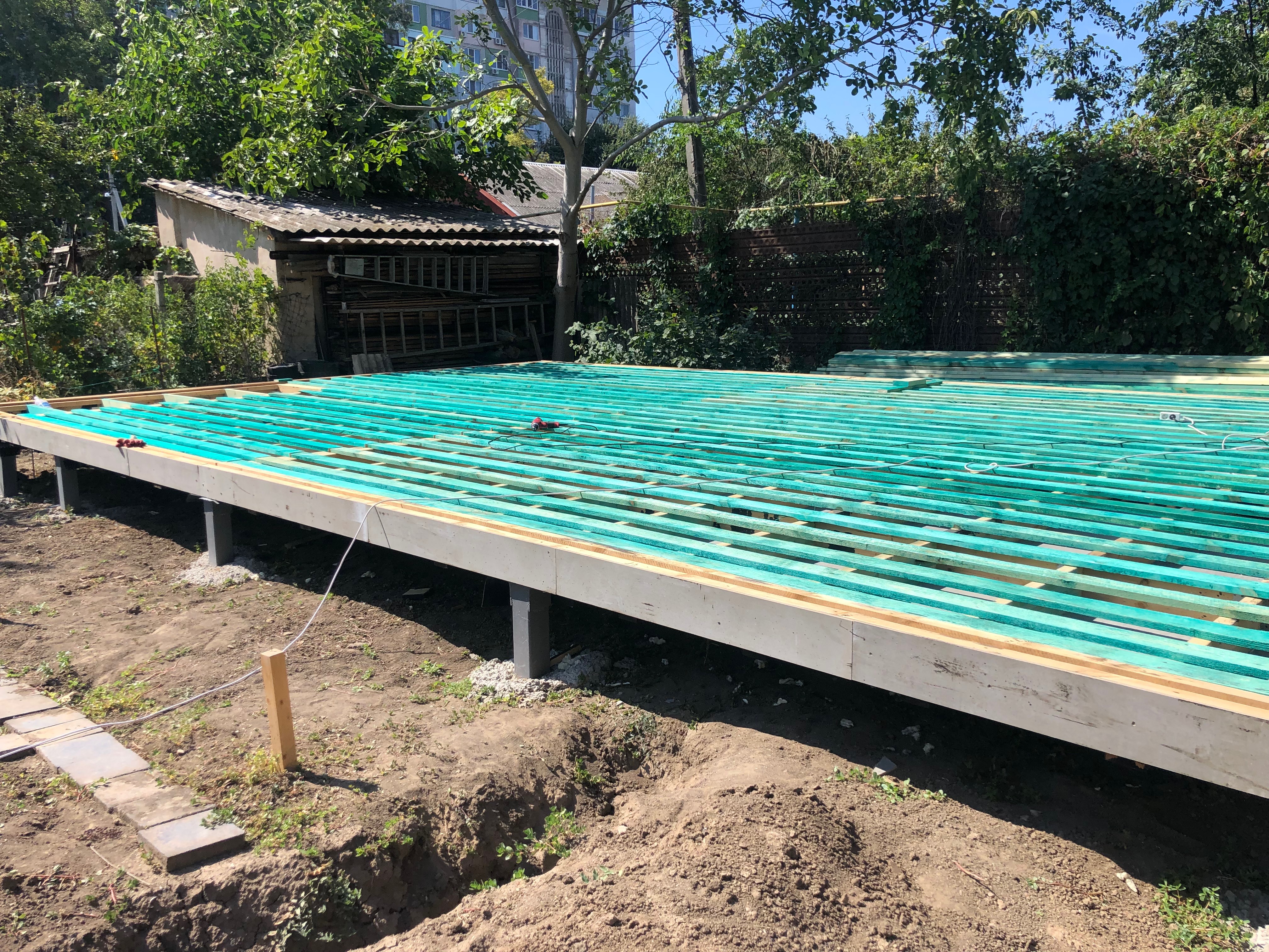 Ростверк изготовлен из калиброванного клееного бруса и защищен снаружи цементно-стружечной плитой
