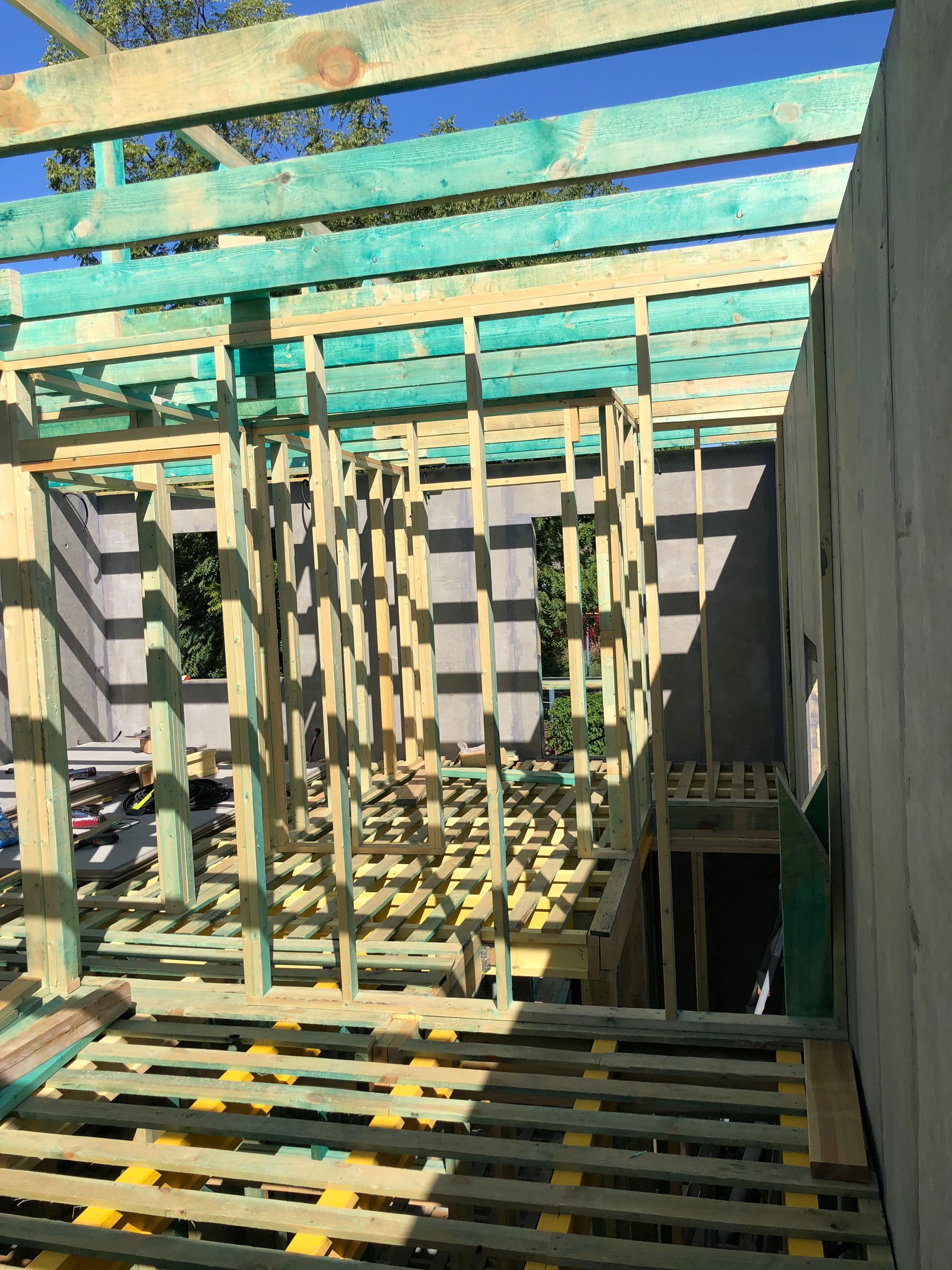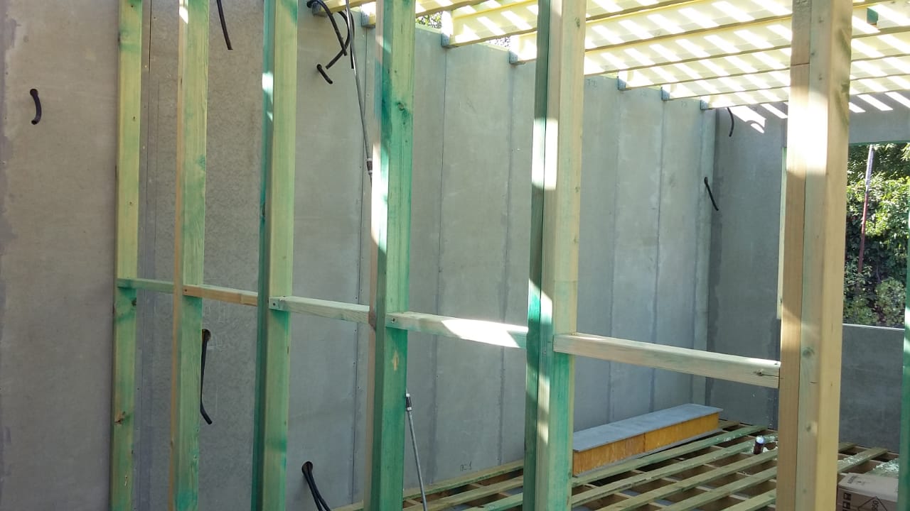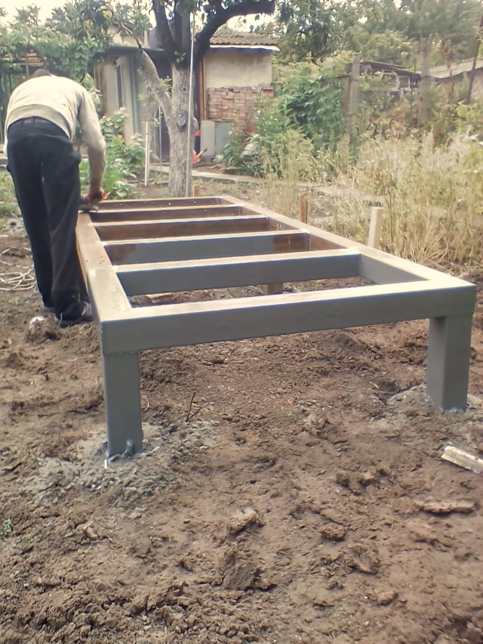 Ростверк изготовлен из калиброванного клееного бруса и защищен снаружи цементно-стружечной плитой