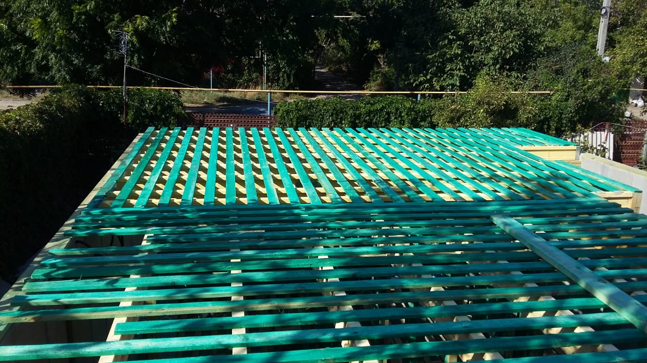 Кровля может быть построена из бруса 150х50мм или SIP панелей. В качестве кровельного материала можно использовать: металлочерепицу, битумную и керамическую черепицу. Также производим кровельные шовные сэндвич-панели.