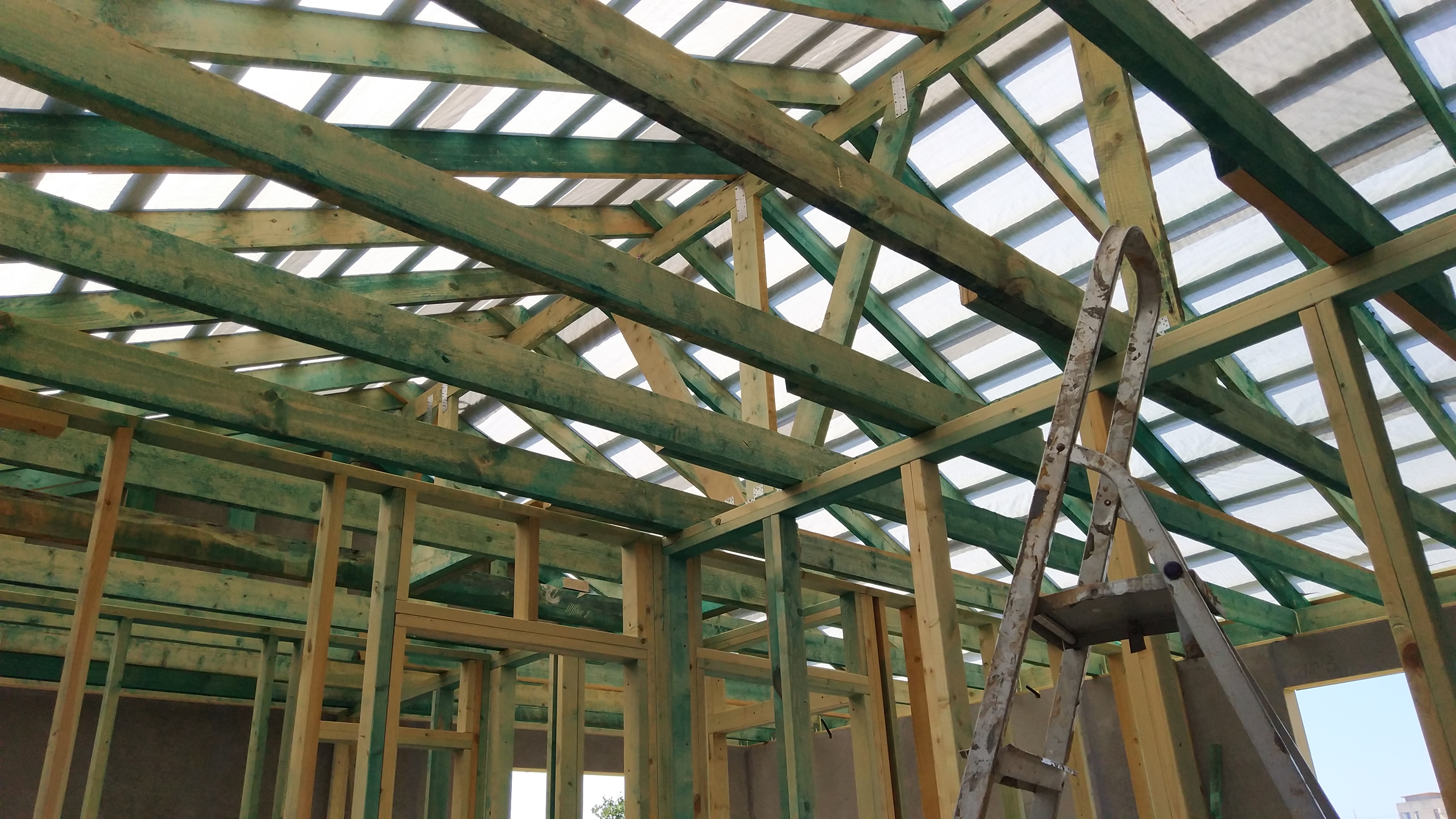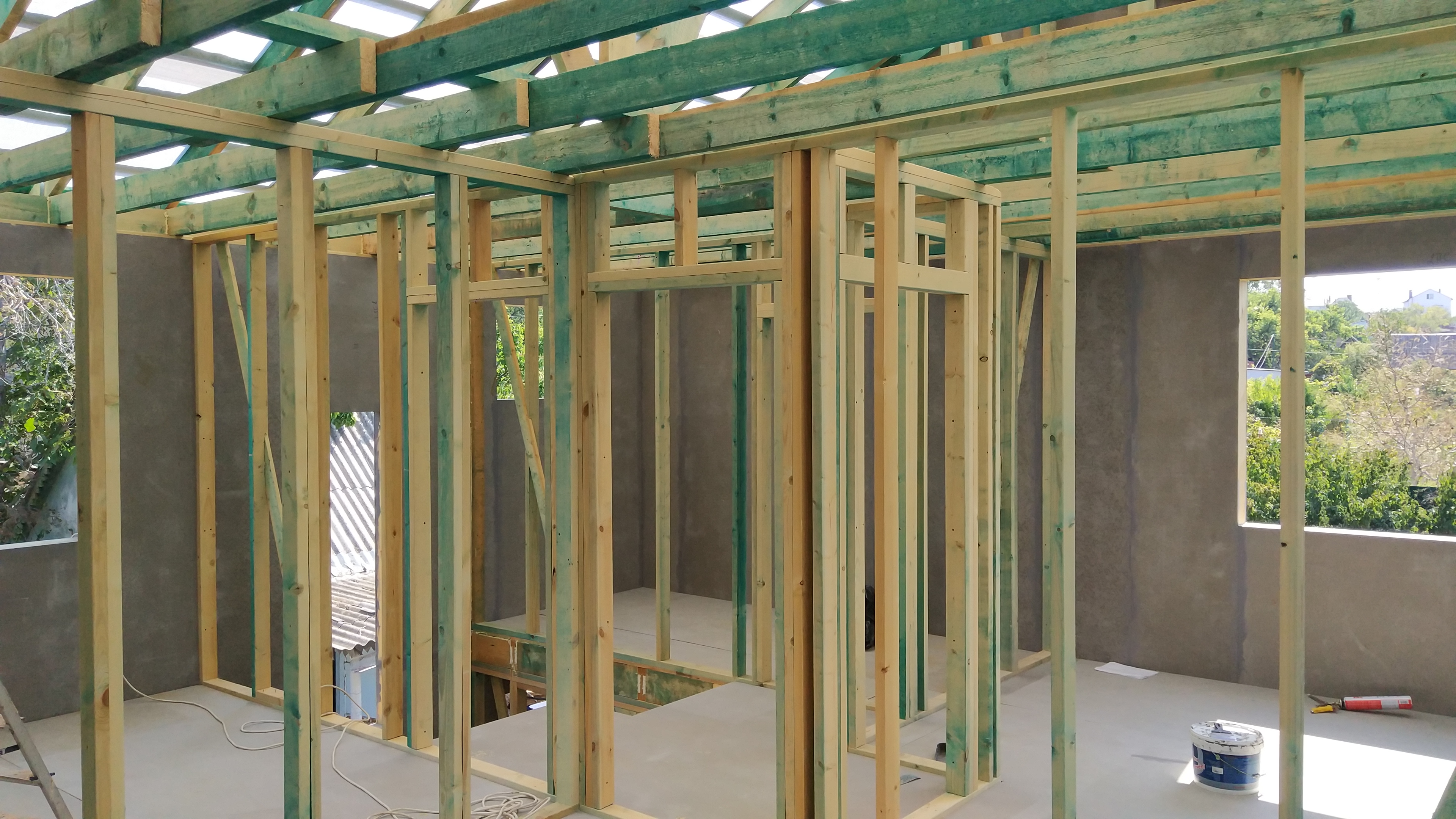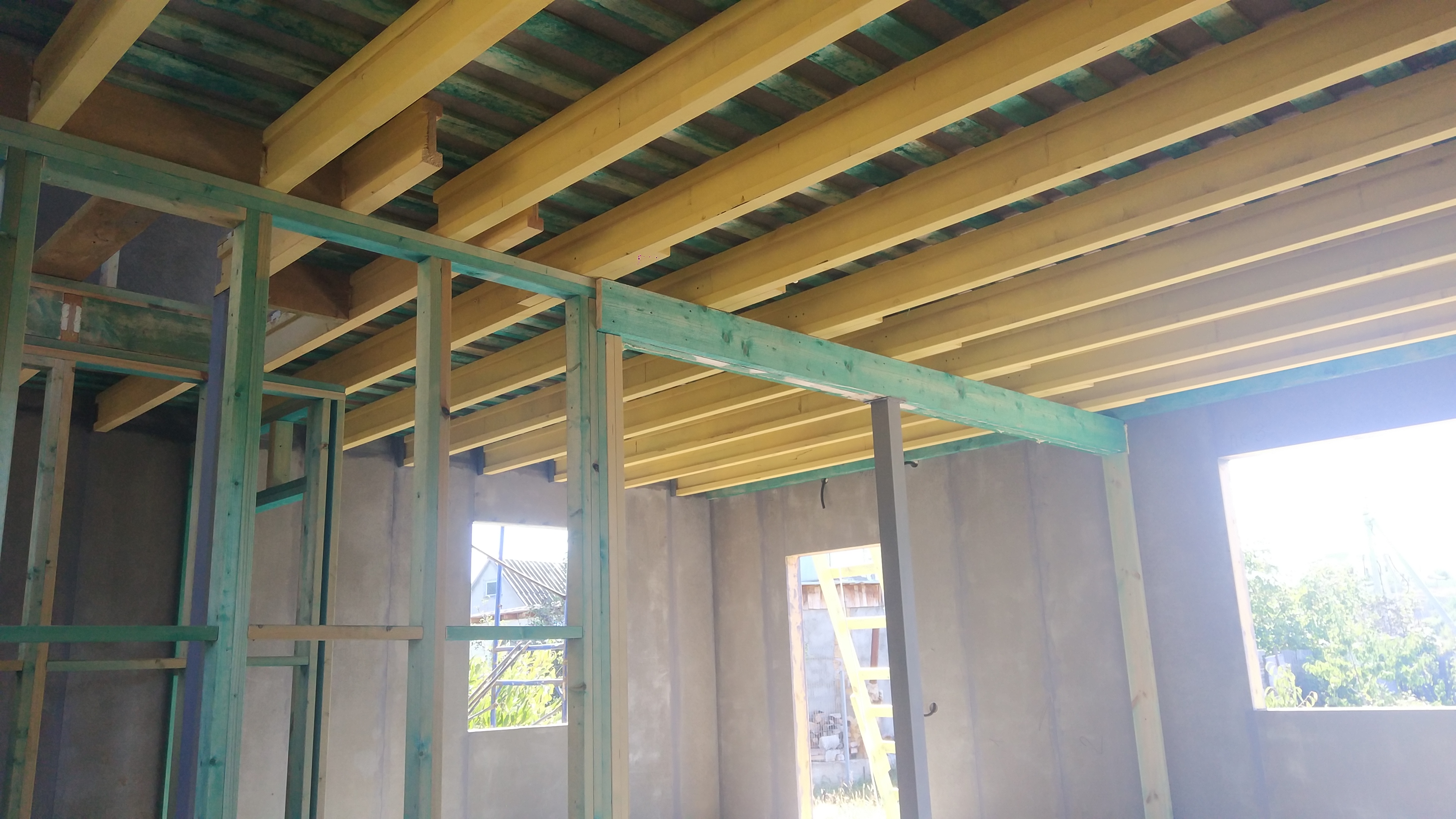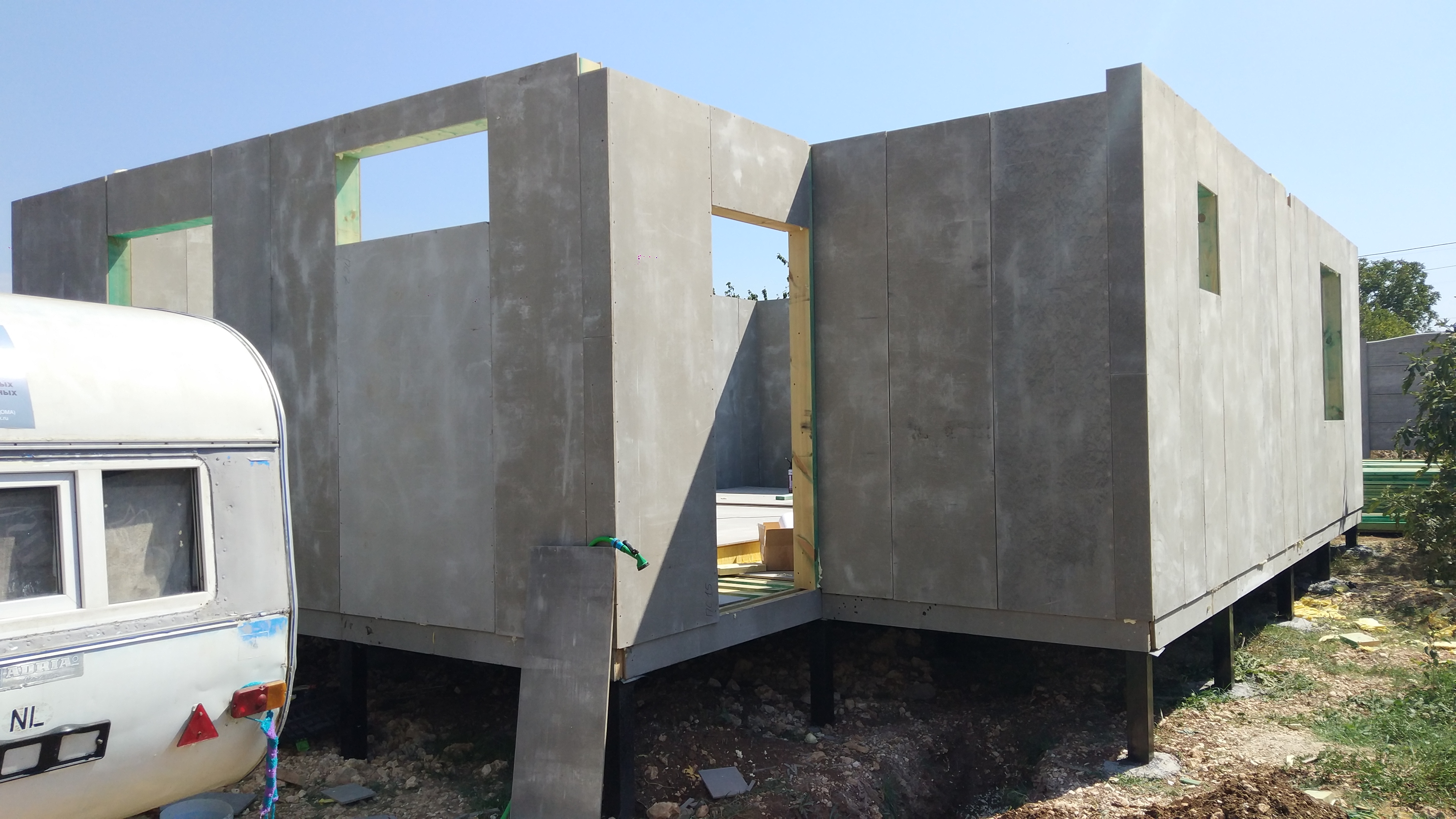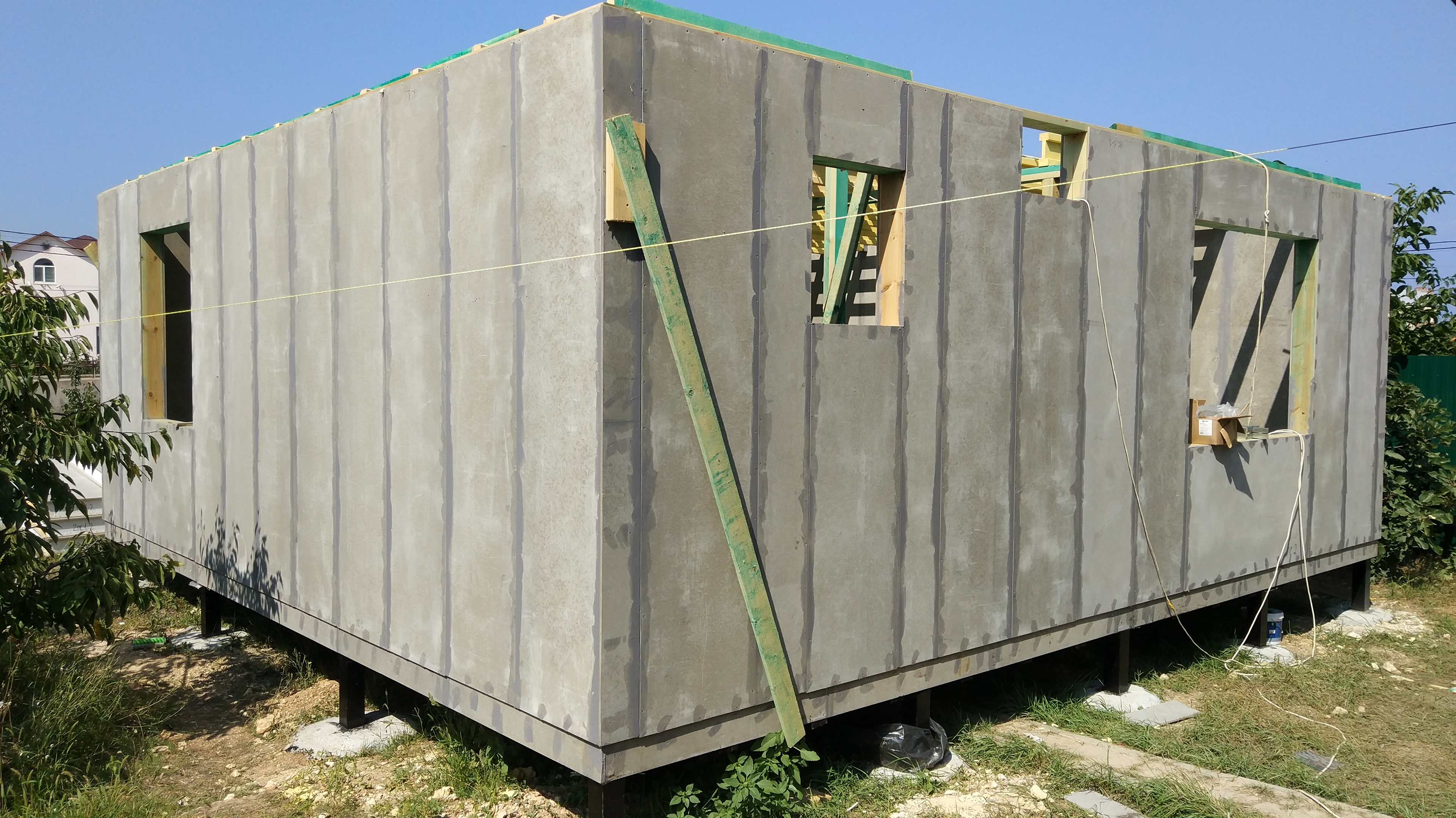 Ростверк изготовлен из калиброванного клееного бруса и защищен снаружи цементно-стружечной плитой