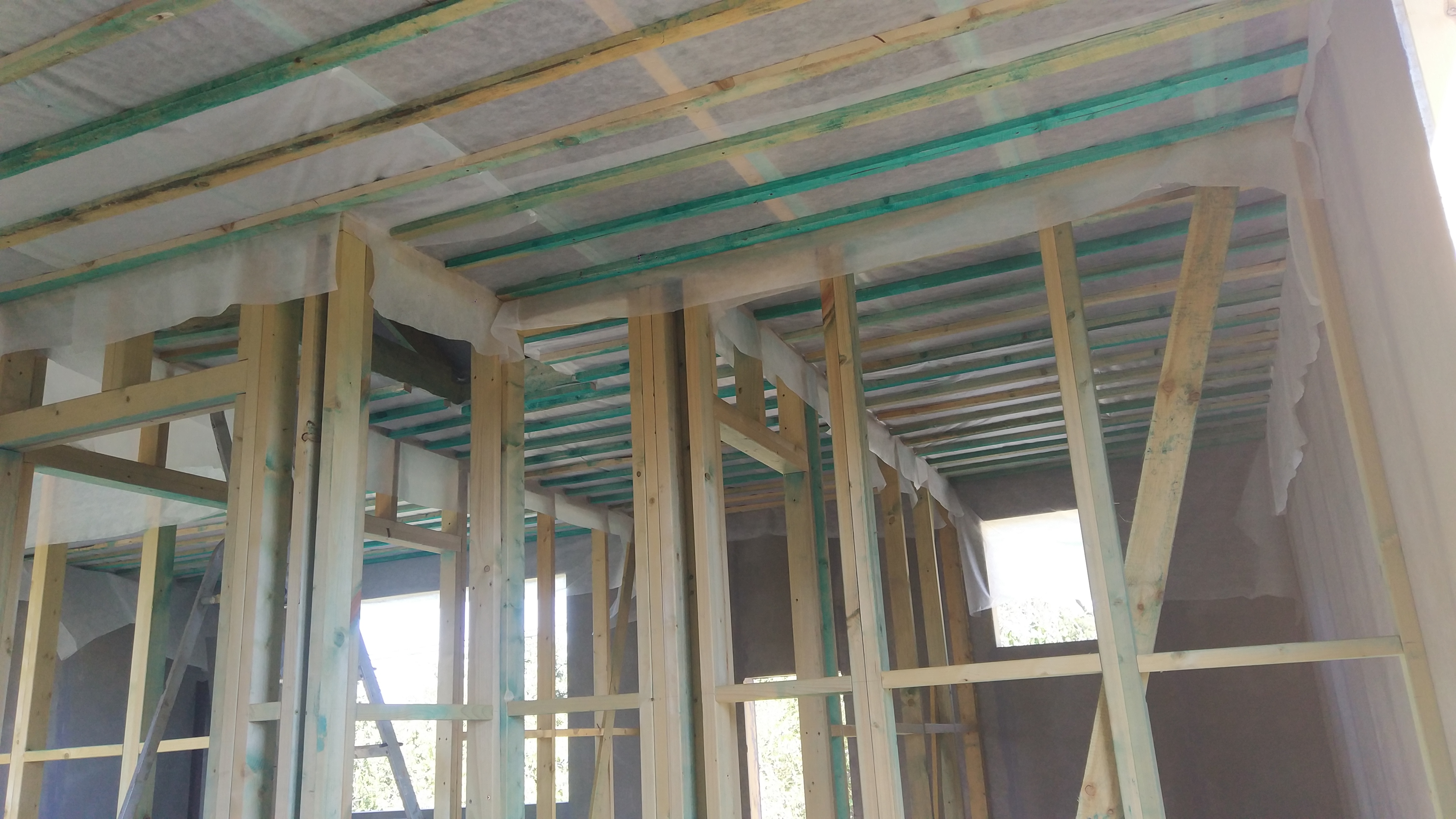 В межэтажных перекрытиях в качестве несущих лаг мы применяем двутавровые балки собственного производства с влагостойкой 24 мм. фанерой в сердечнике.
