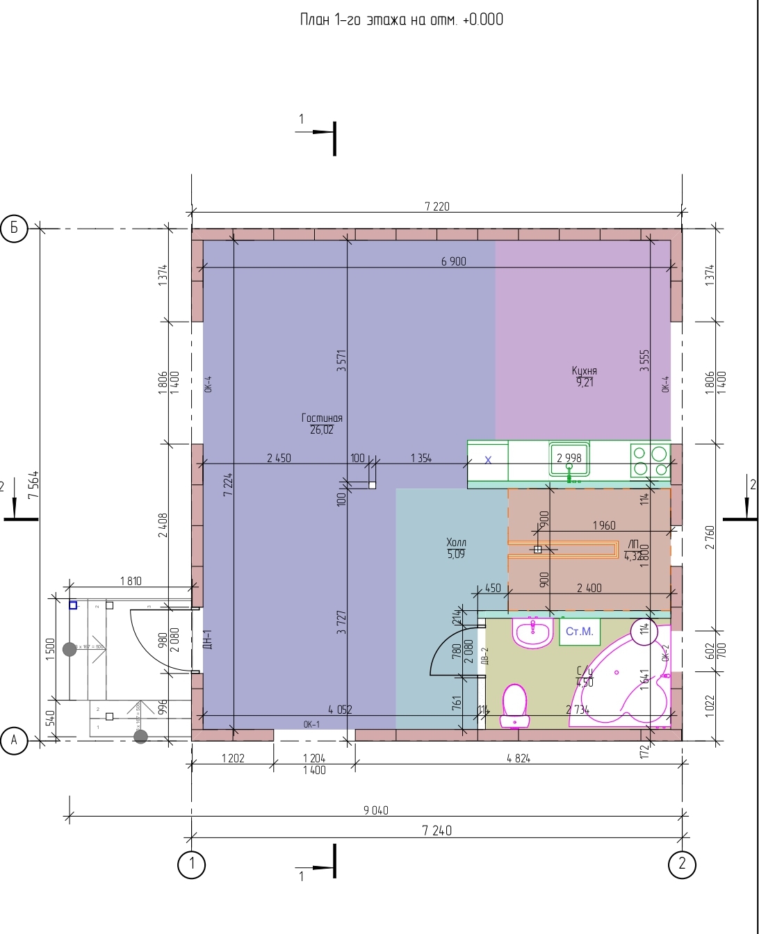 Общая площадь всех помещений – 97,16 м2