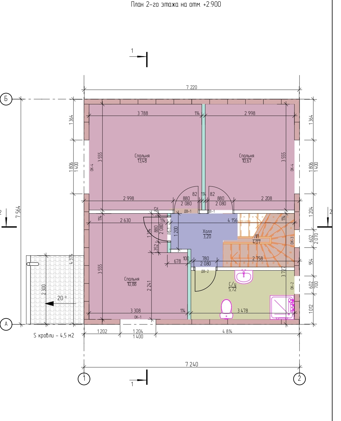 Площадь застройки – 57,68 м2