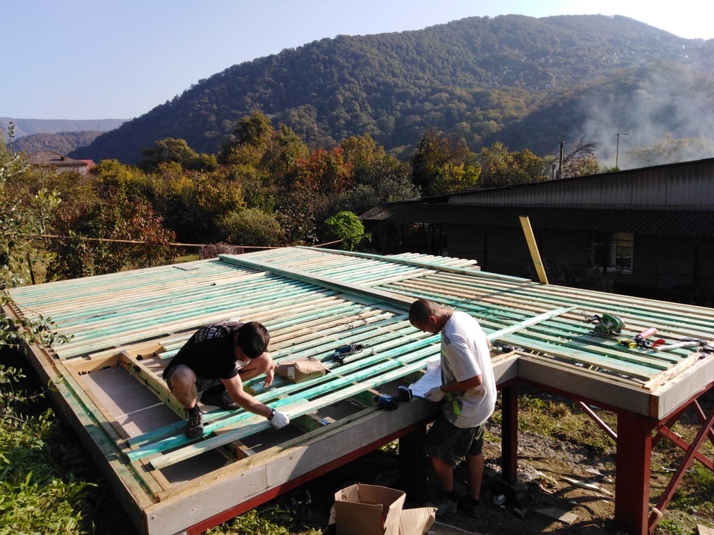 Кровля может быть построена из бруса 150х50мм или SIP панелей. В качестве кровельного материала можно использовать: металлочерепицу, битумную и керамическую черепицу. Также производим кровельные шовные сэндвич-панели.