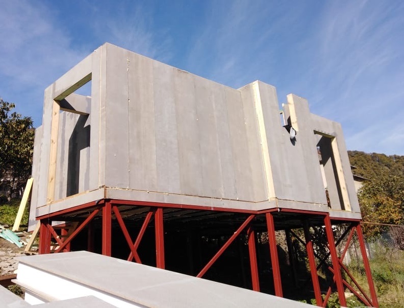 Ростверк изготовлен из калиброванного клееного бруса и защищен снаружи цементно-стружечной плитой