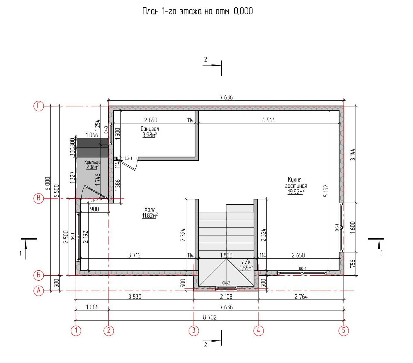 Площадь крыльца – 2.08 м2