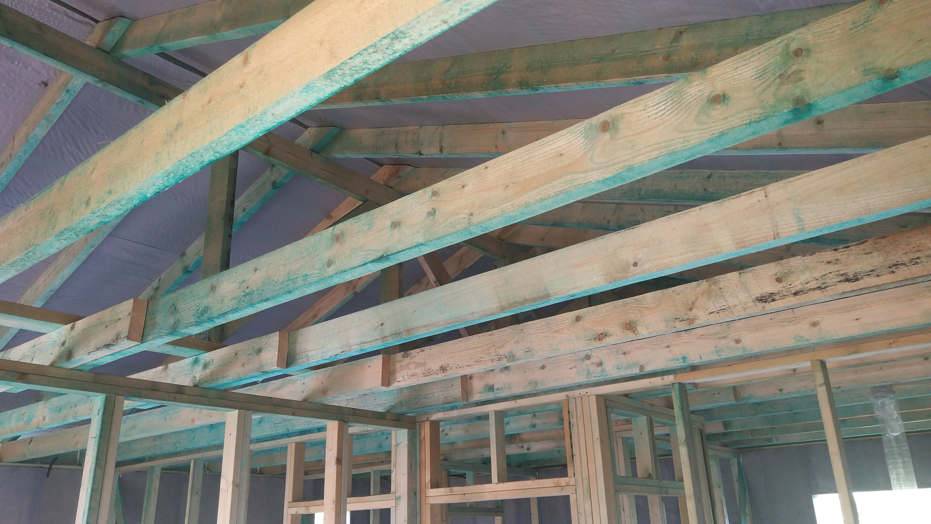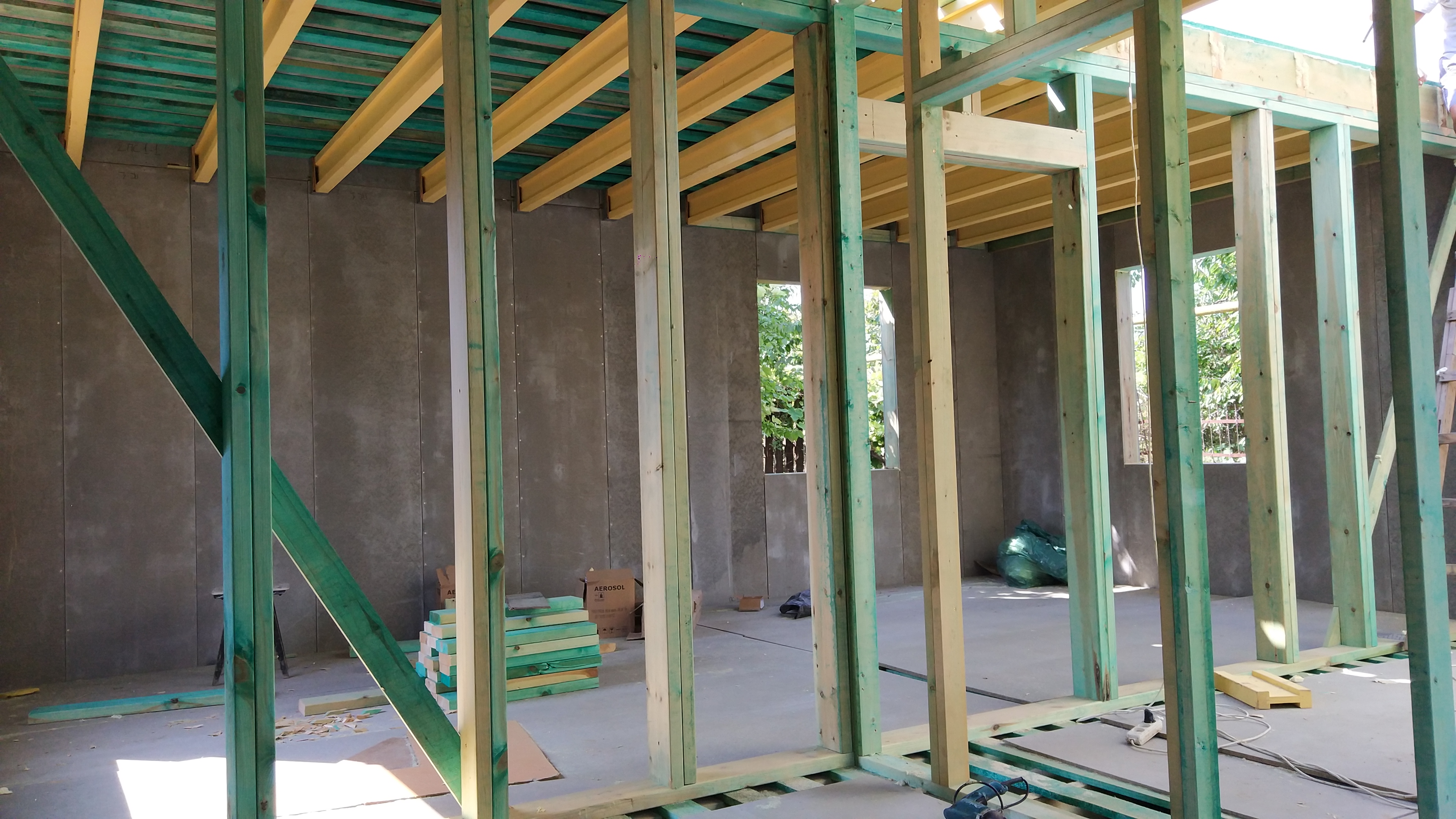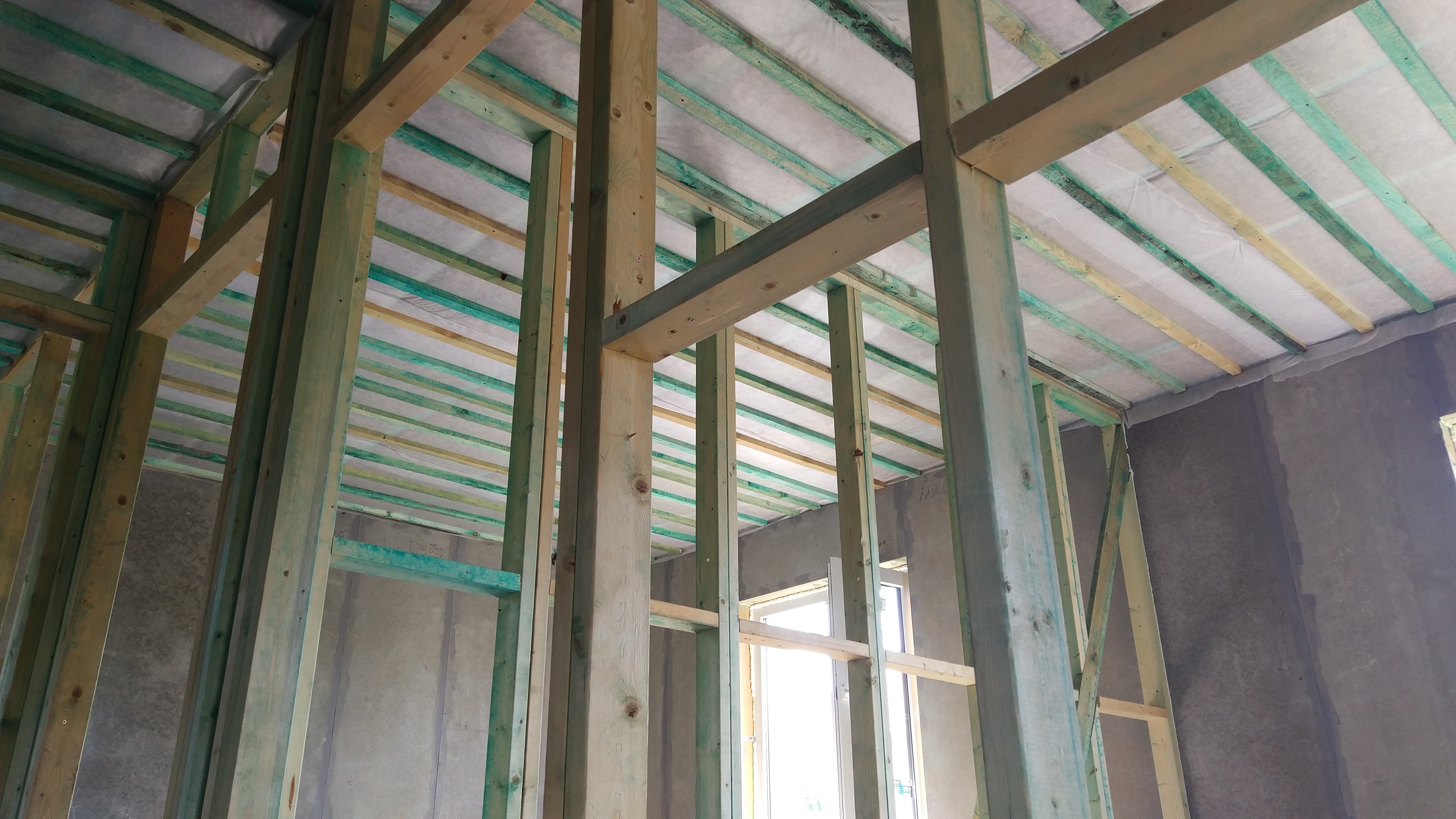 Ростверк изготовлен из калиброванного клееного бруса и защищен снаружи цементно-стружечной плитой