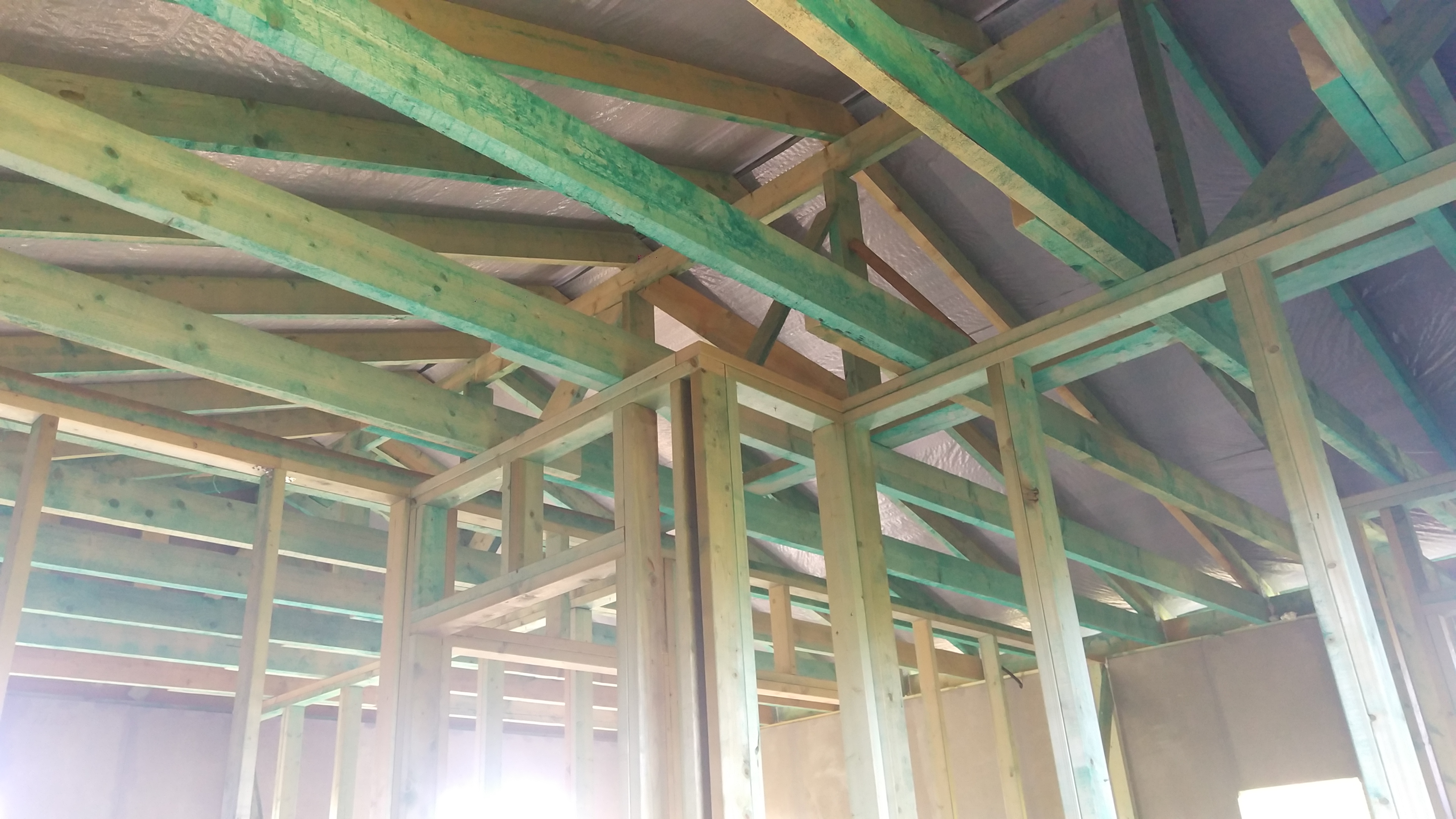 В межэтажных перекрытиях в качестве несущих лаг мы применяем двутавровые балки собственного производства с влагостойкой 24 мм. фанерой в сердечнике.
