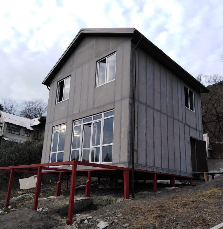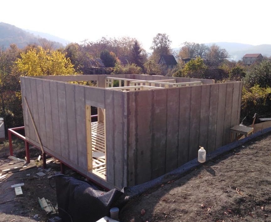 Ростверк изготовлен из калиброванного клееного бруса и защищен снаружи цементно-стружечной плитой