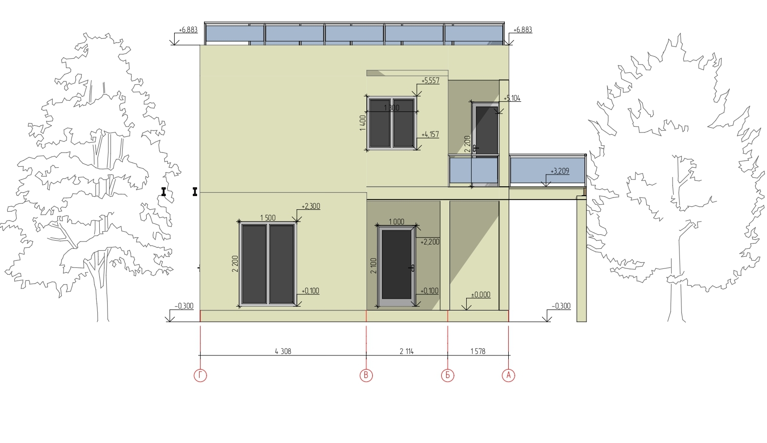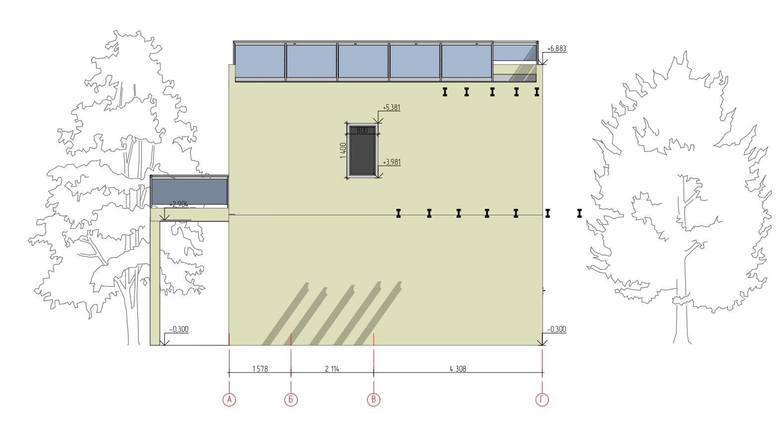Строительный объем – 446.75 м3