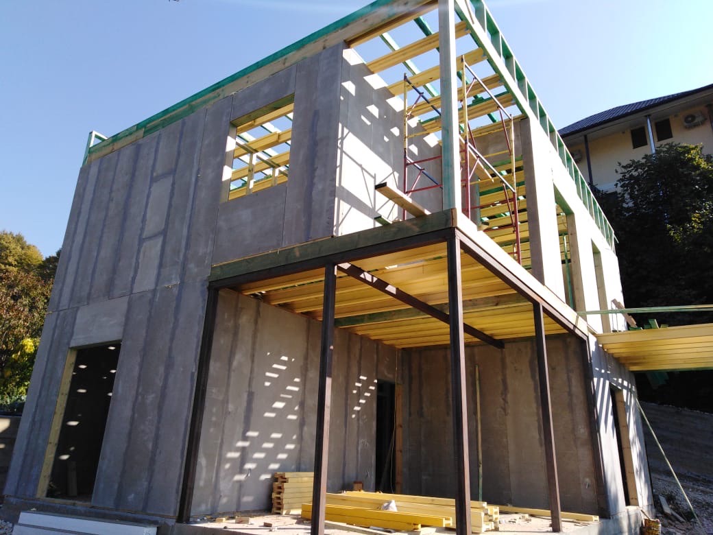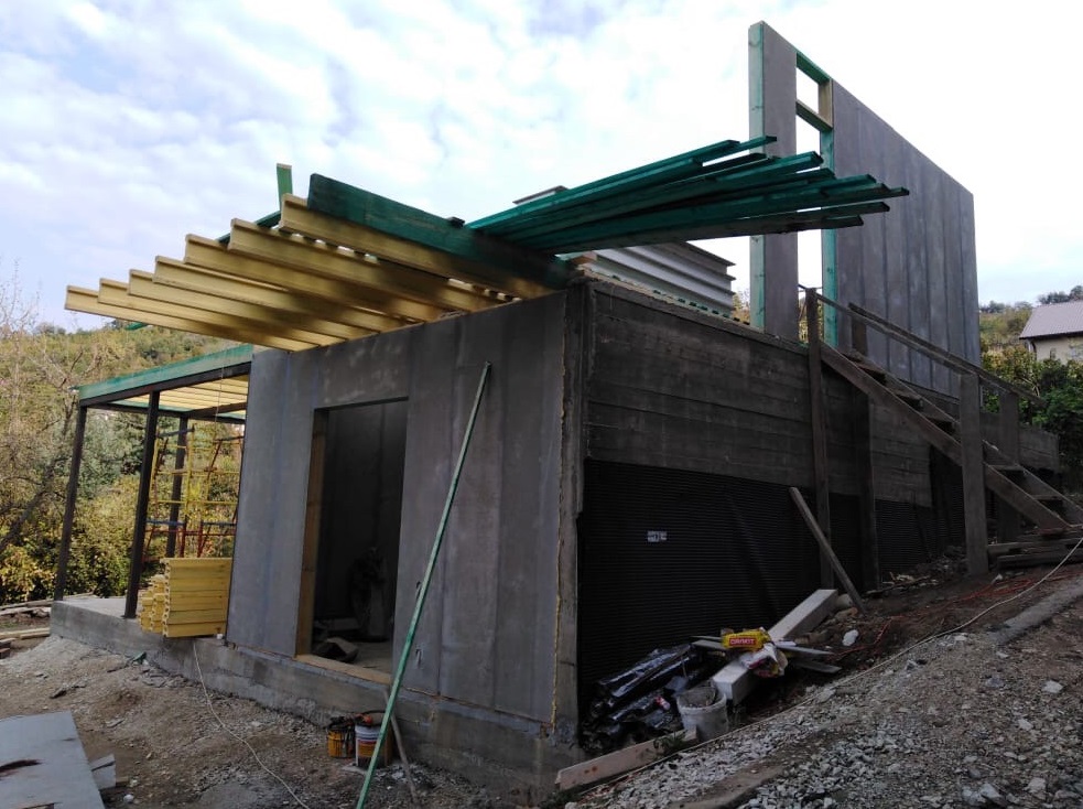 Ростверк изготовлен из калиброванного клееного бруса и защищен снаружи цементно-стружечной плитой