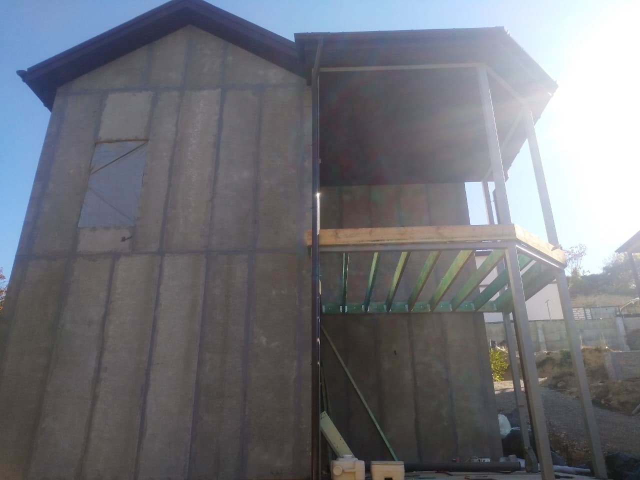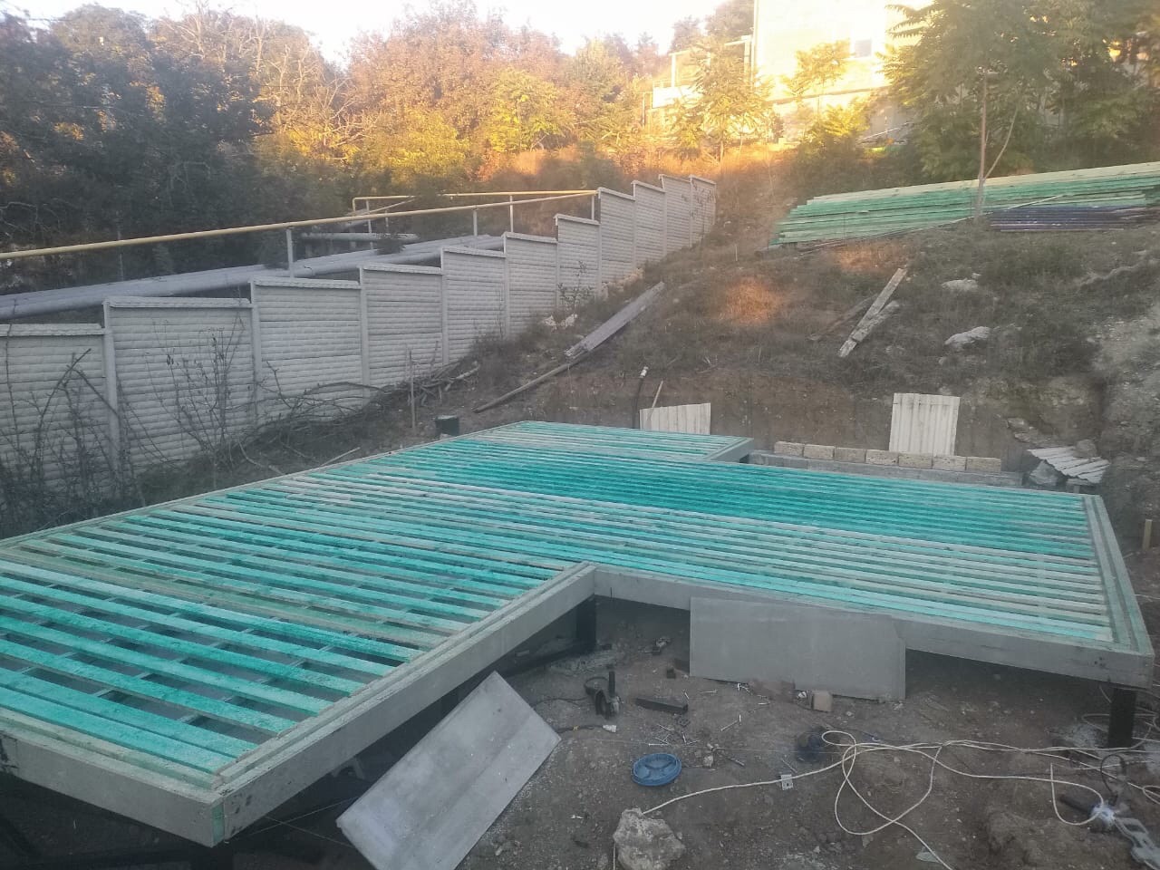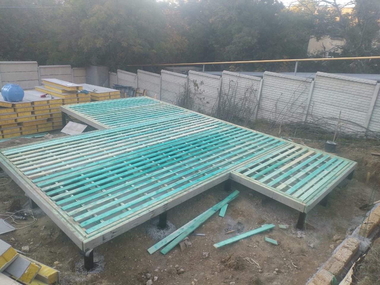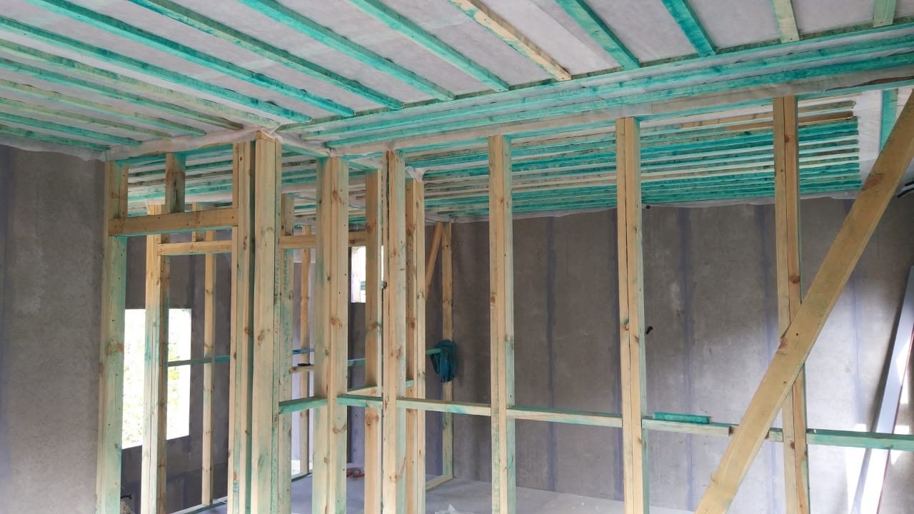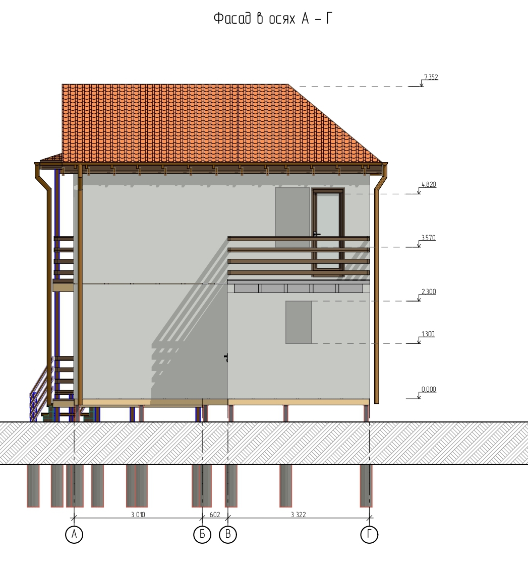 Ростверк изготовлен из калиброванного клееного бруса и защищен снаружи цементно-стружечной плитой
