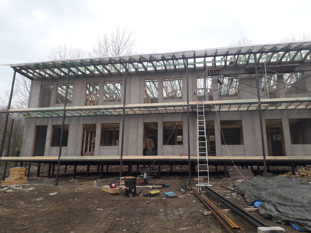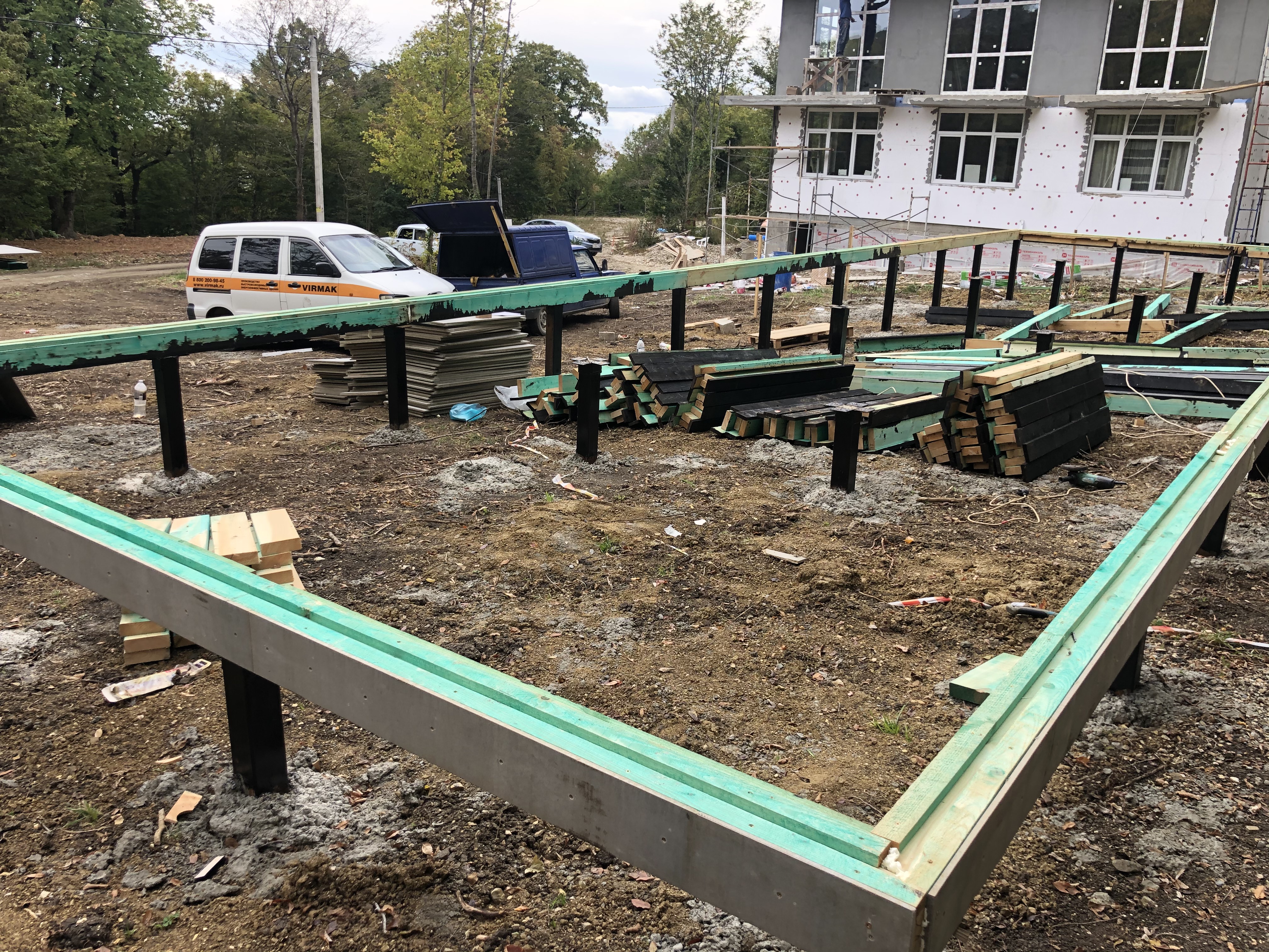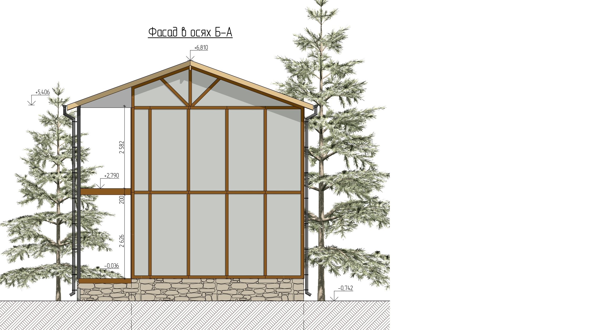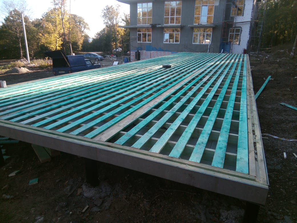 Ростверк изготовлен из калиброванного клееного бруса и защищен снаружи цементно-стружечной плитой