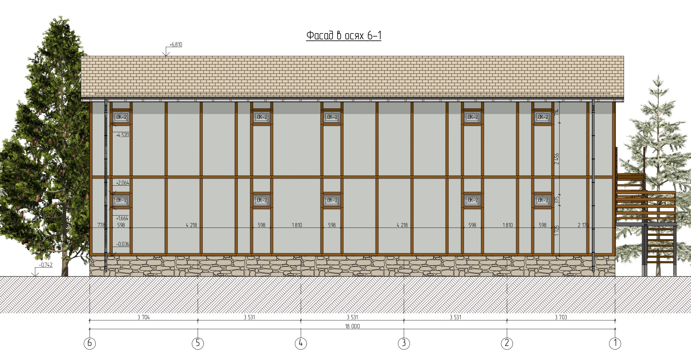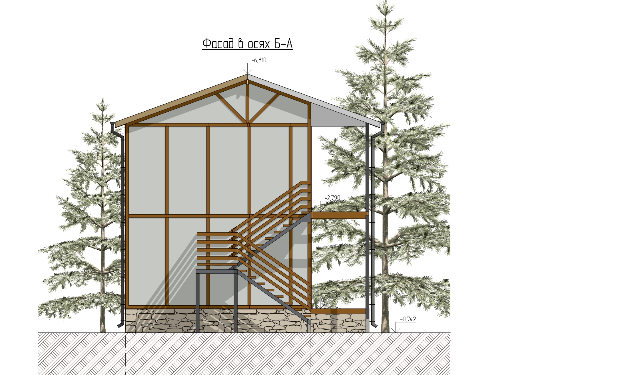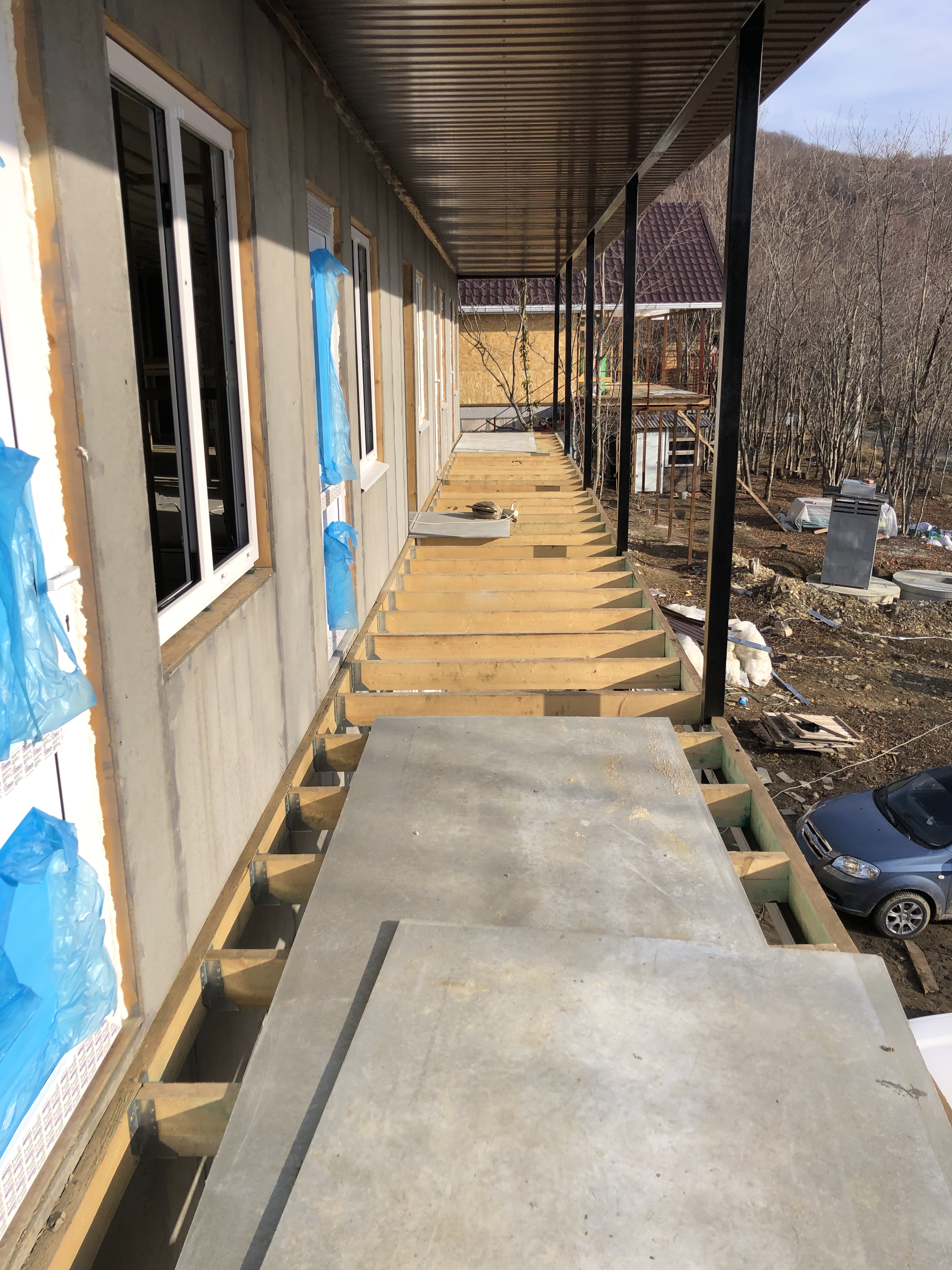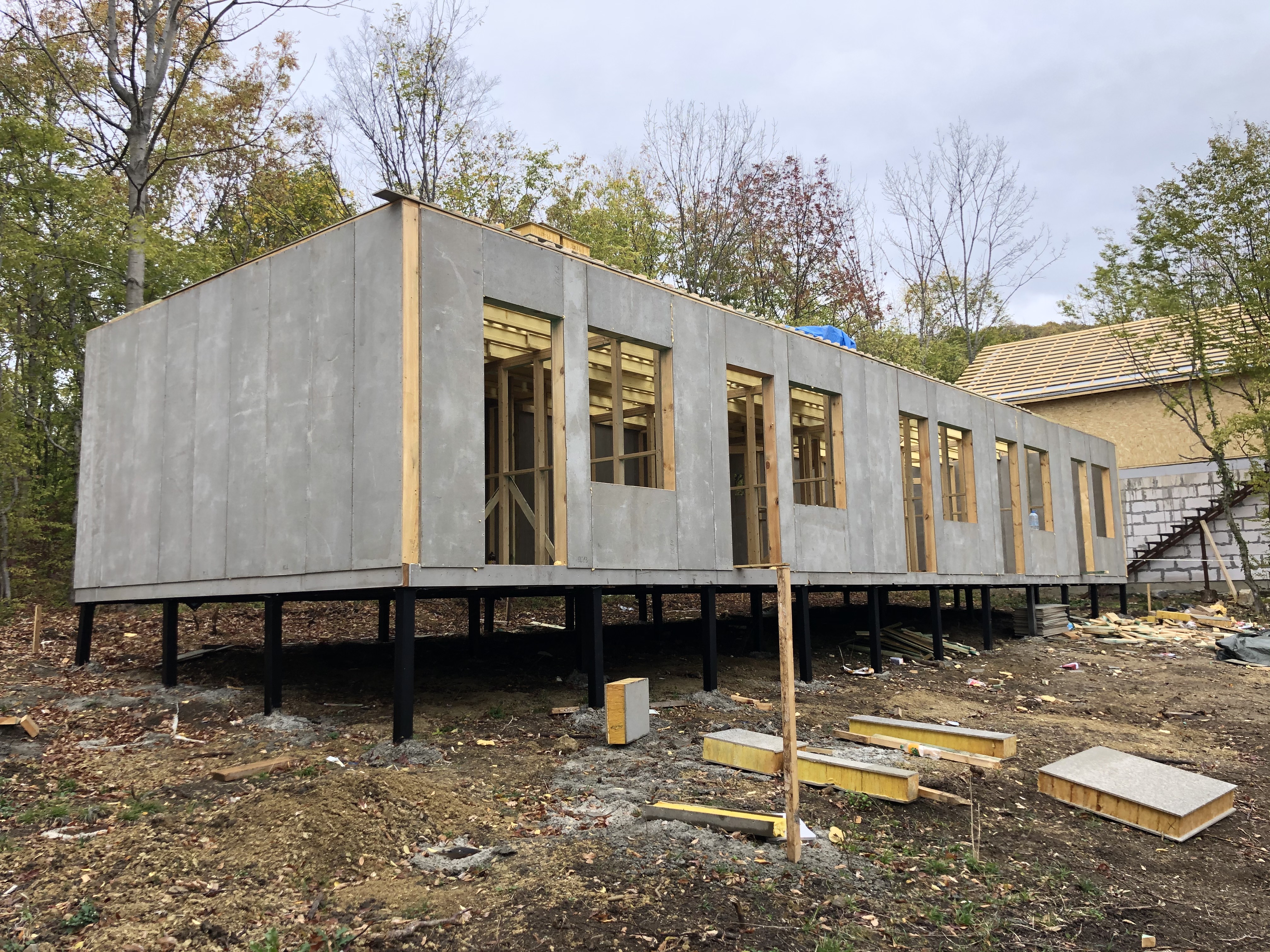 Ростверк изготовлен из калиброванного клееного бруса и защищен снаружи цементно-стружечной плитой