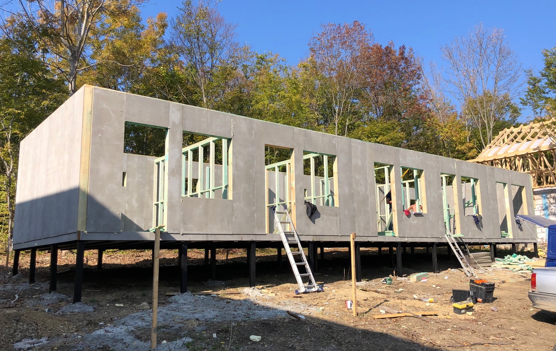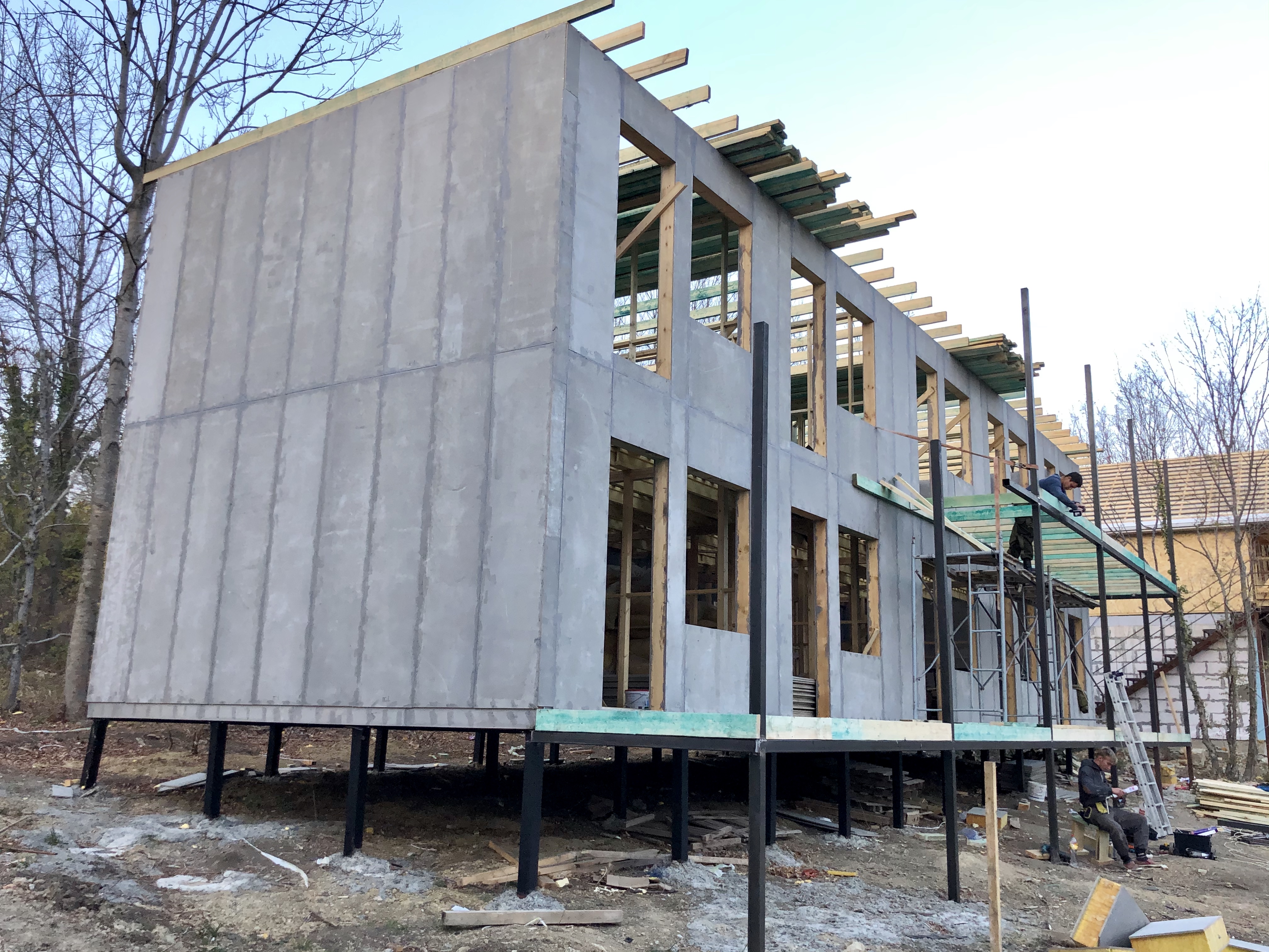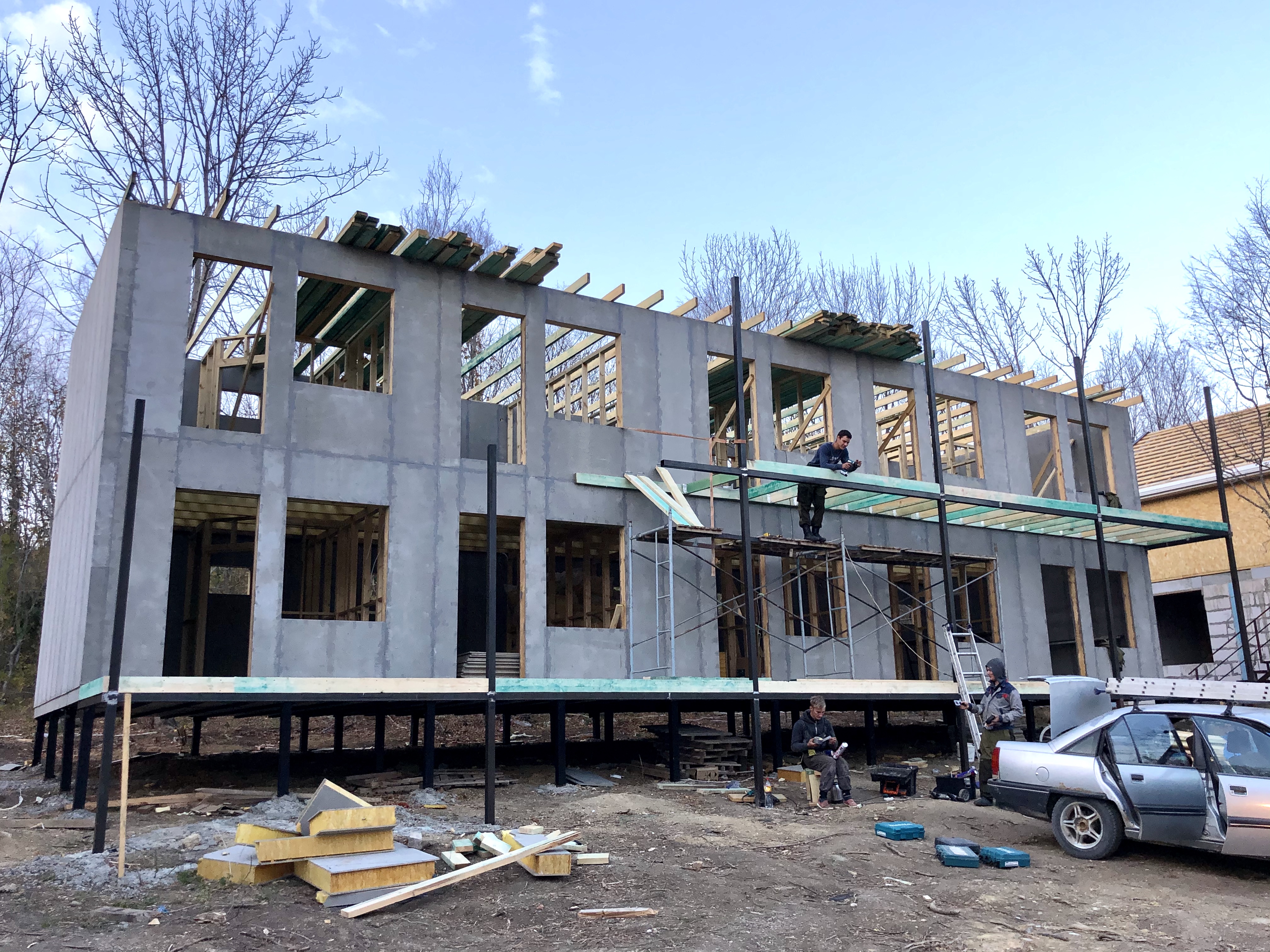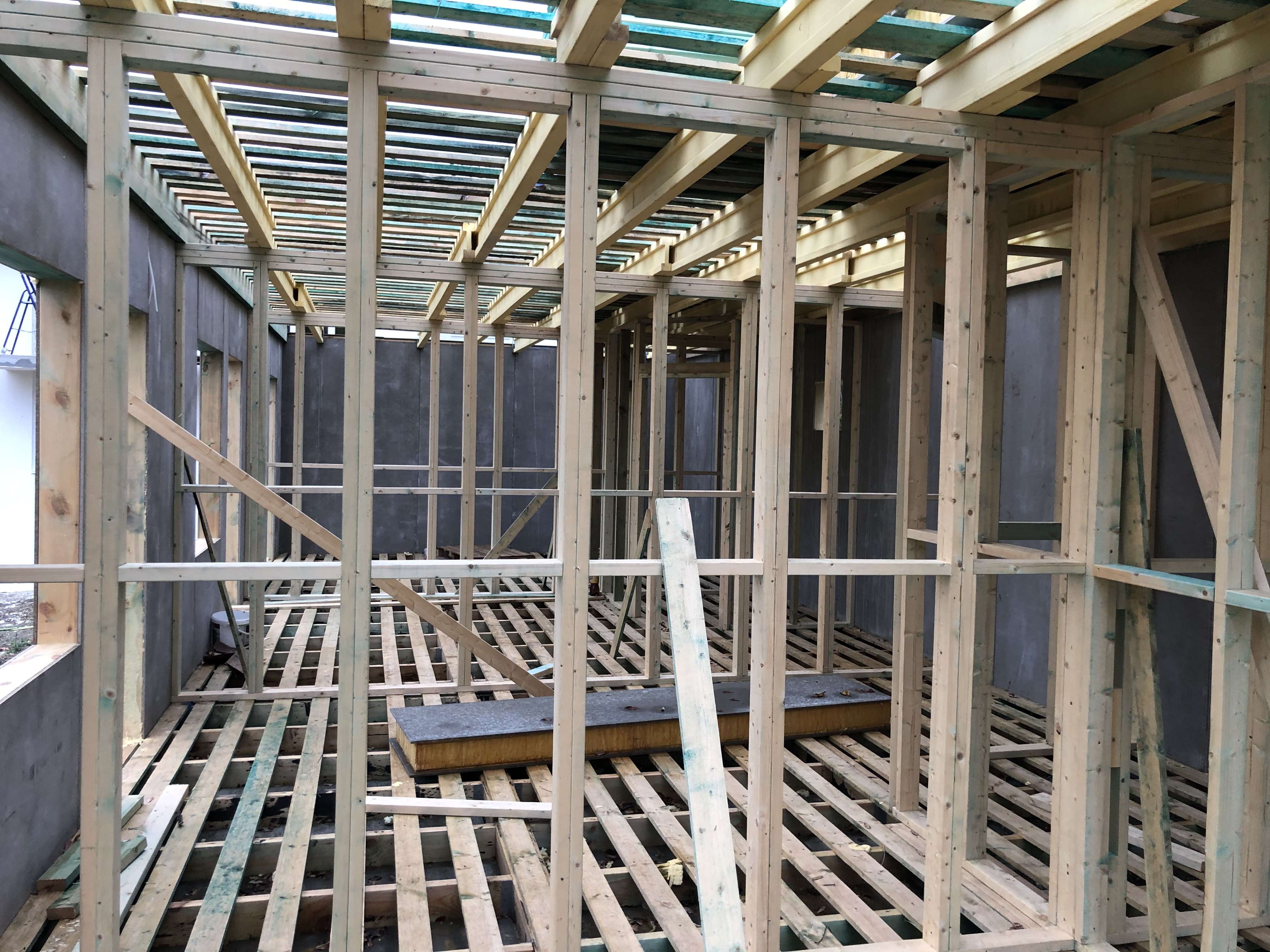 Ростверк изготовлен из калиброванного клееного бруса и защищен снаружи цементно-стружечной плитой