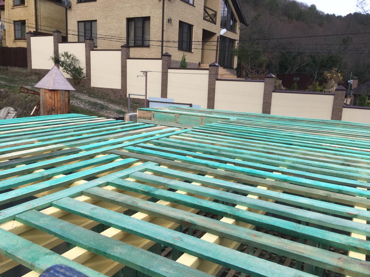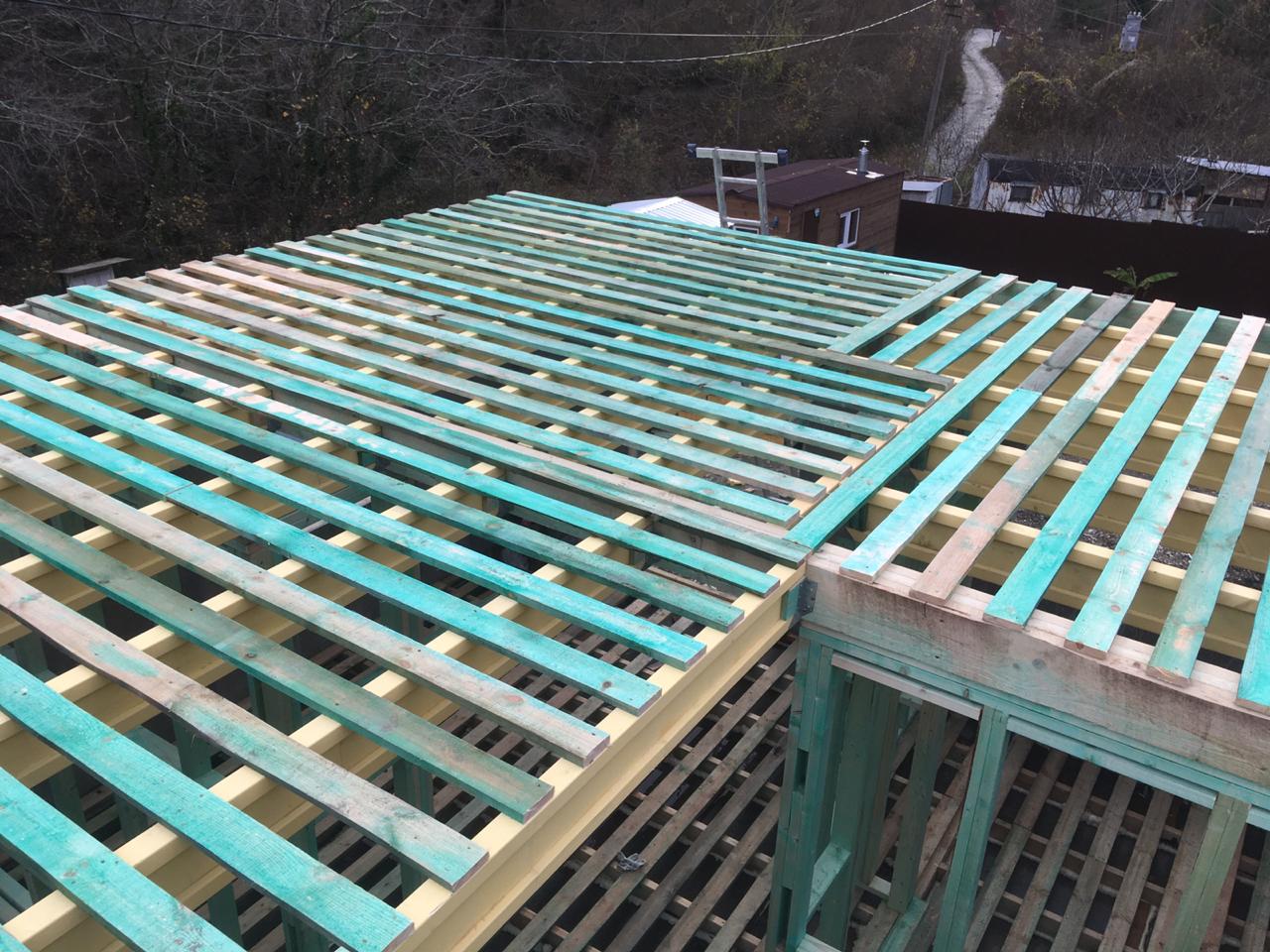 Кровля может быть построена из бруса 150х50мм или SIP панелей. В качестве кровельного материала можно использовать: металлочерепицу, битумную и керамическую черепицу. Также производим кровельные шовные сэндвич-панели.