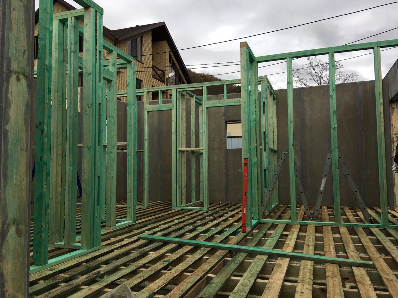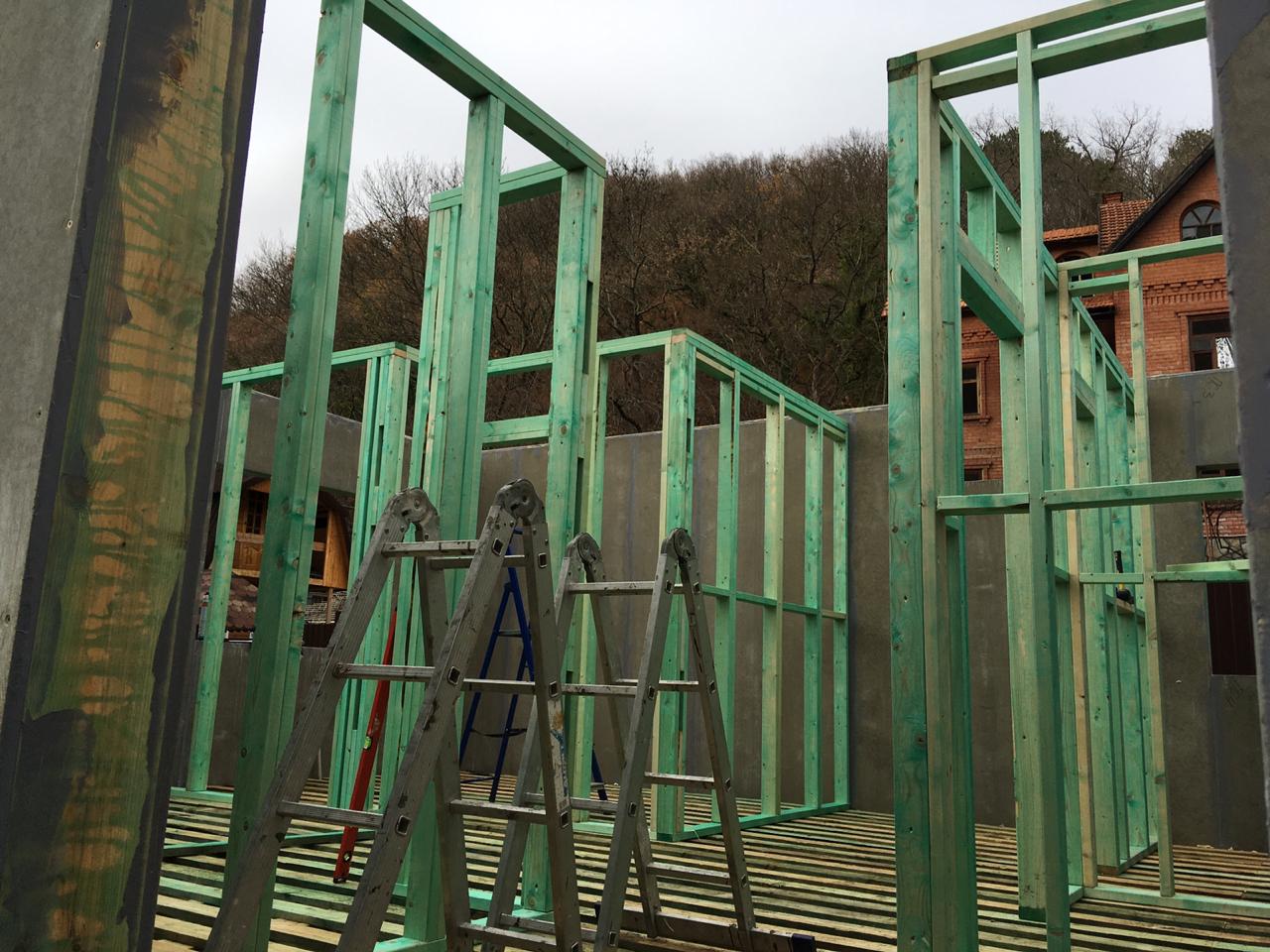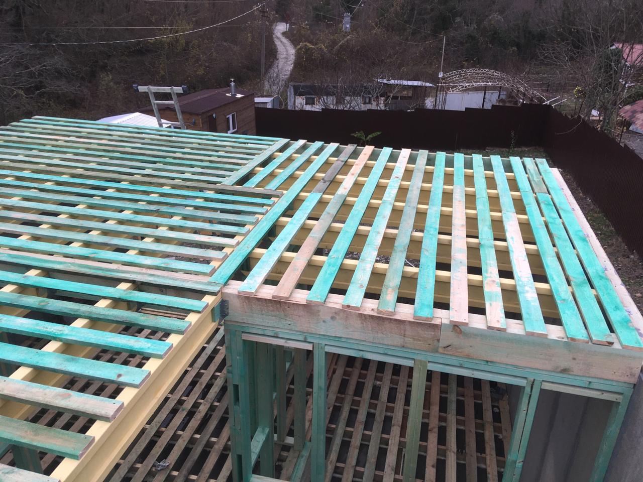 Ростверк изготовлен из калиброванного клееного бруса и защищен снаружи цементно-стружечной плитой