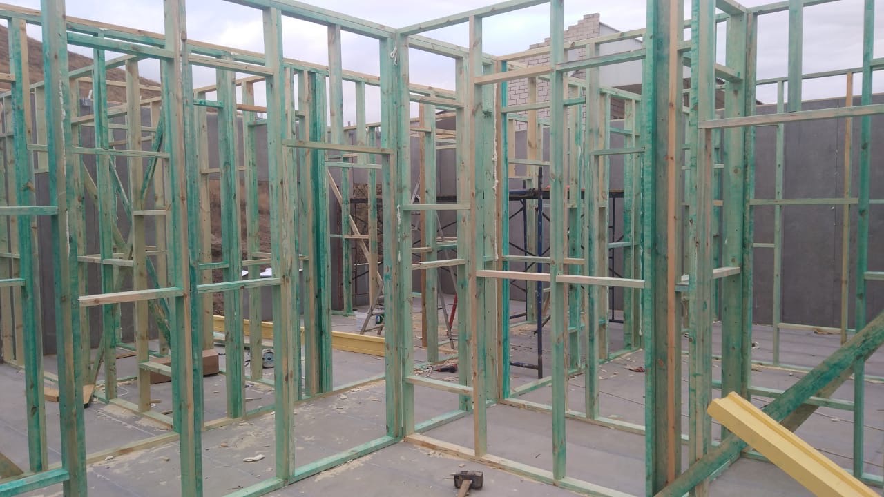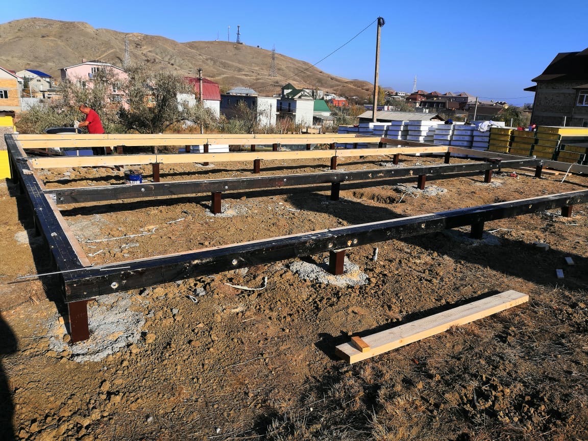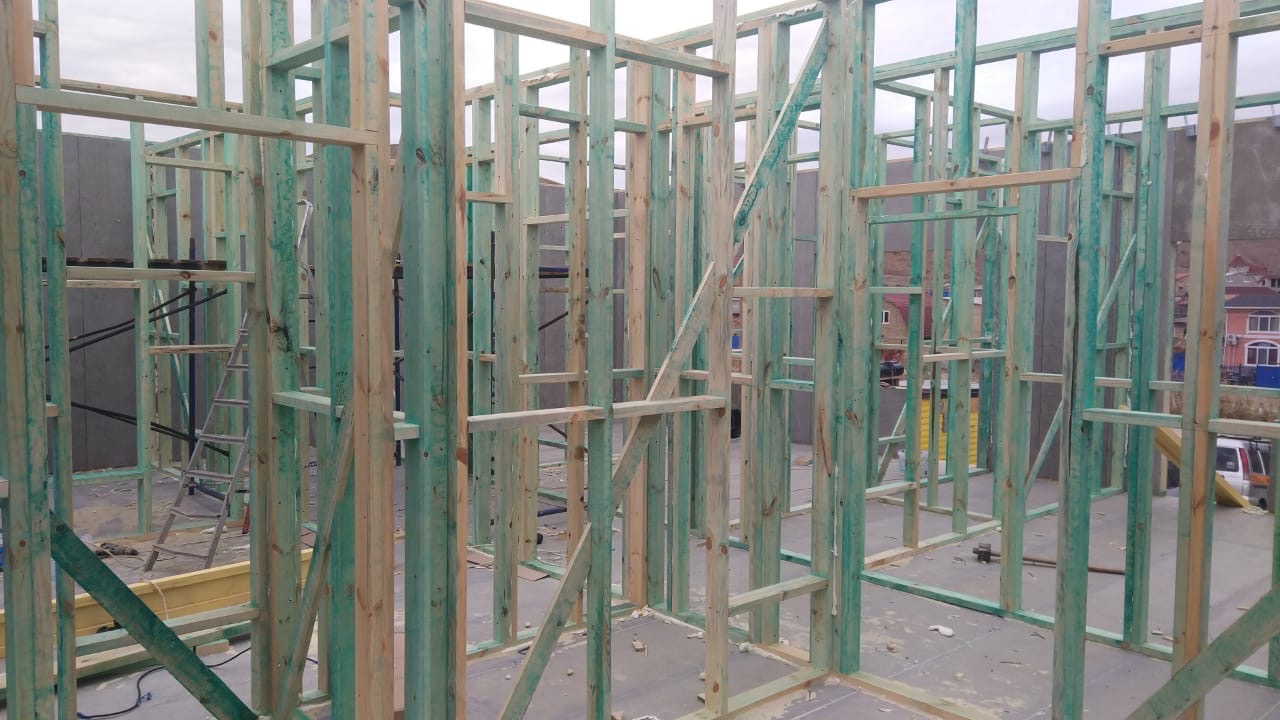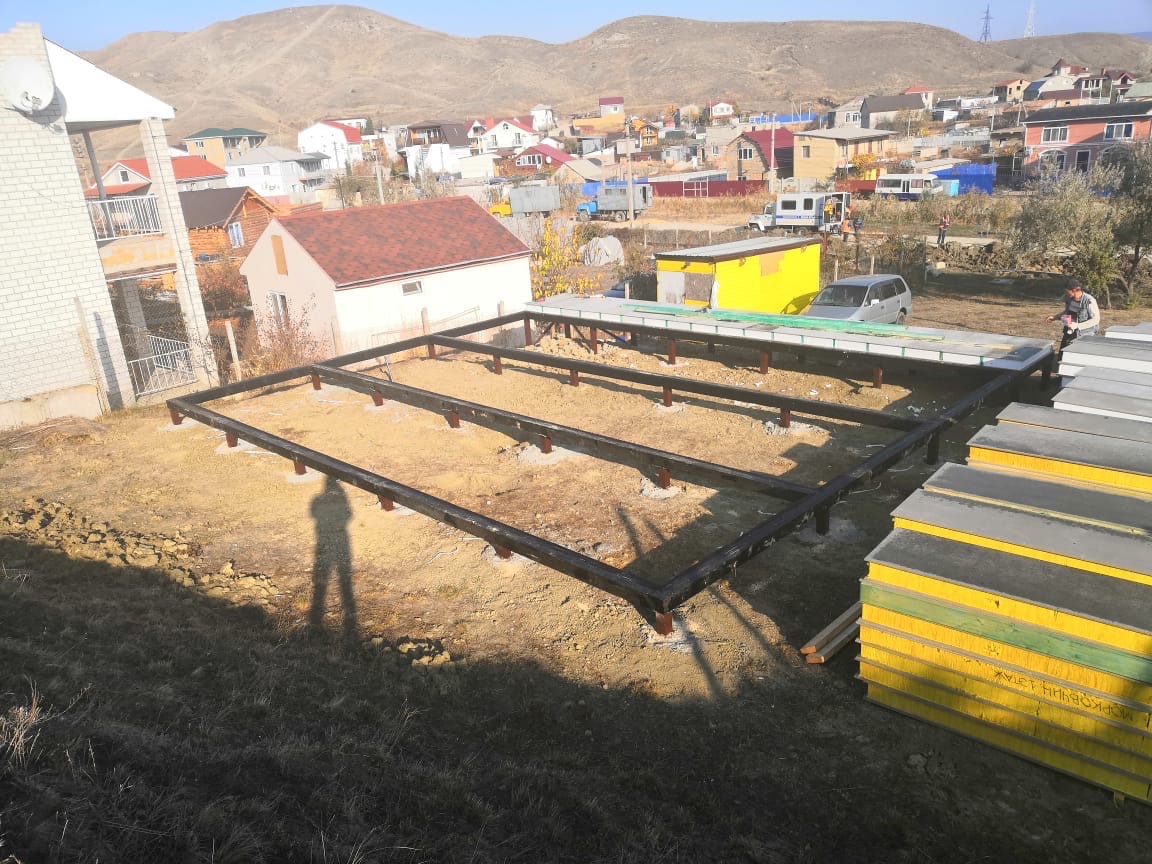 Ростверк изготовлен из калиброванного клееного бруса и защищен снаружи цементно-стружечной плитой