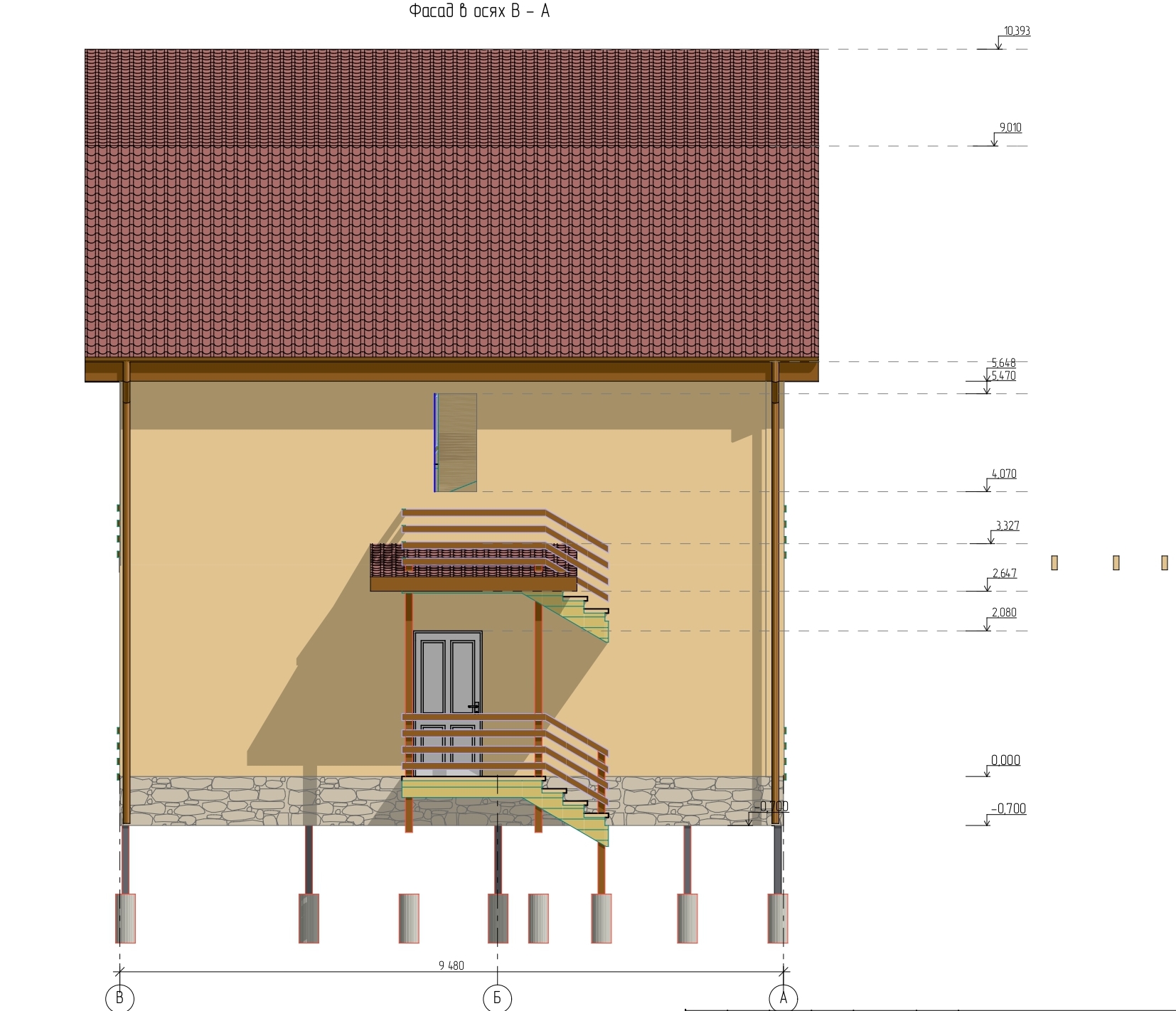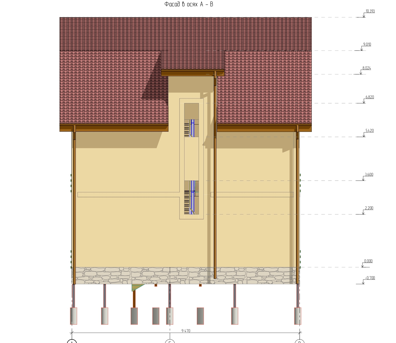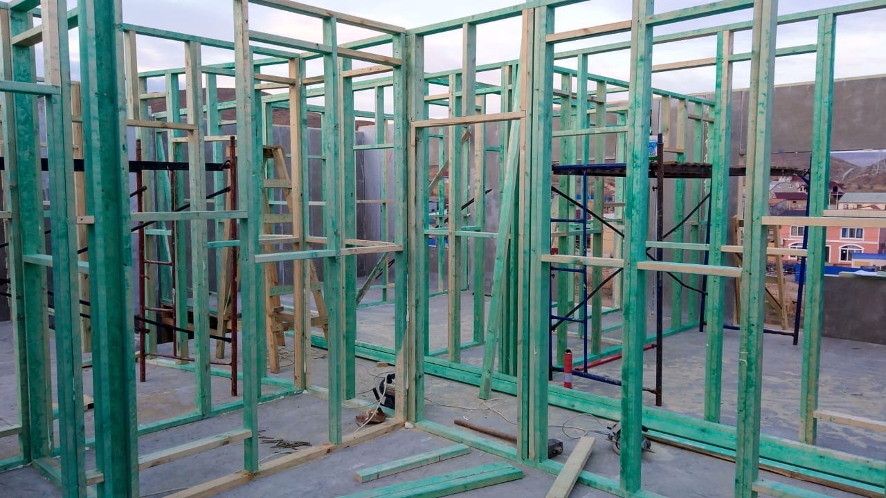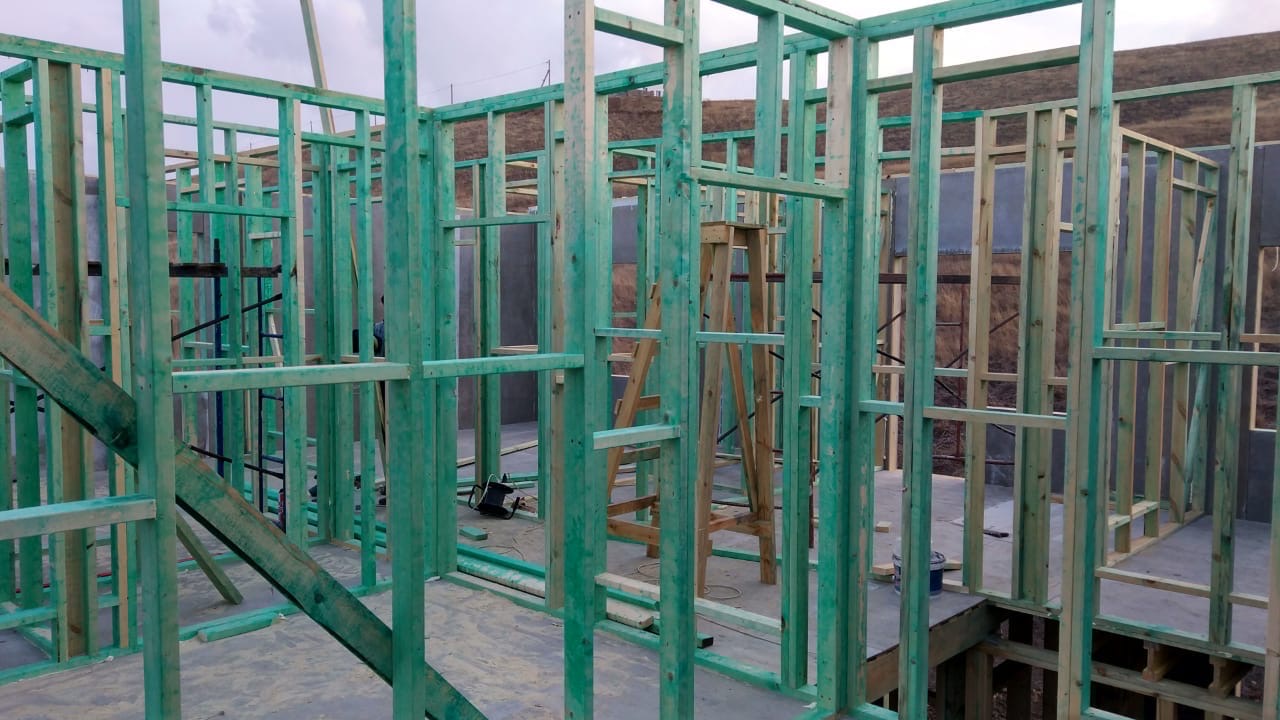 Ростверк изготовлен из калиброванного клееного бруса и защищен снаружи цементно-стружечной плитой
