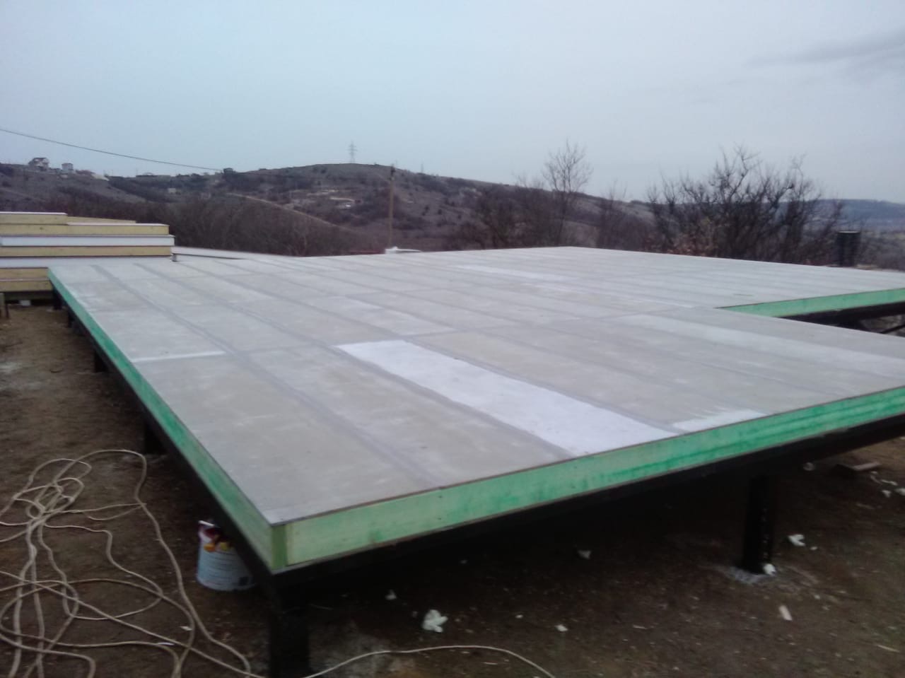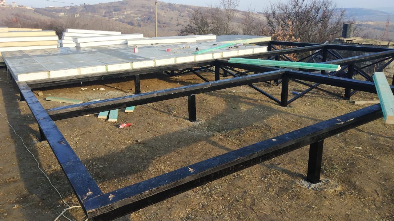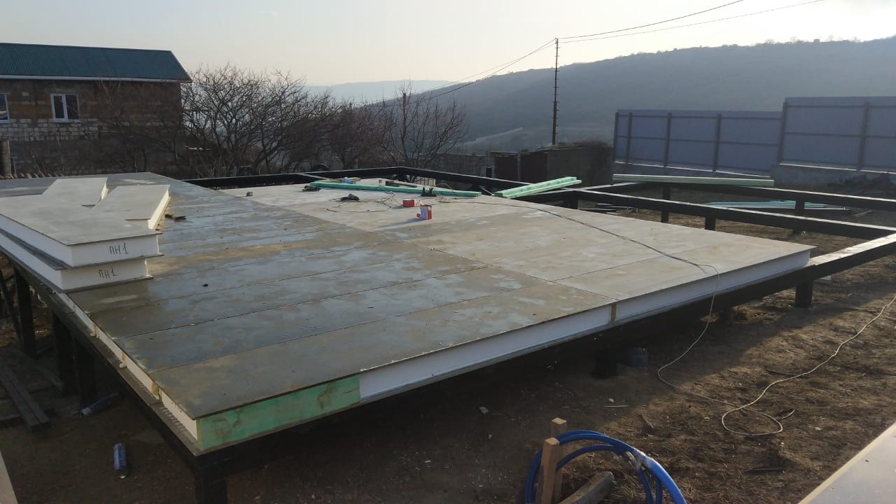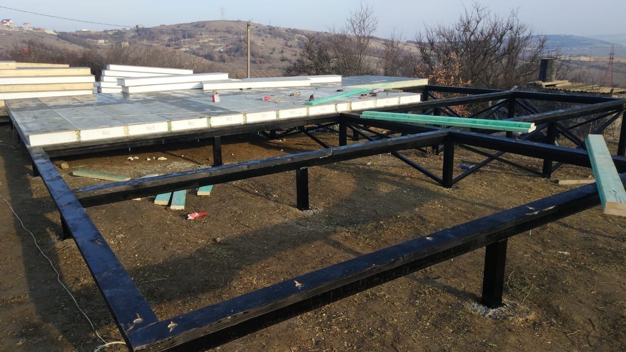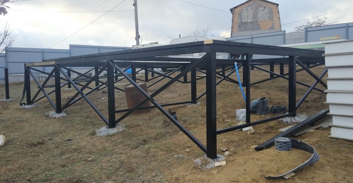Ростверк изготовлен из калиброванного клееного бруса и защищен снаружи цементно-стружечной плитой