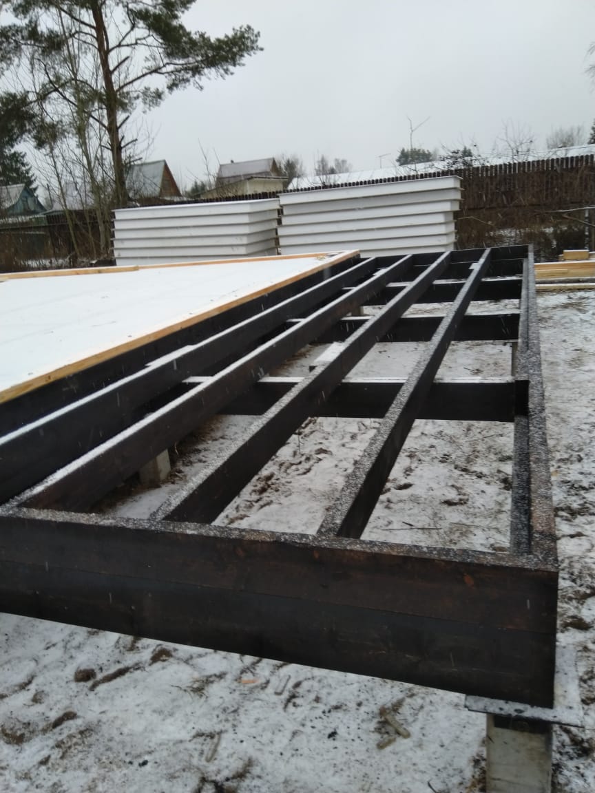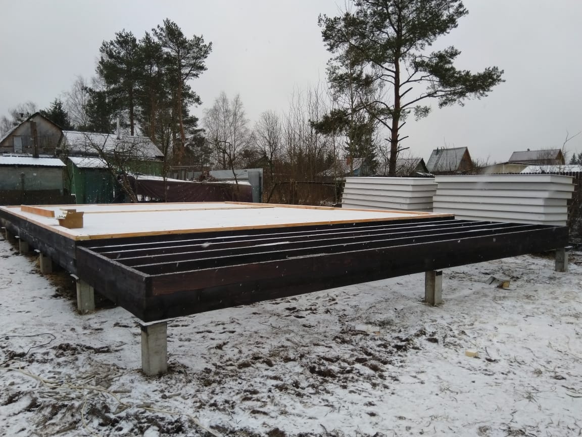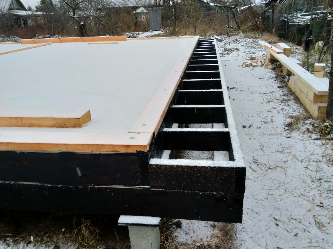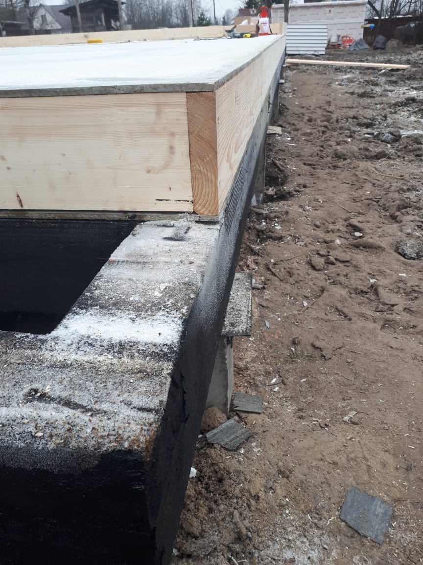 Ростверк изготовлен из калиброванного клееного бруса и защищен снаружи цементно-стружечной плитой