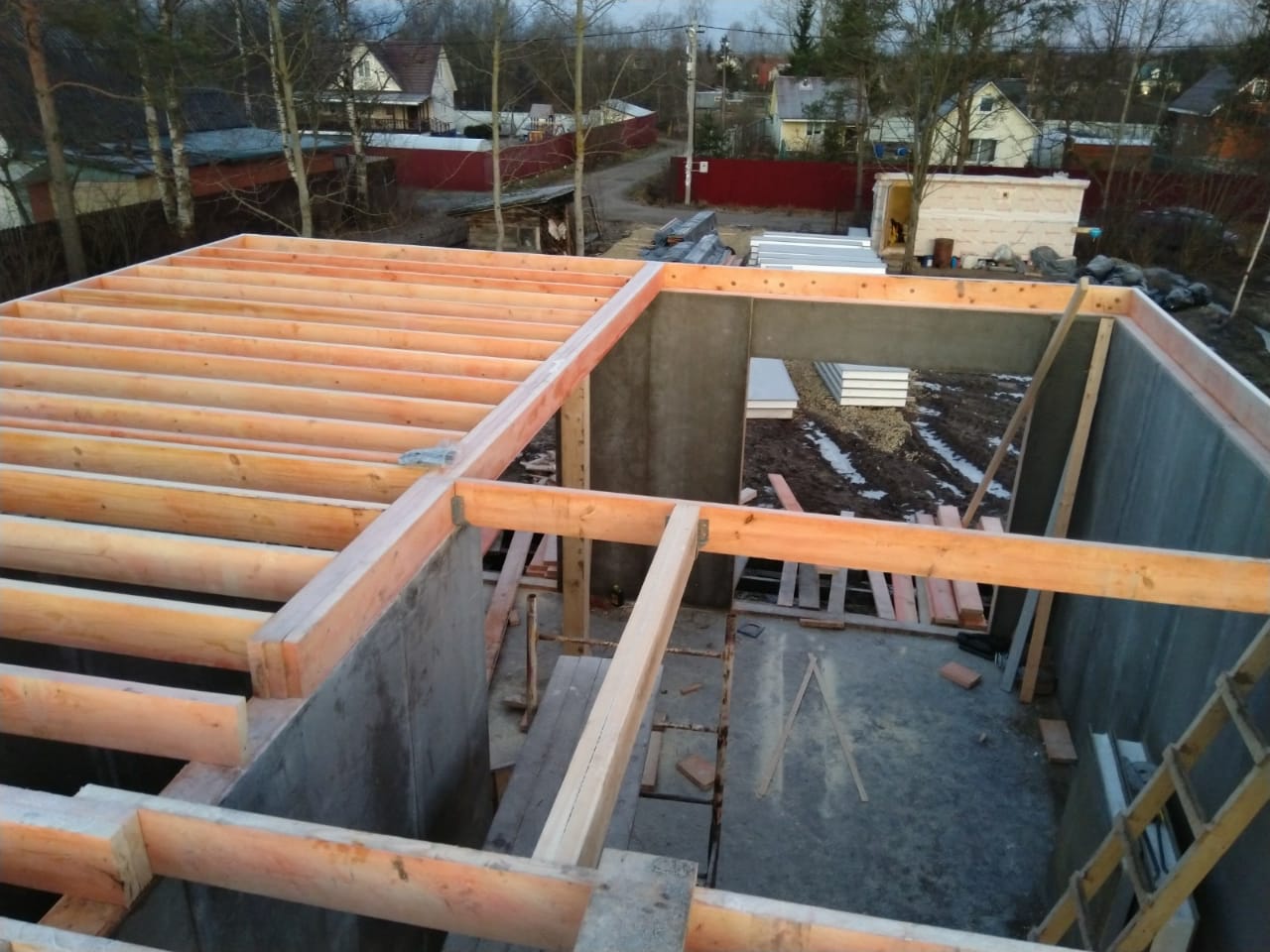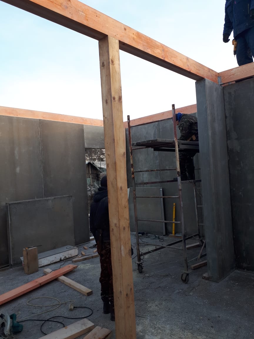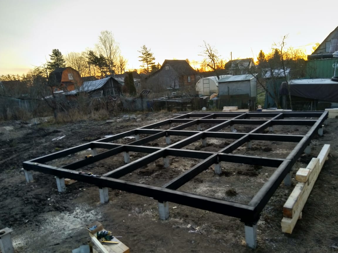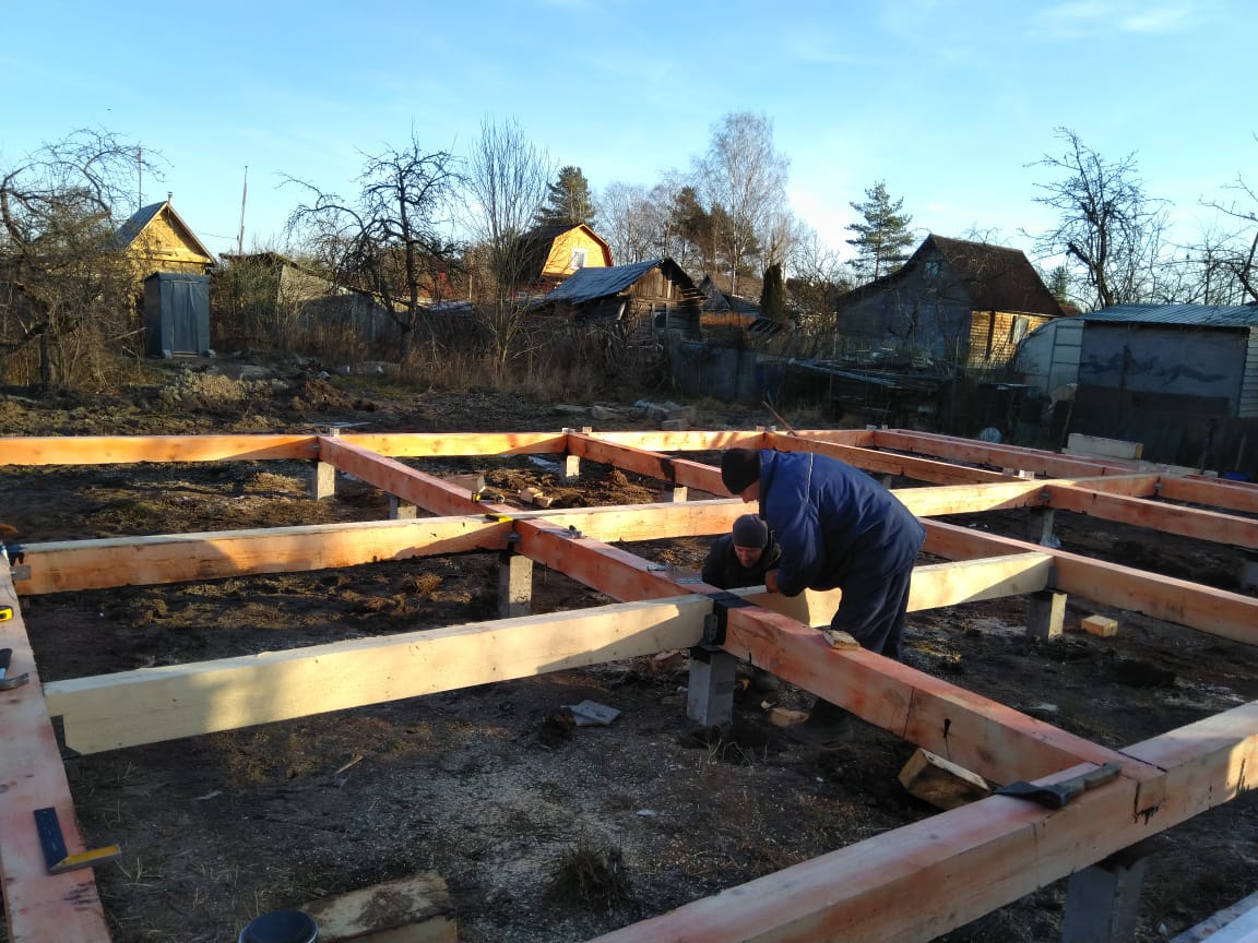 Ростверк изготовлен из калиброванного клееного бруса и защищен снаружи цементно-стружечной плитой