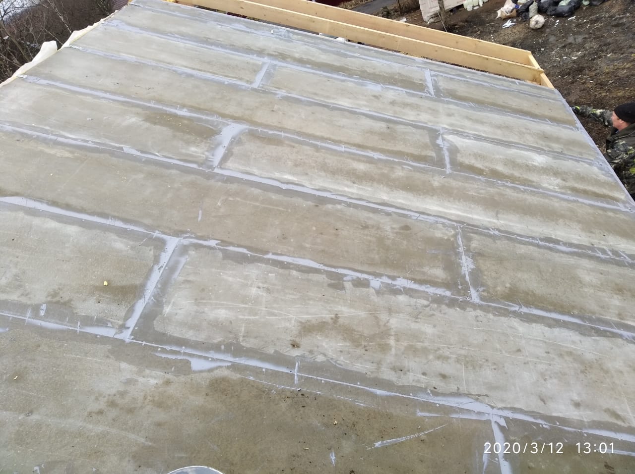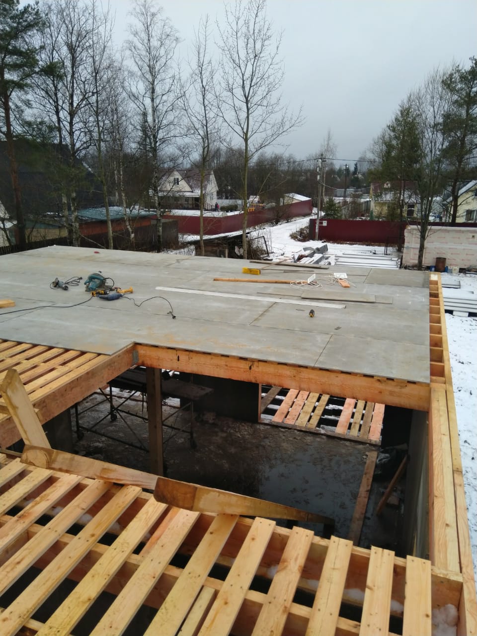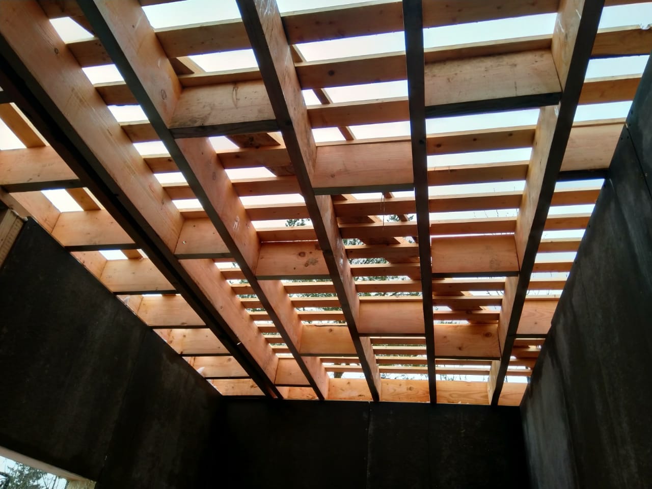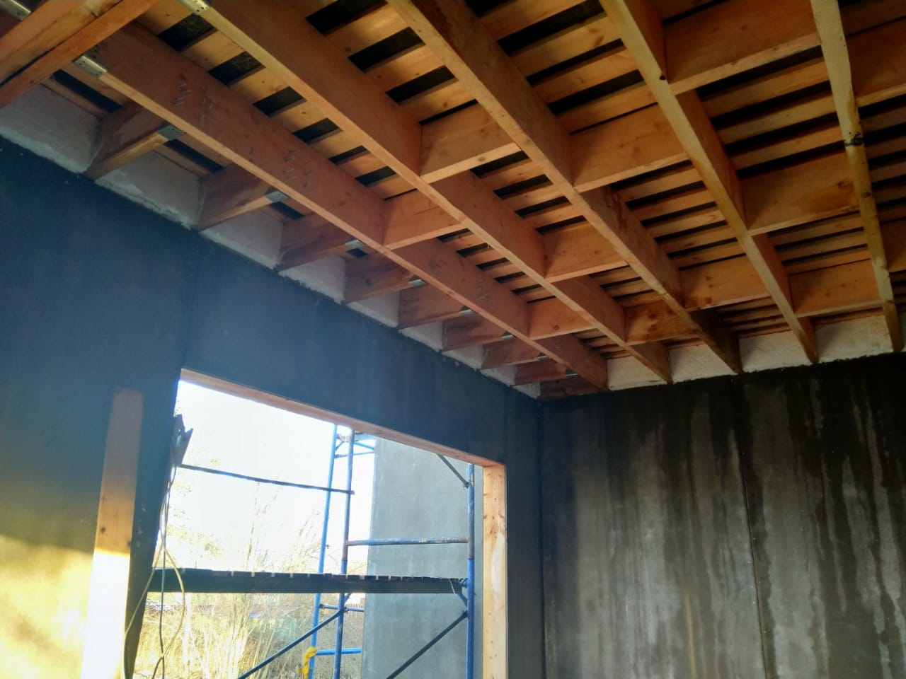 Ростверк изготовлен из калиброванного клееного бруса и защищен снаружи цементно-стружечной плитой