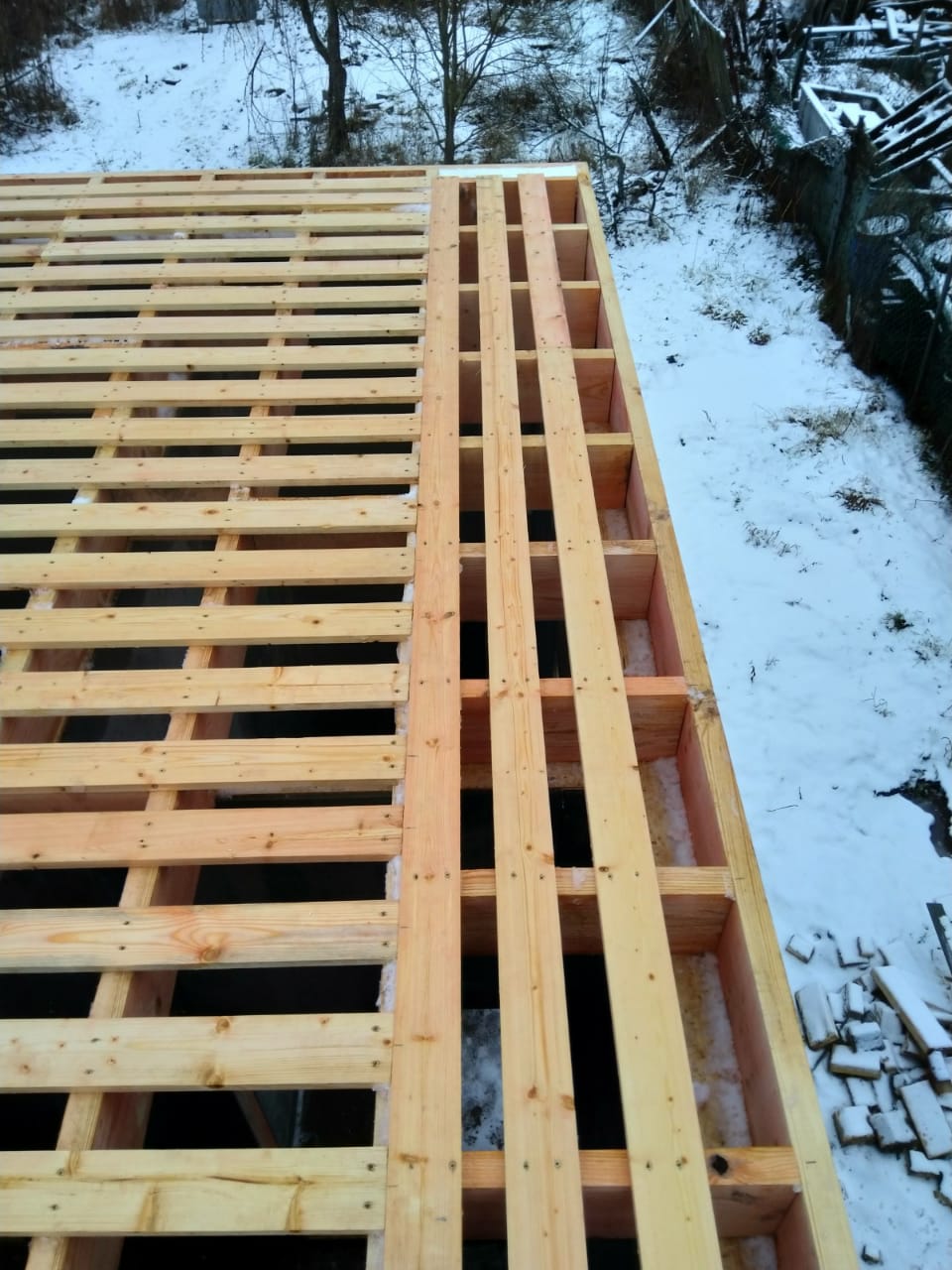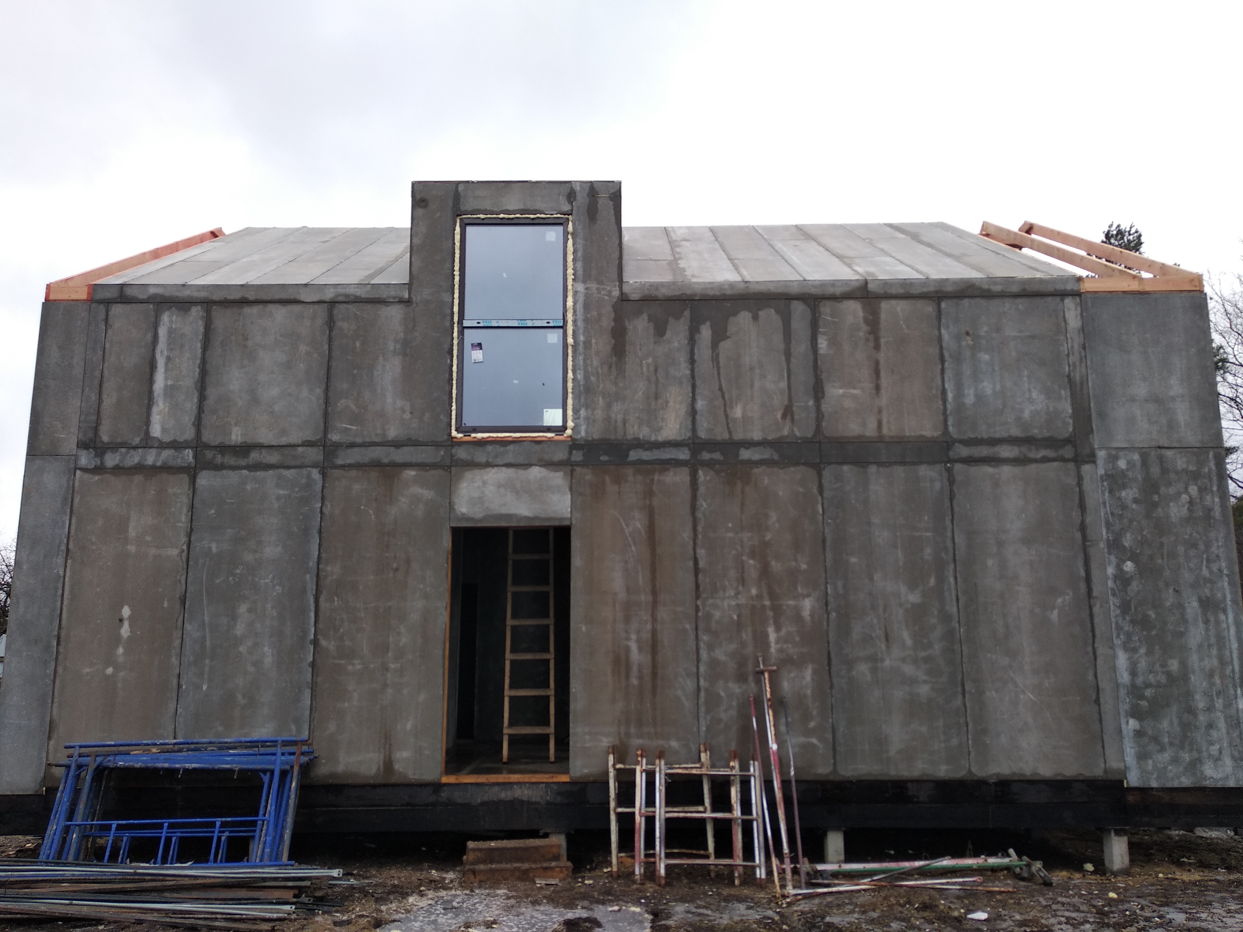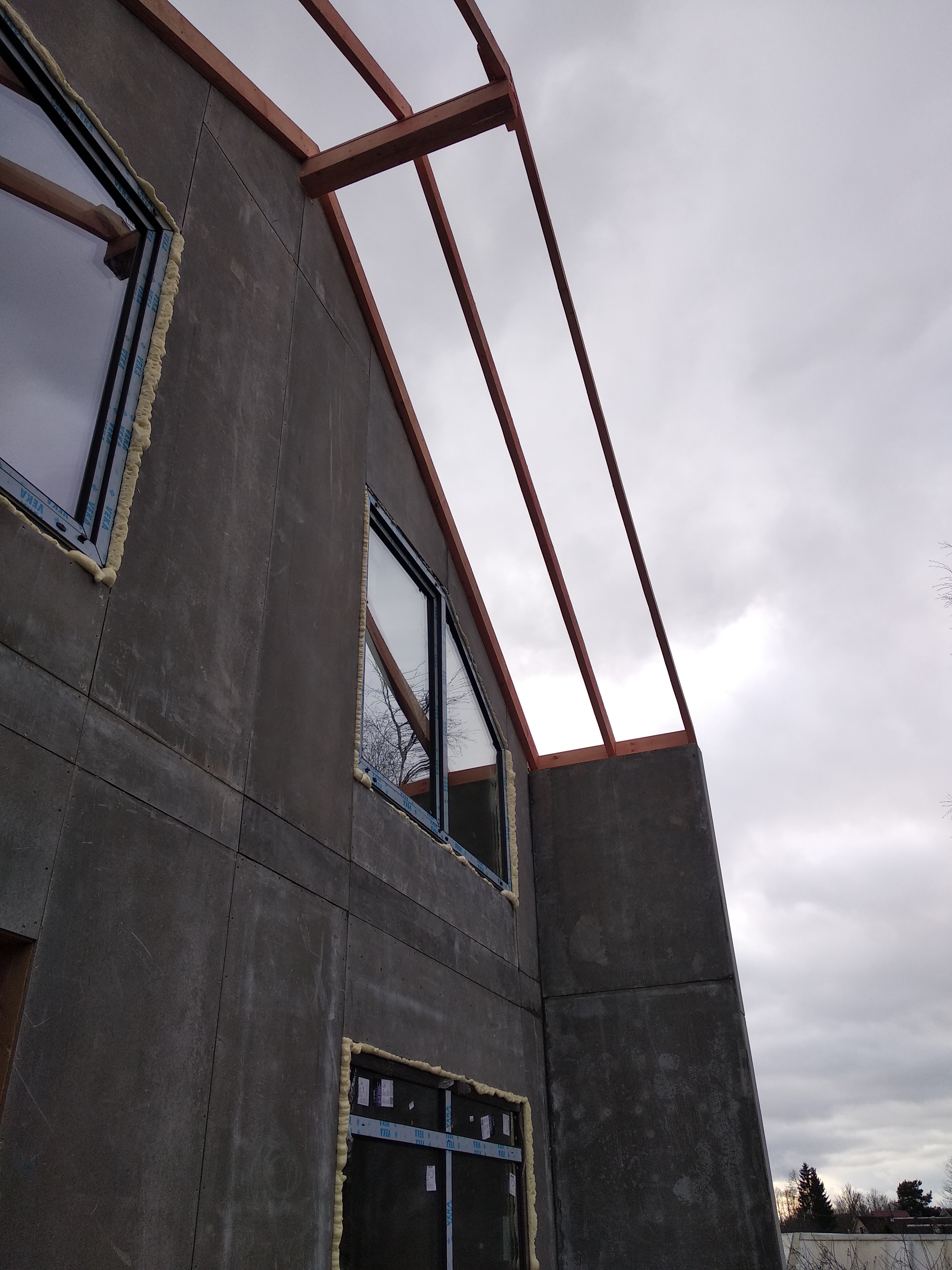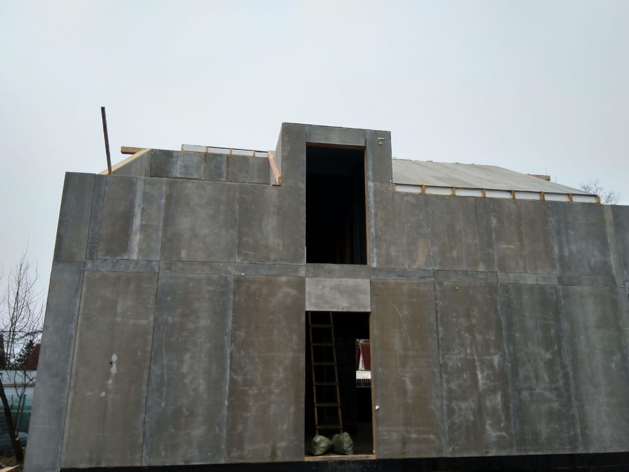 Крыша выполнена также из СИП панелей с ЦСП, чердачное перекрытие полностью отсутствует.