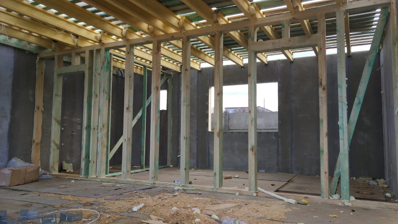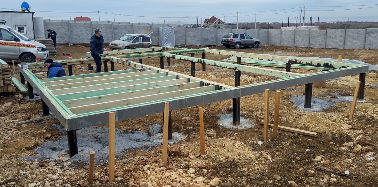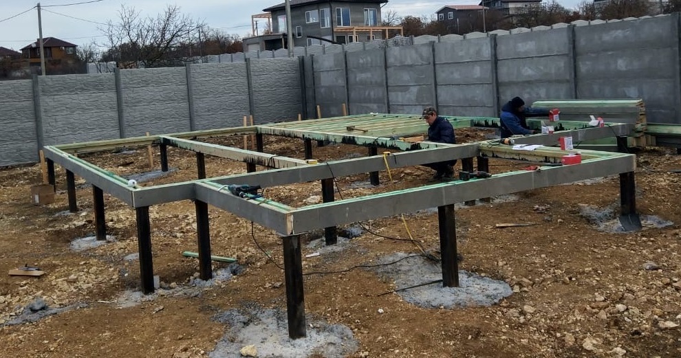 Ростверк изготовлен из калиброванного клееного бруса и защищен снаружи цементно-стружечной плитой