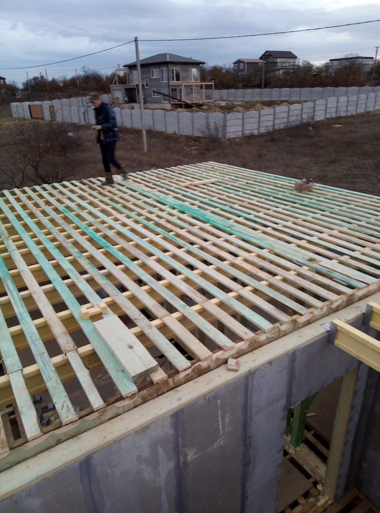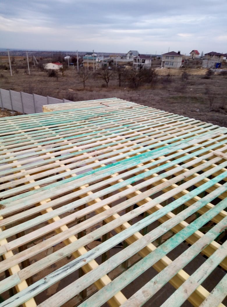 Кровля может быть построена из бруса 150х50мм или SIP панелей. В качестве кровельного материала можно использовать: металлочерепицу, битумную и керамическую черепицу. Также производим кровельные шовные сэндвич-панели.