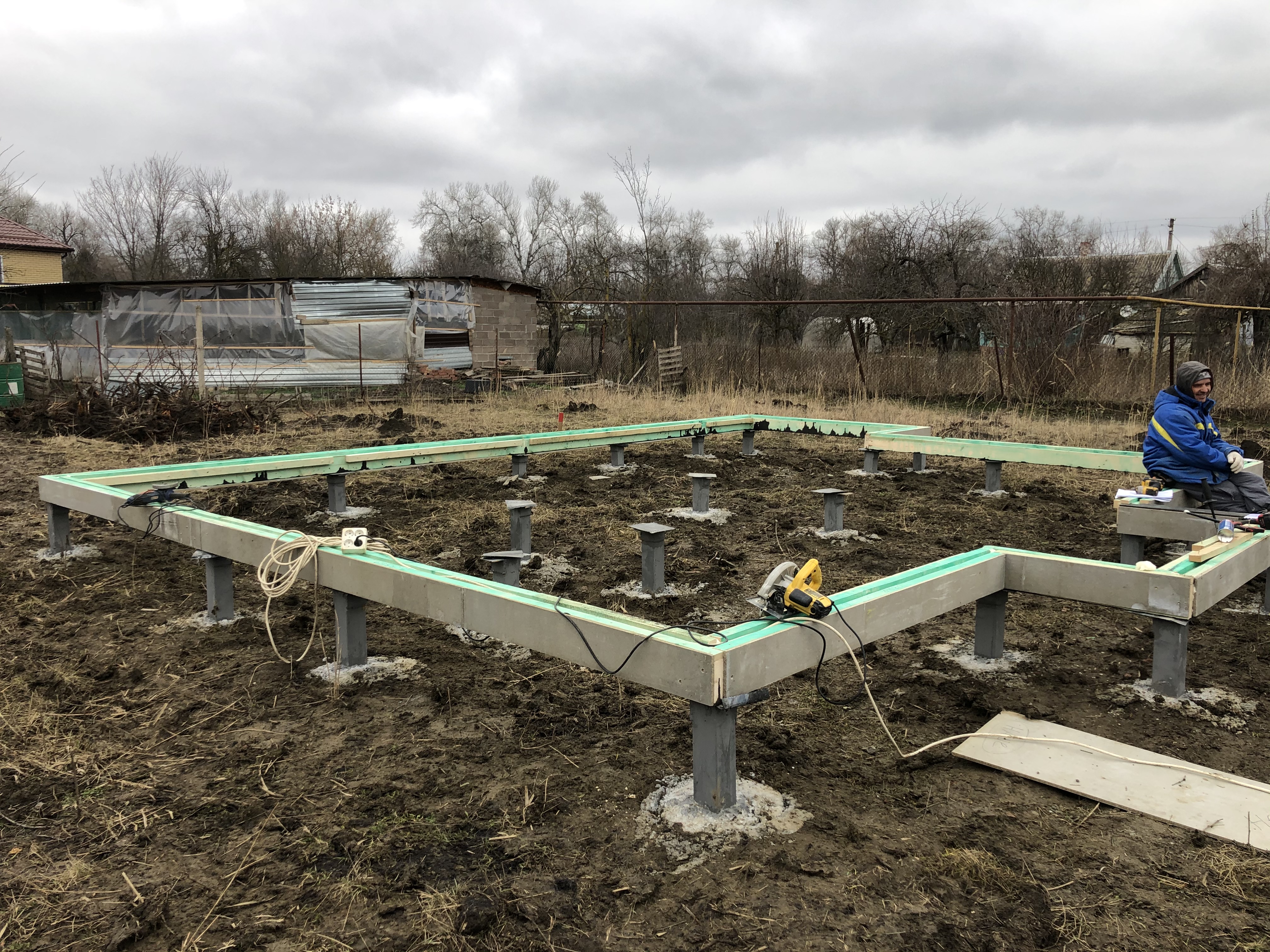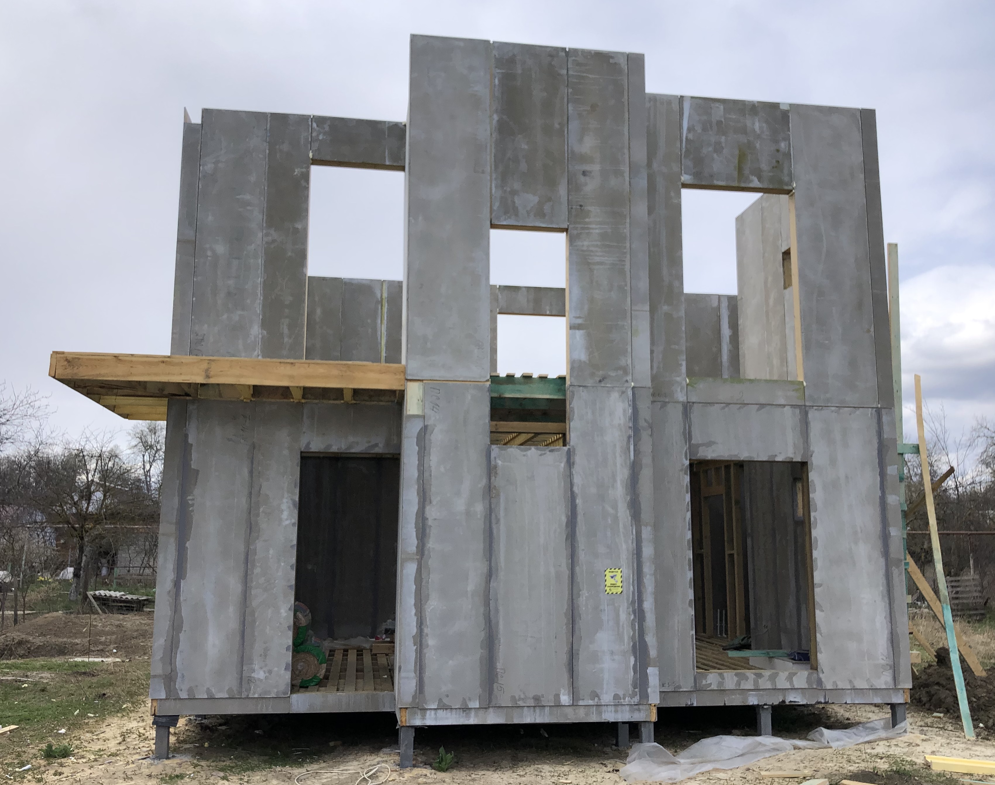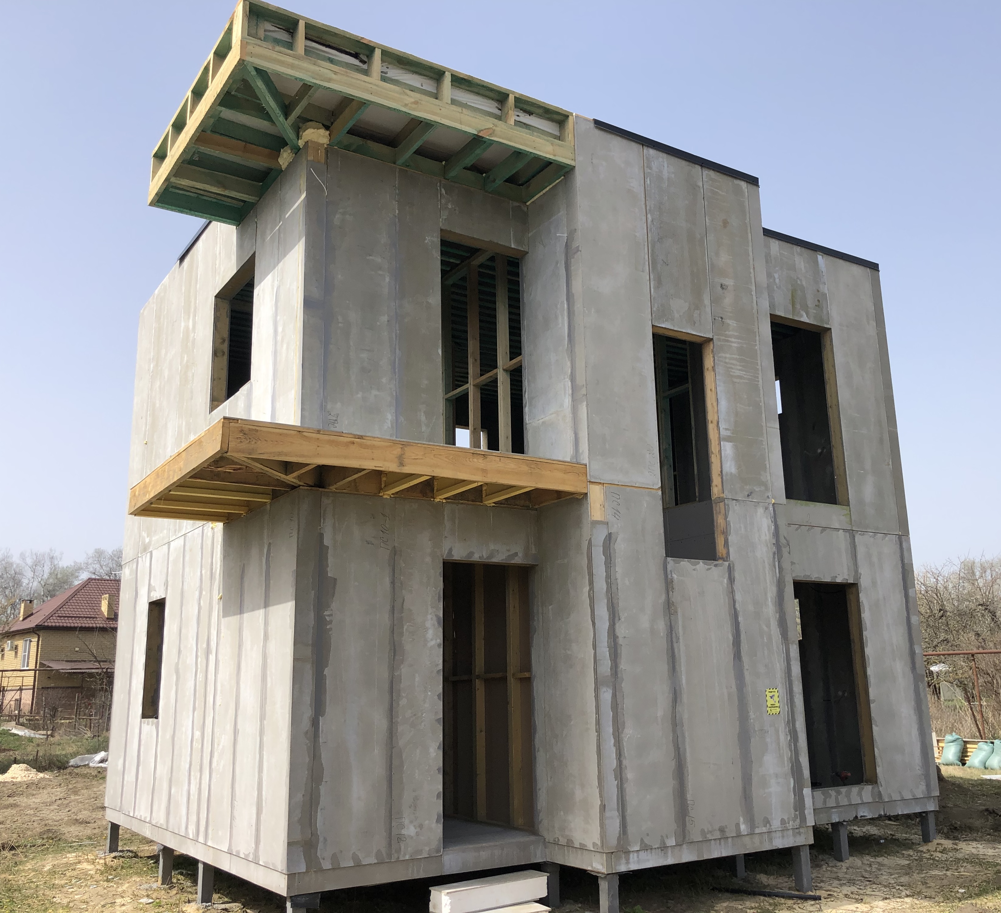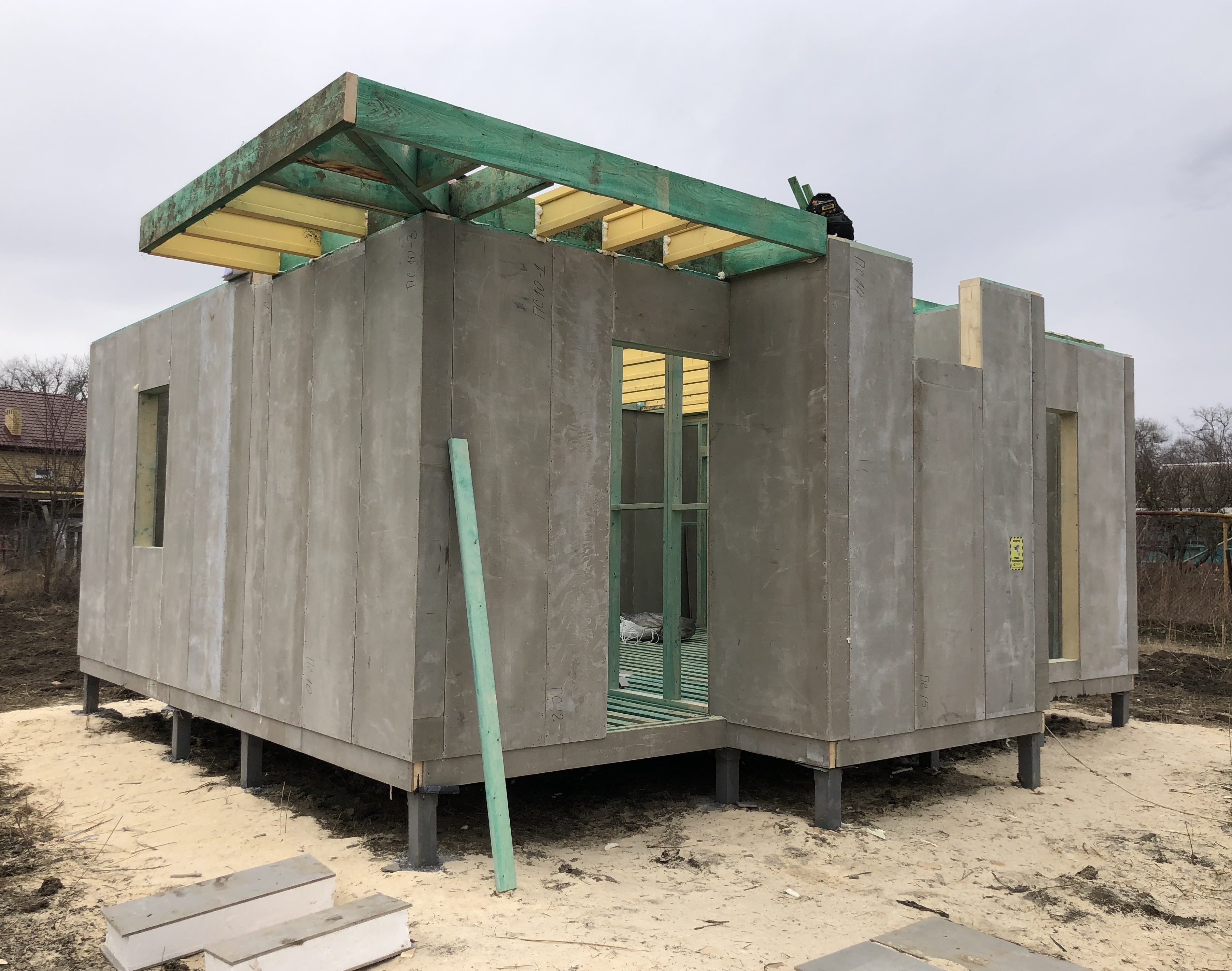Ростверк изготовлен из калиброванного клееного бруса и защищен снаружи цементно-стружечной плитой