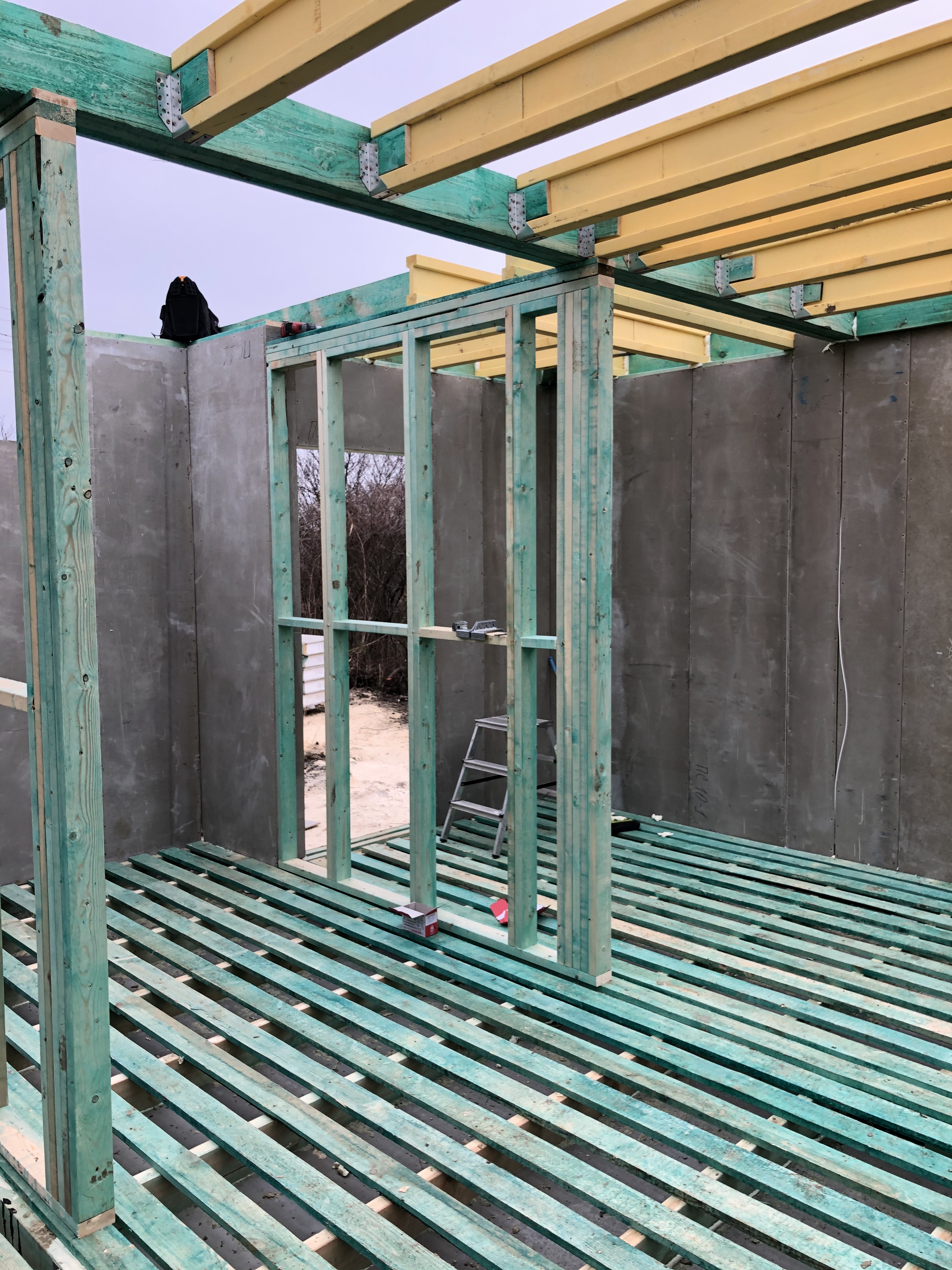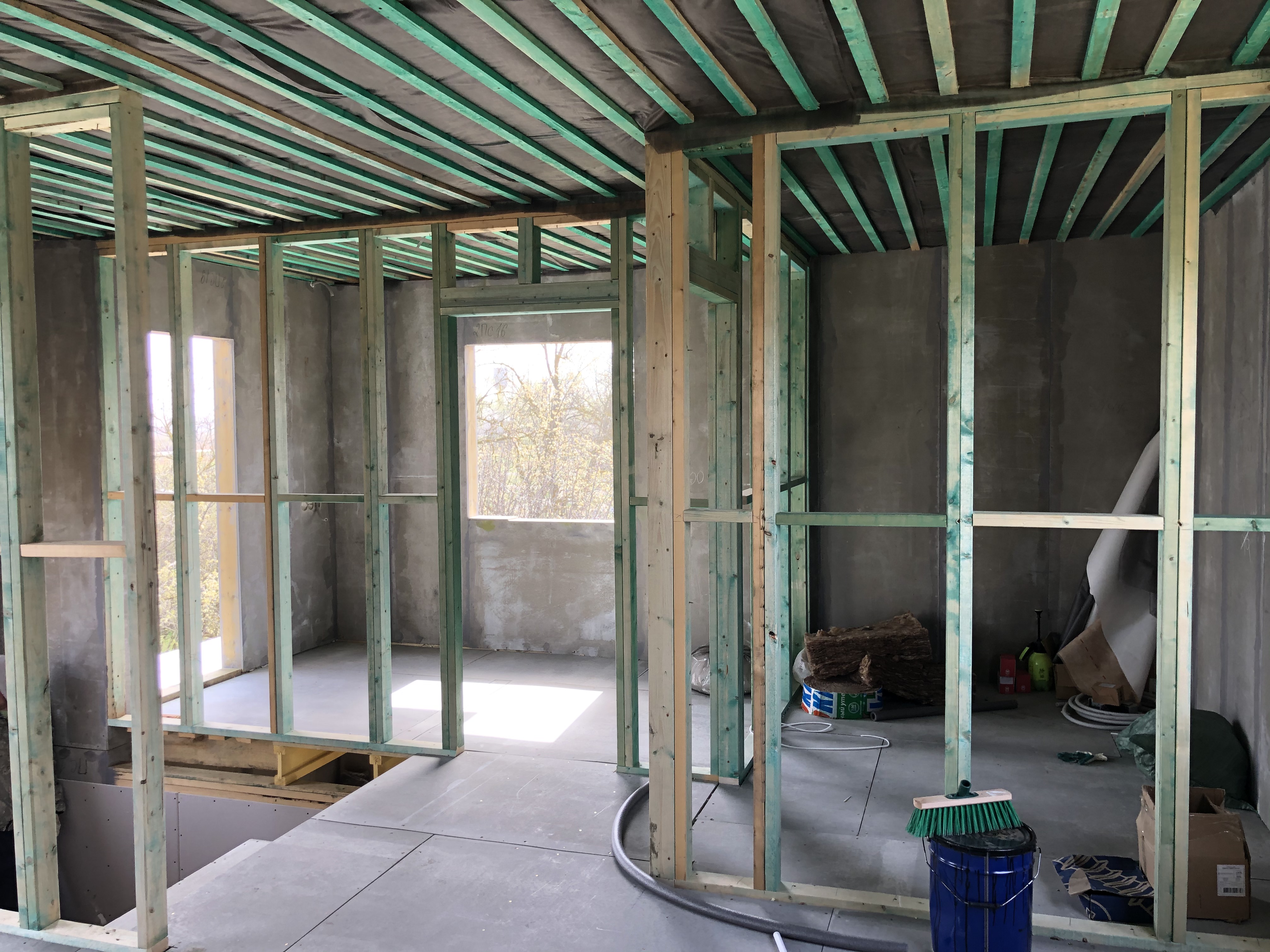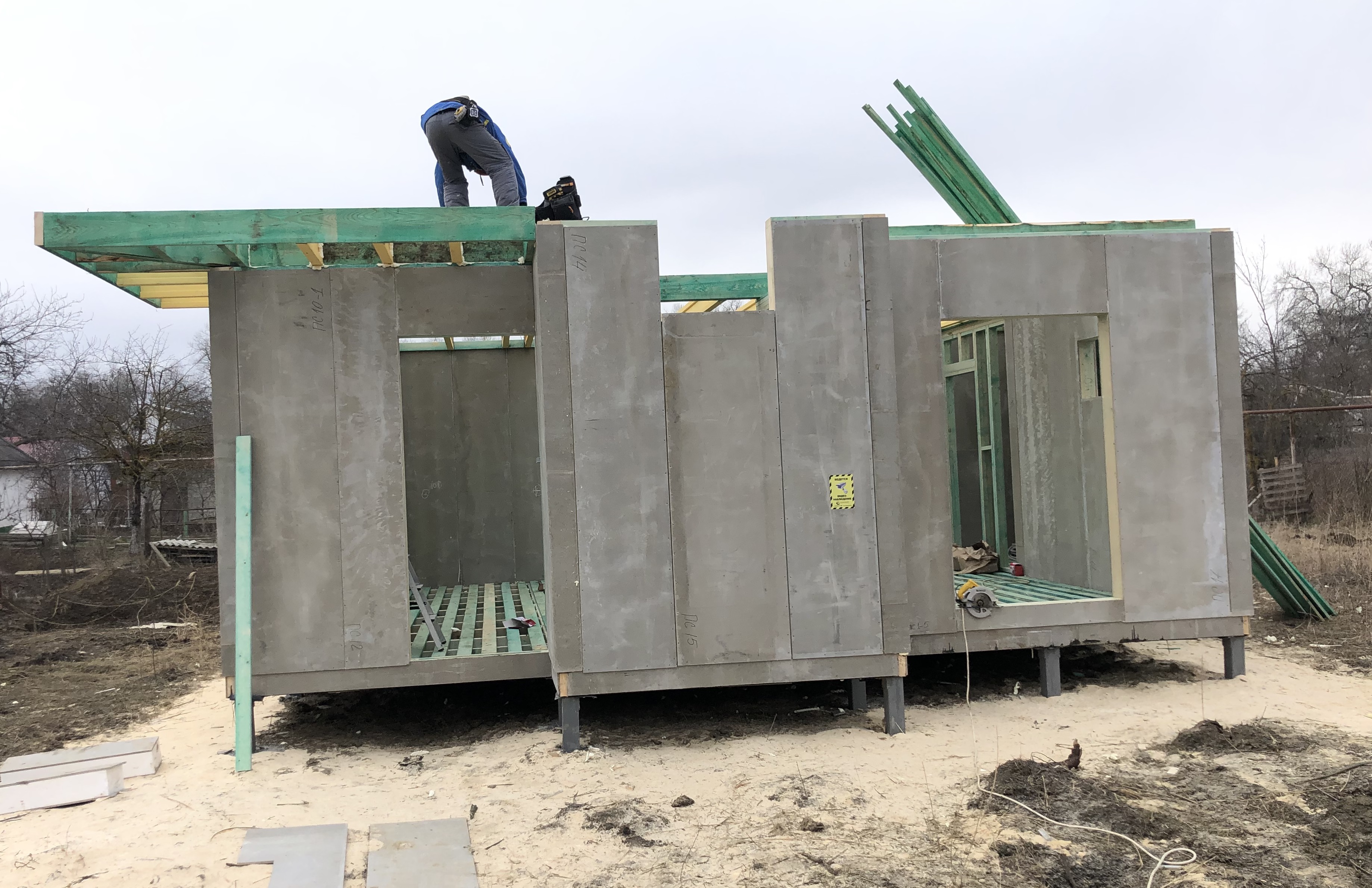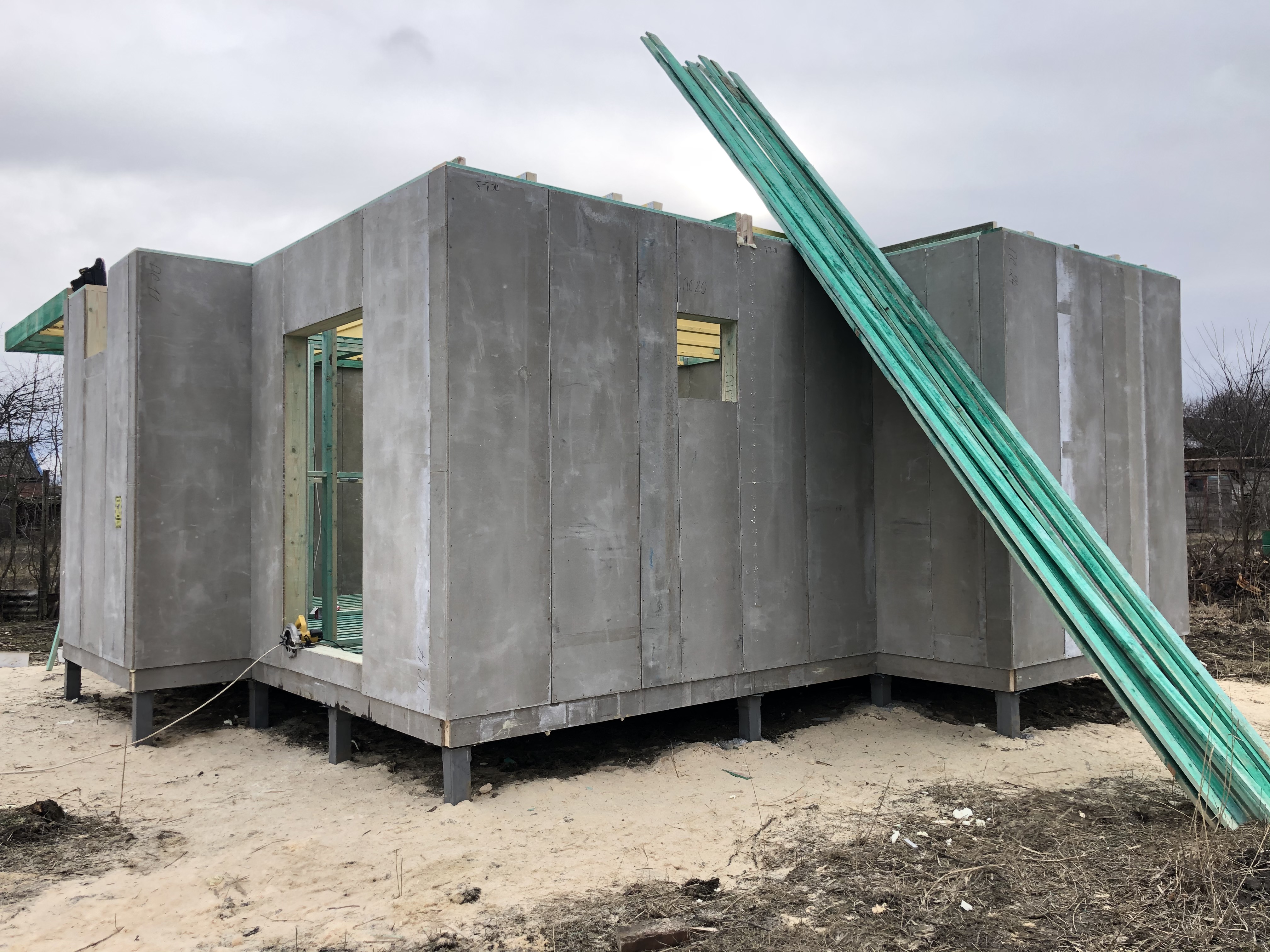 Ростверк изготовлен из калиброванного клееного бруса и защищен снаружи цементно-стружечной плитой