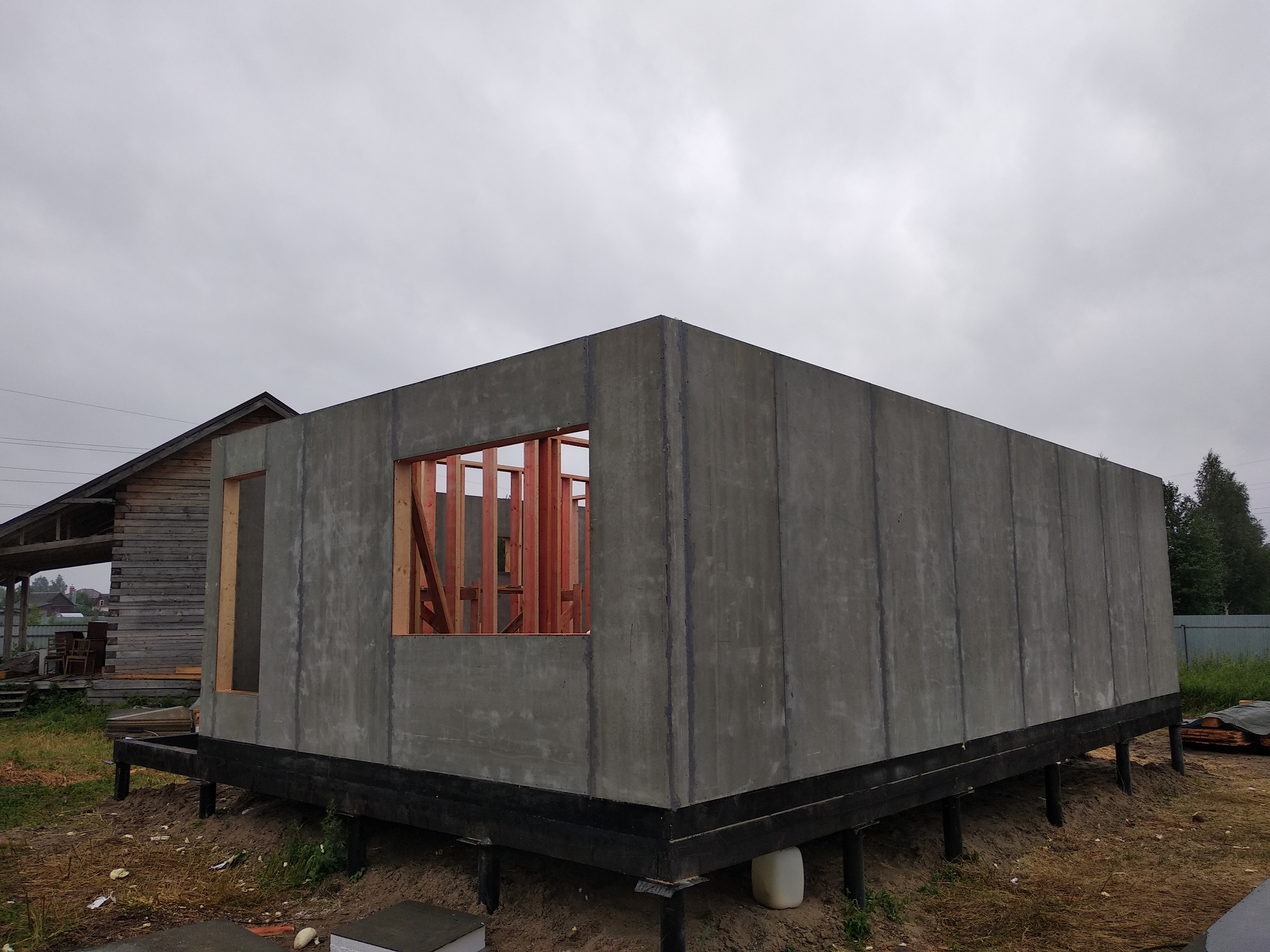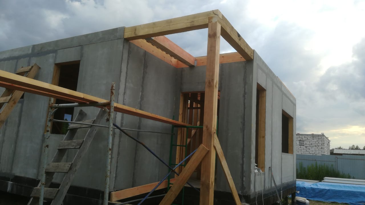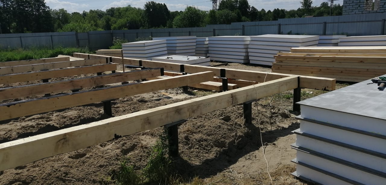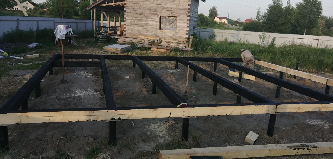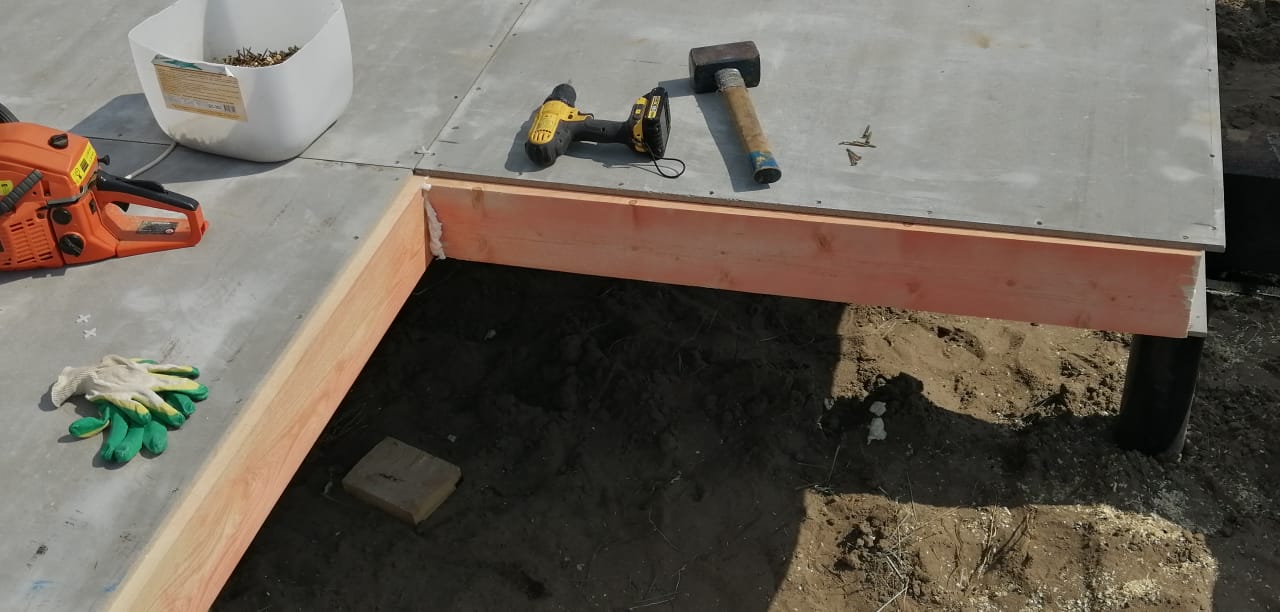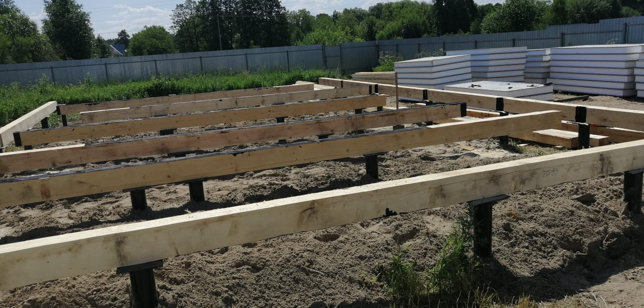 Ростверк изготовлен из калиброванного клееного бруса и защищен снаружи цементно-стружечной плитой