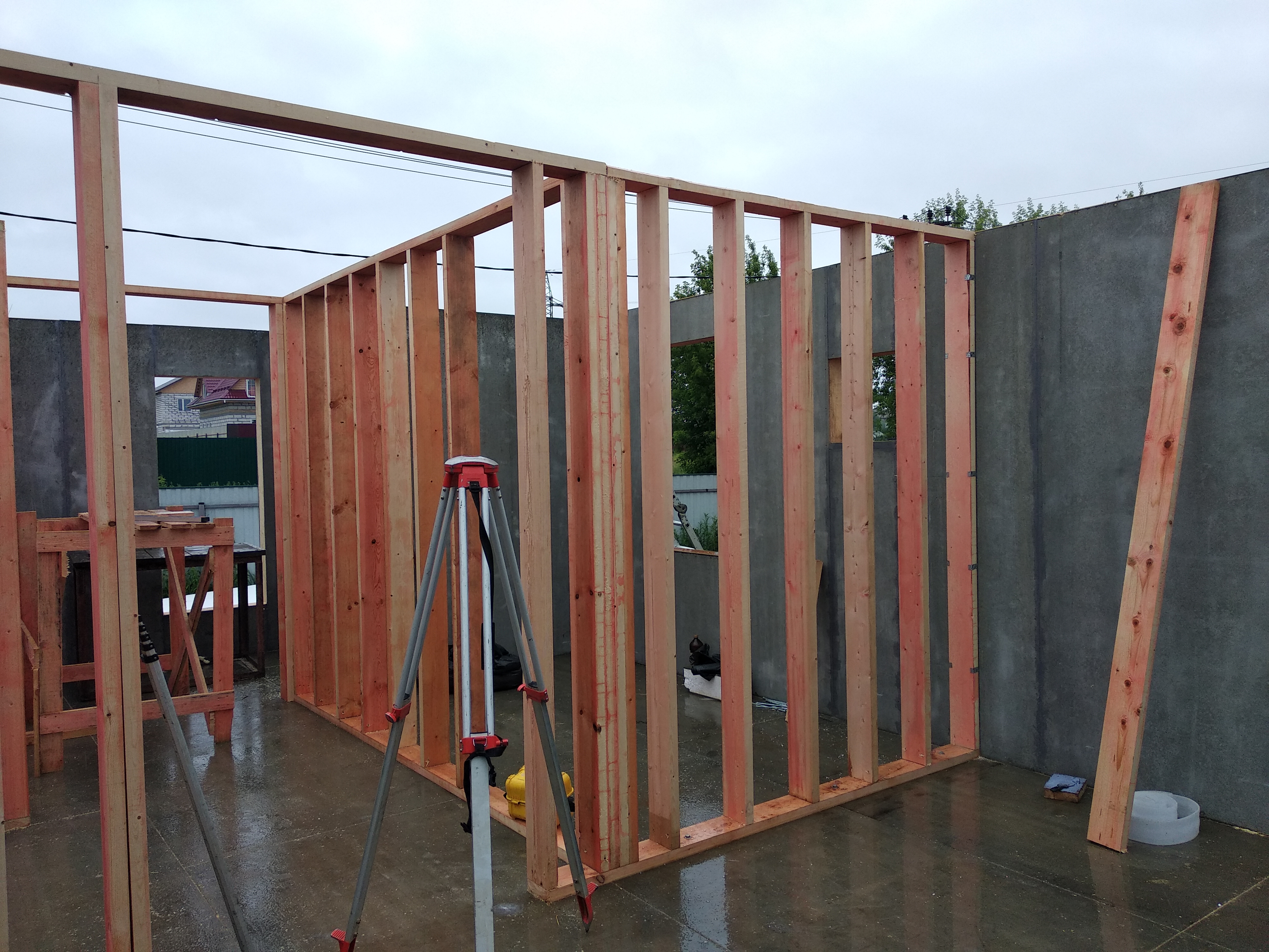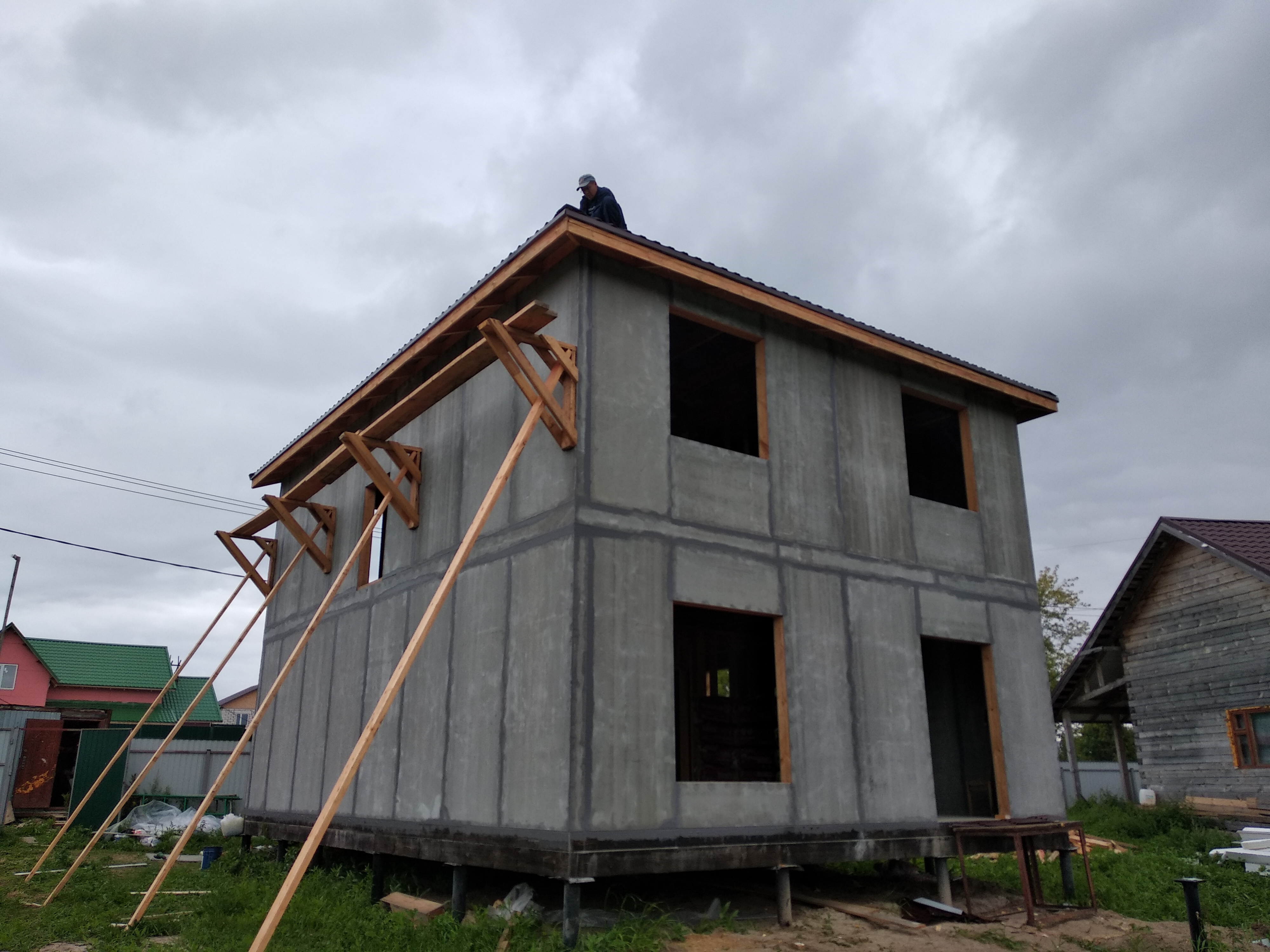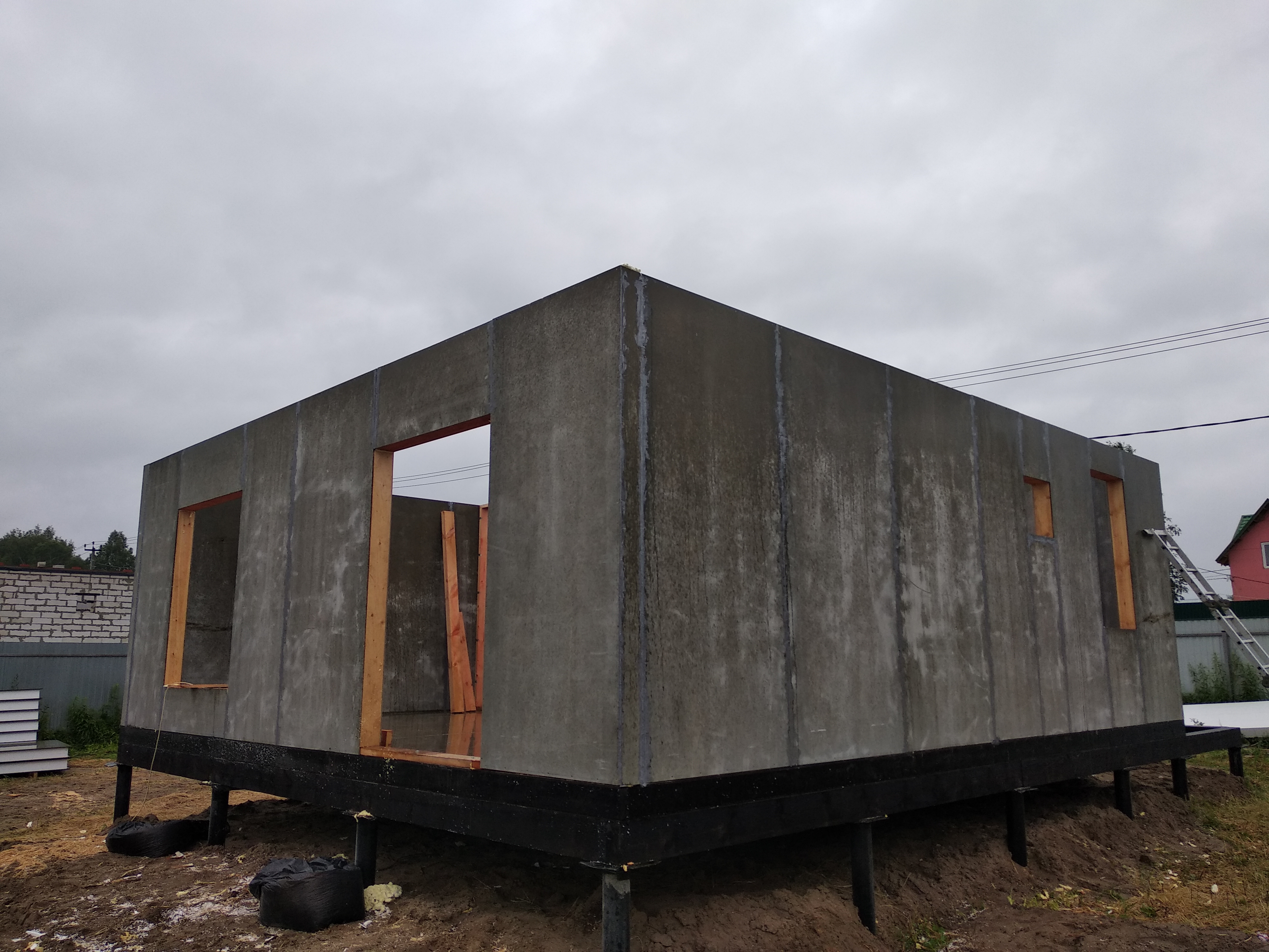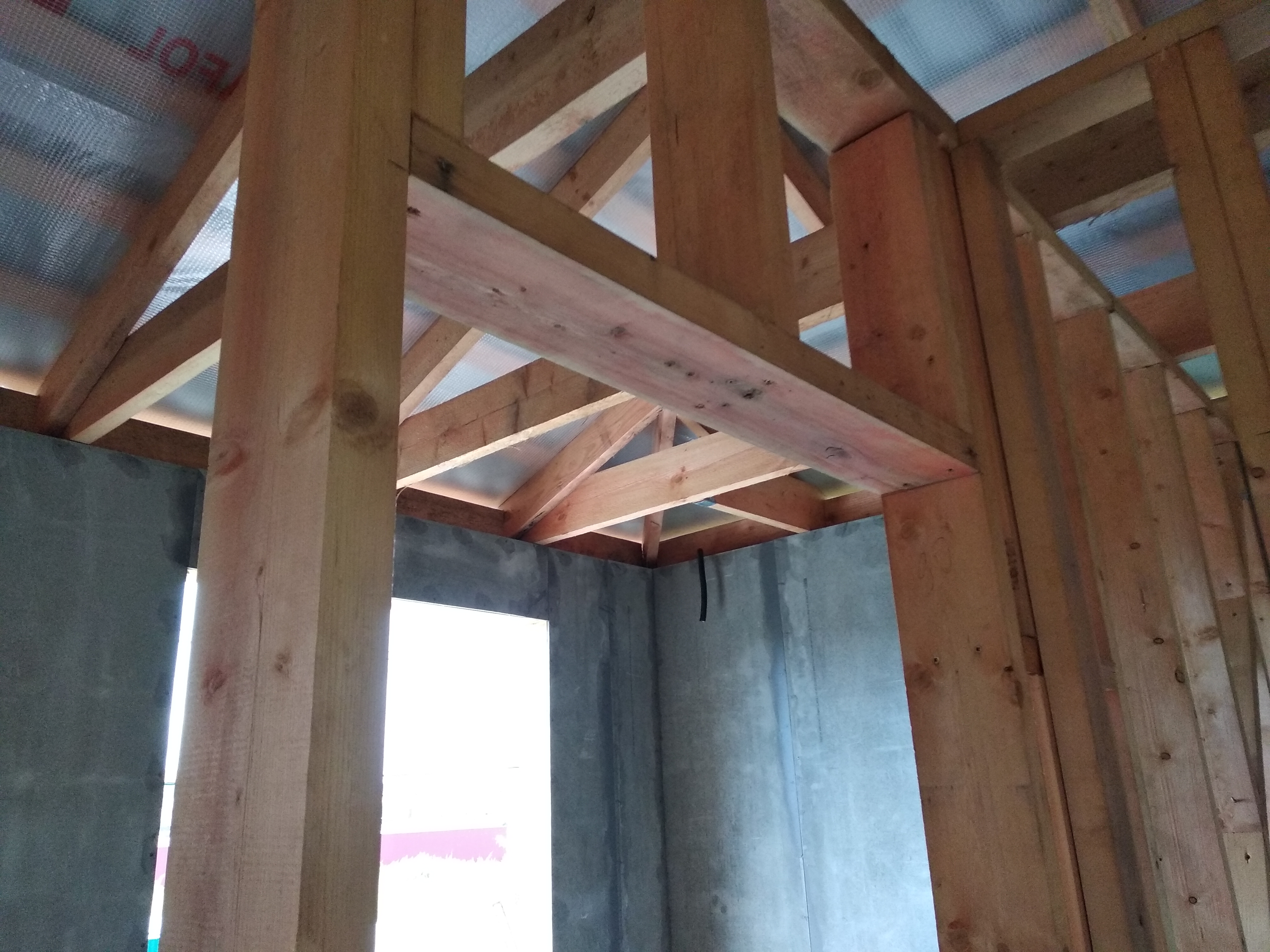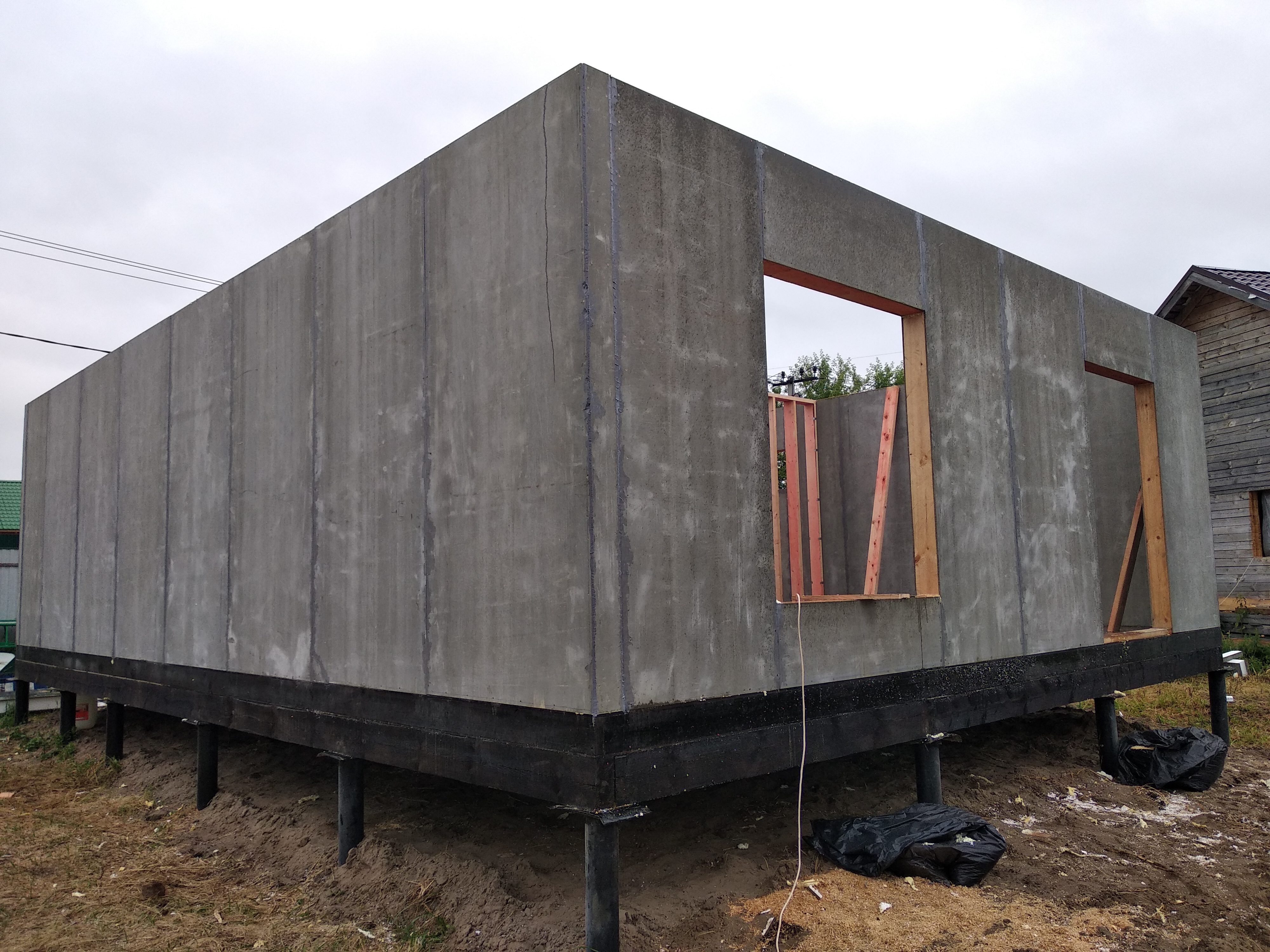 Ростверк изготовлен из калиброванного клееного бруса и защищен снаружи цементно-стружечной плитой