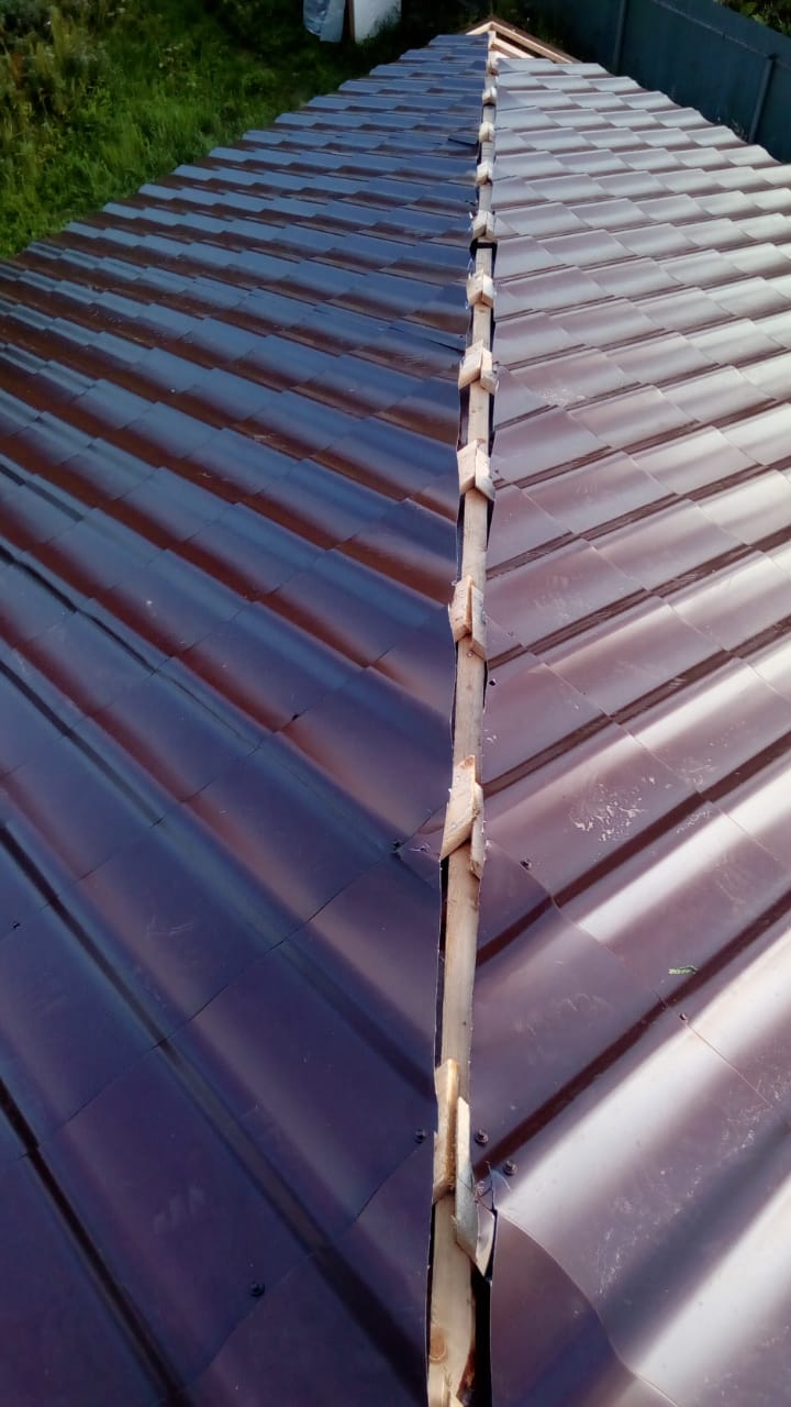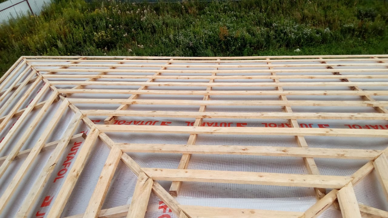 Кровля может быть построена из бруса 150х50мм или SIP панелей. В качестве кровельного материала можно использовать: металлочерепицу, битумную и керамическую черепицу. Также производим кровельные шовные сэндвич-панели.