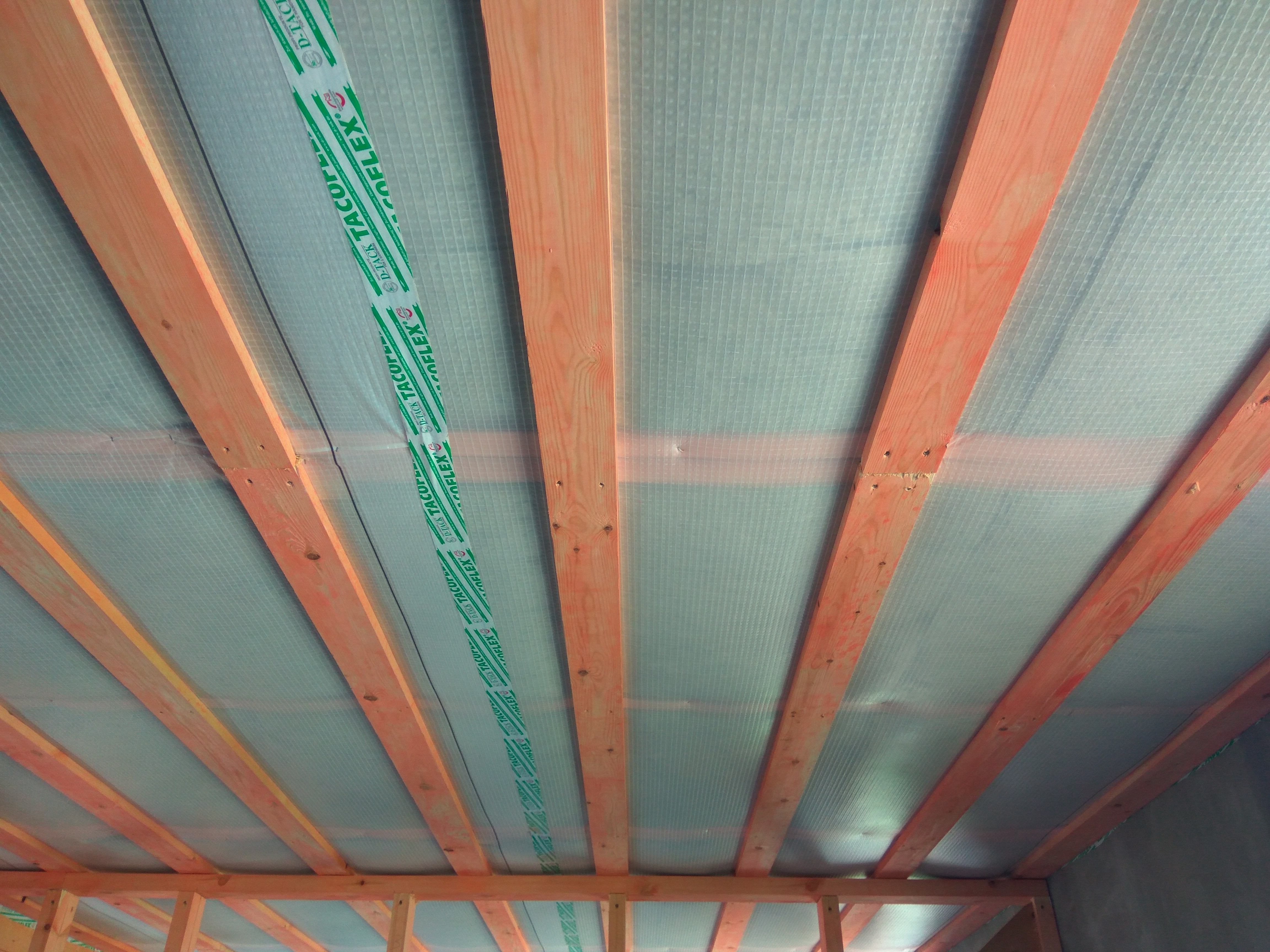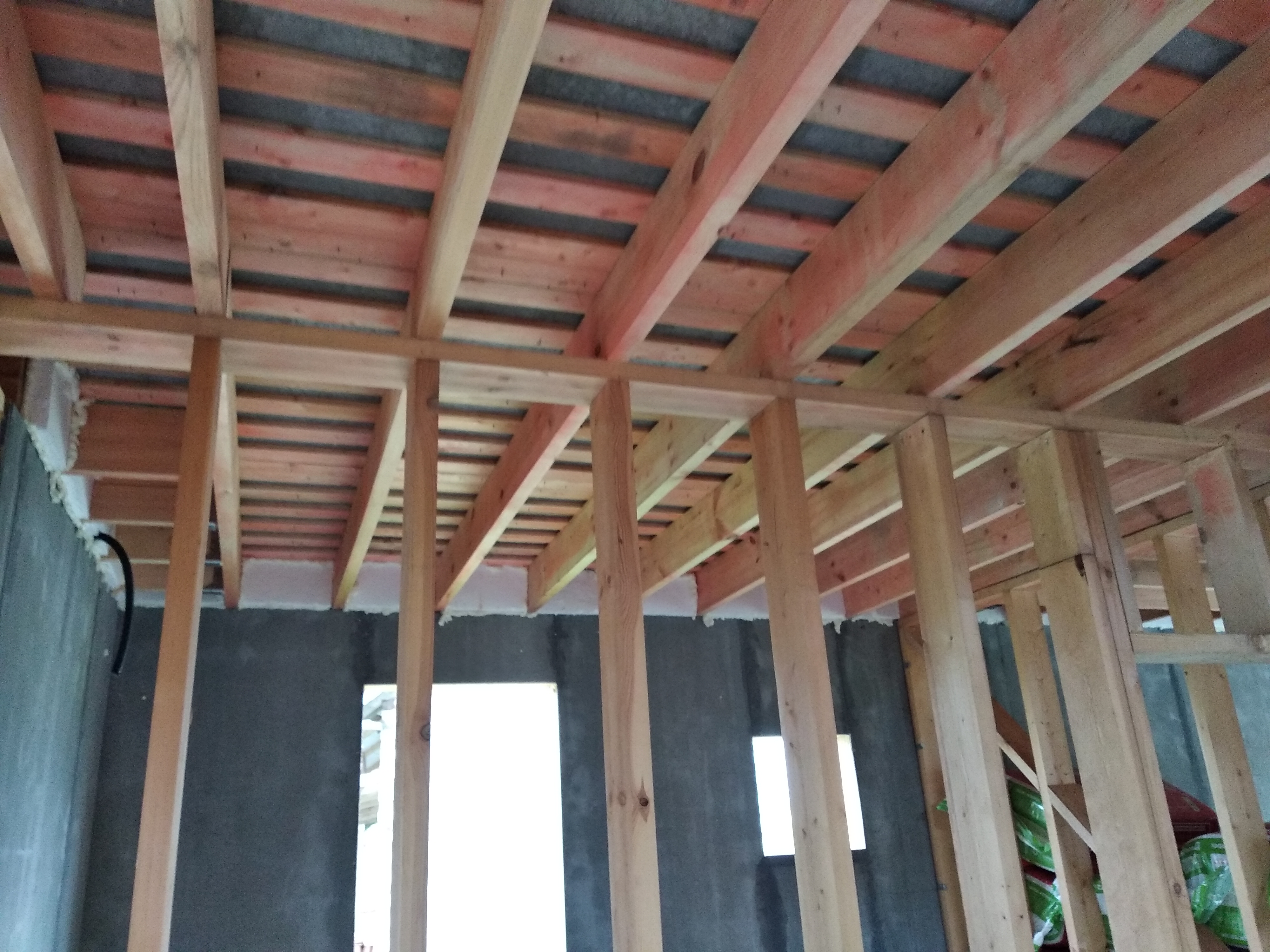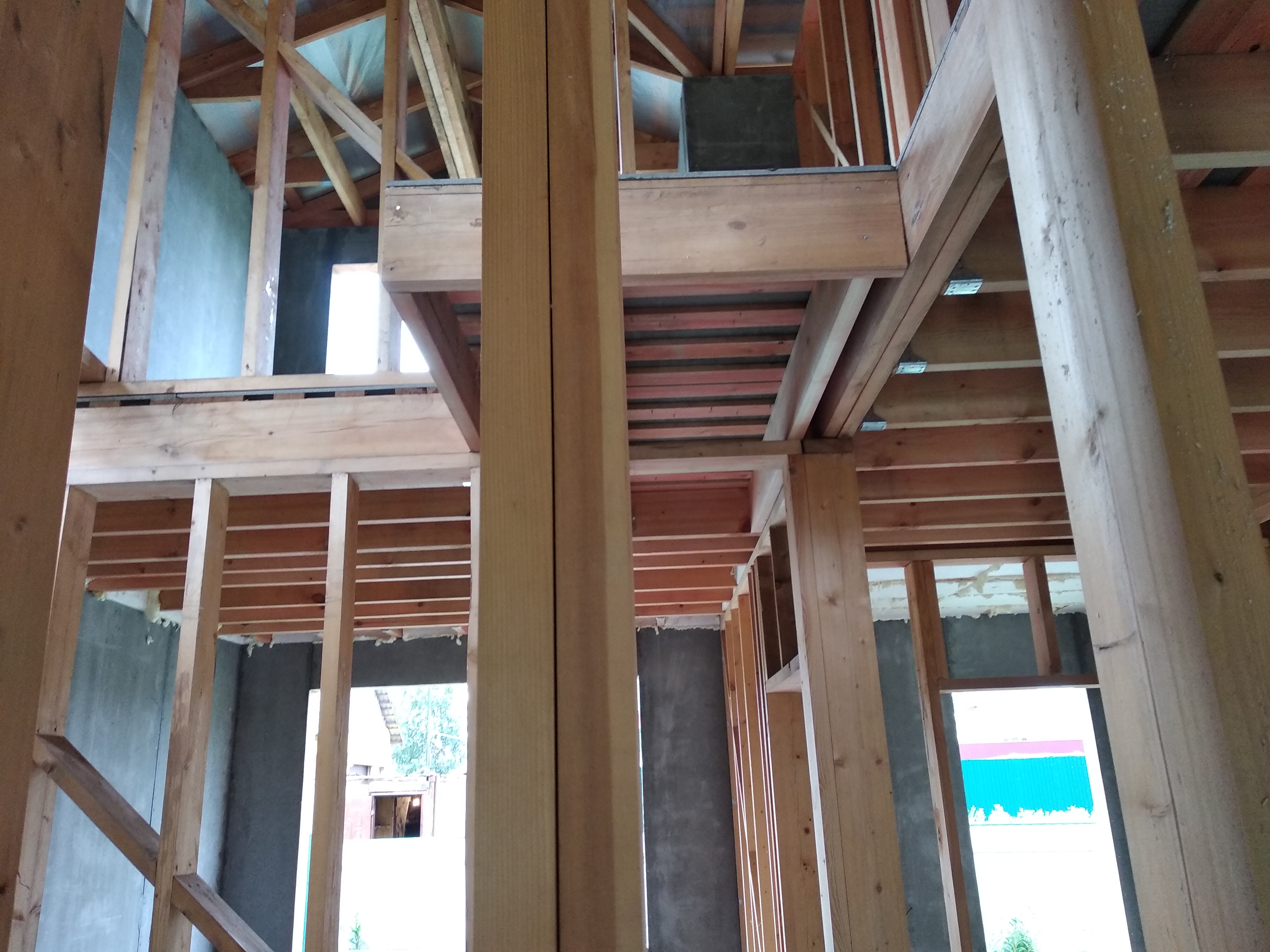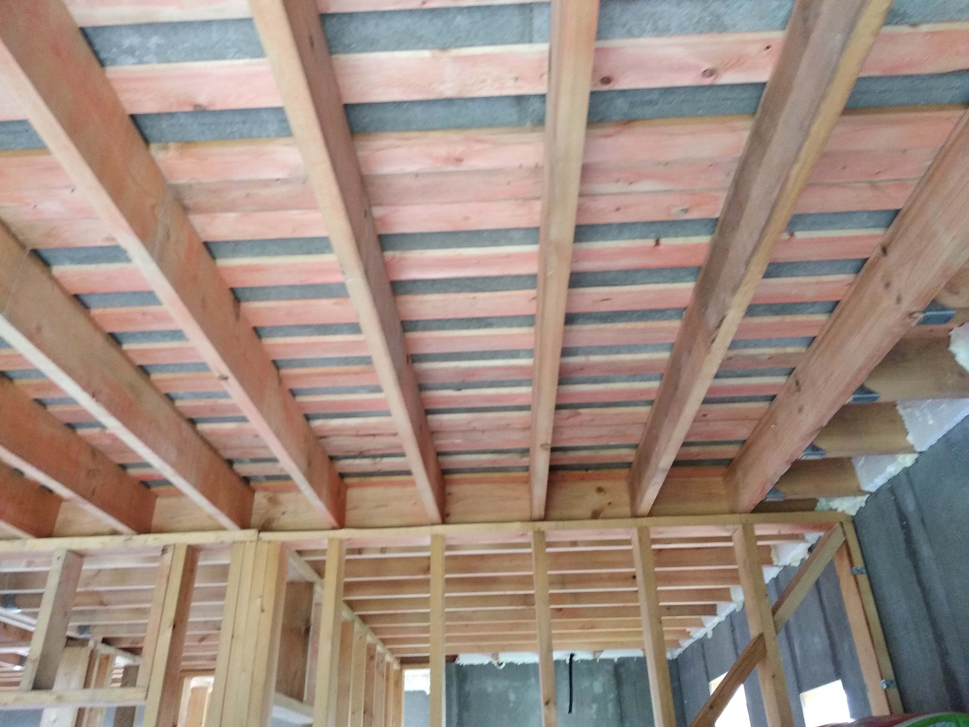 В межэтажных перекрытиях в качестве несущих лаг мы применяем двутавровые балки собственного производства с влагостойкой 24 мм. фанерой в сердечнике.