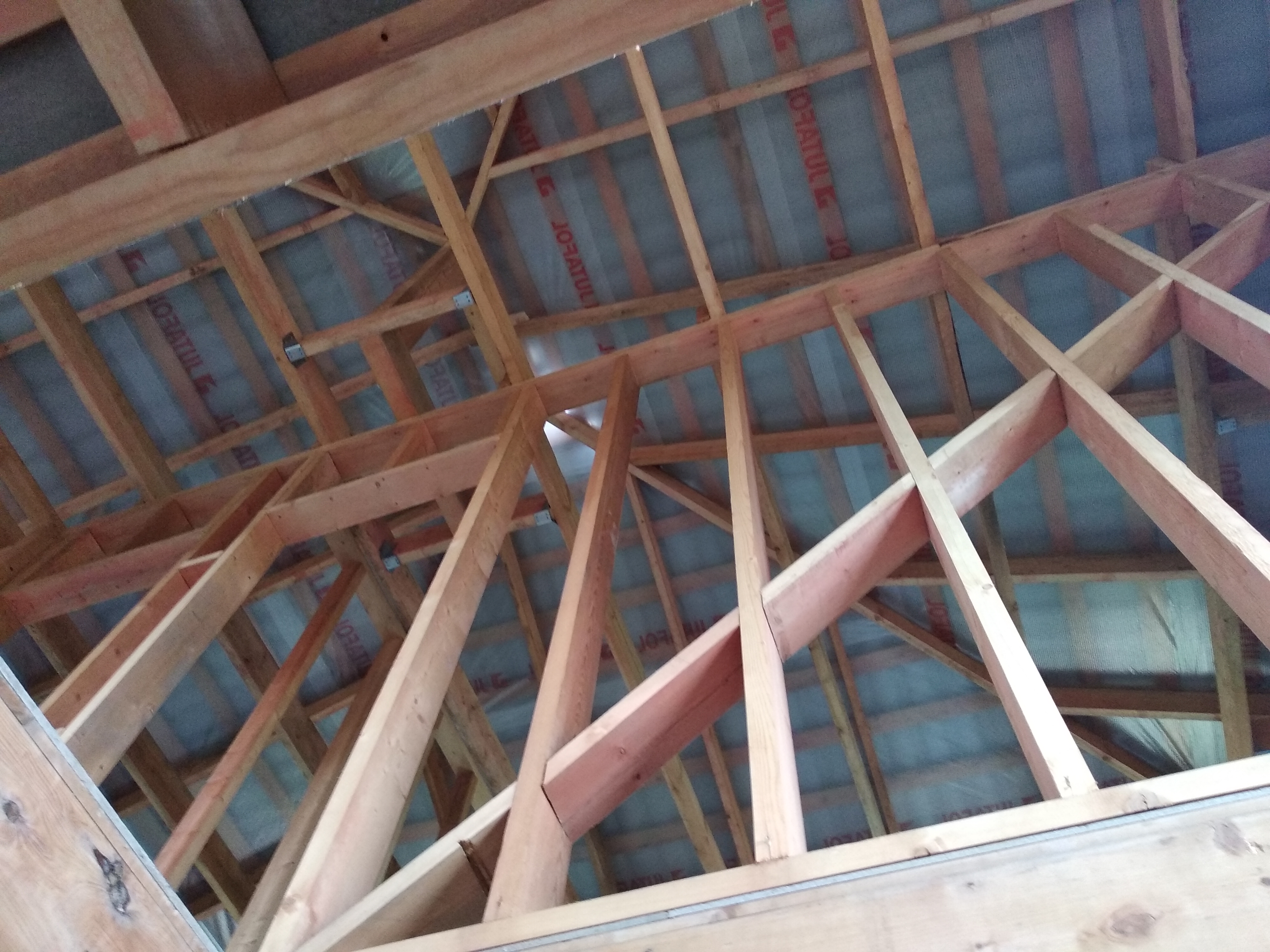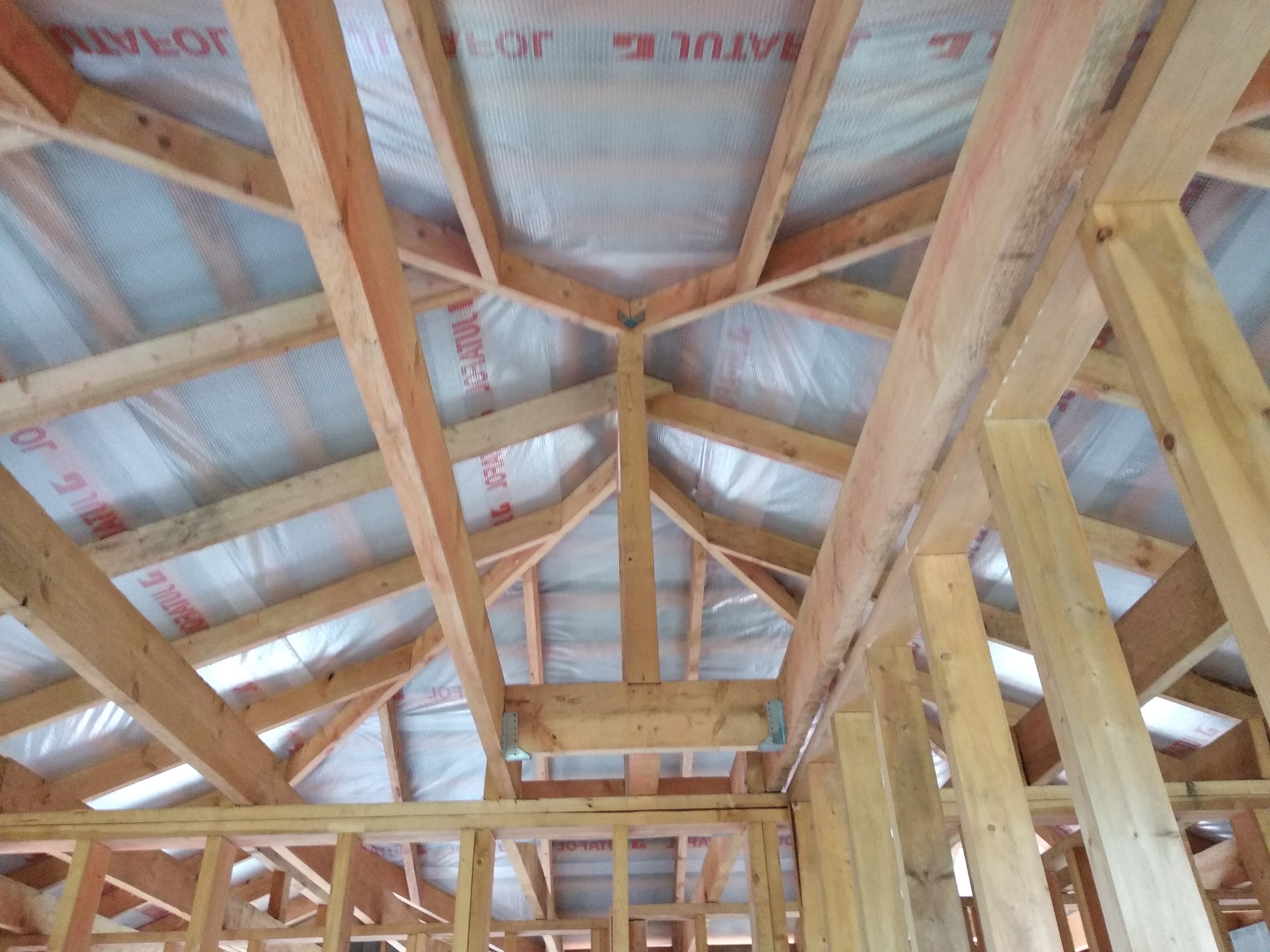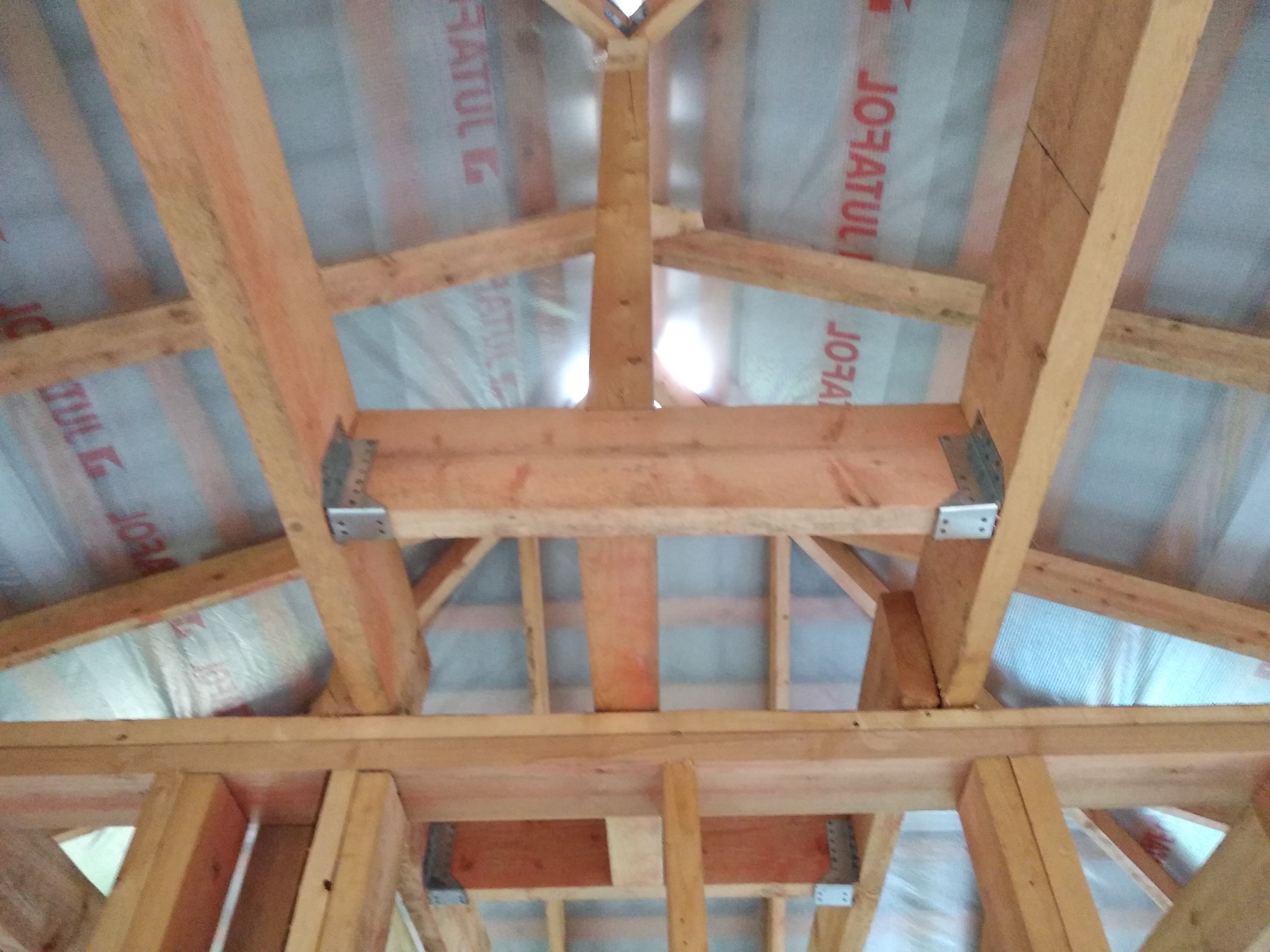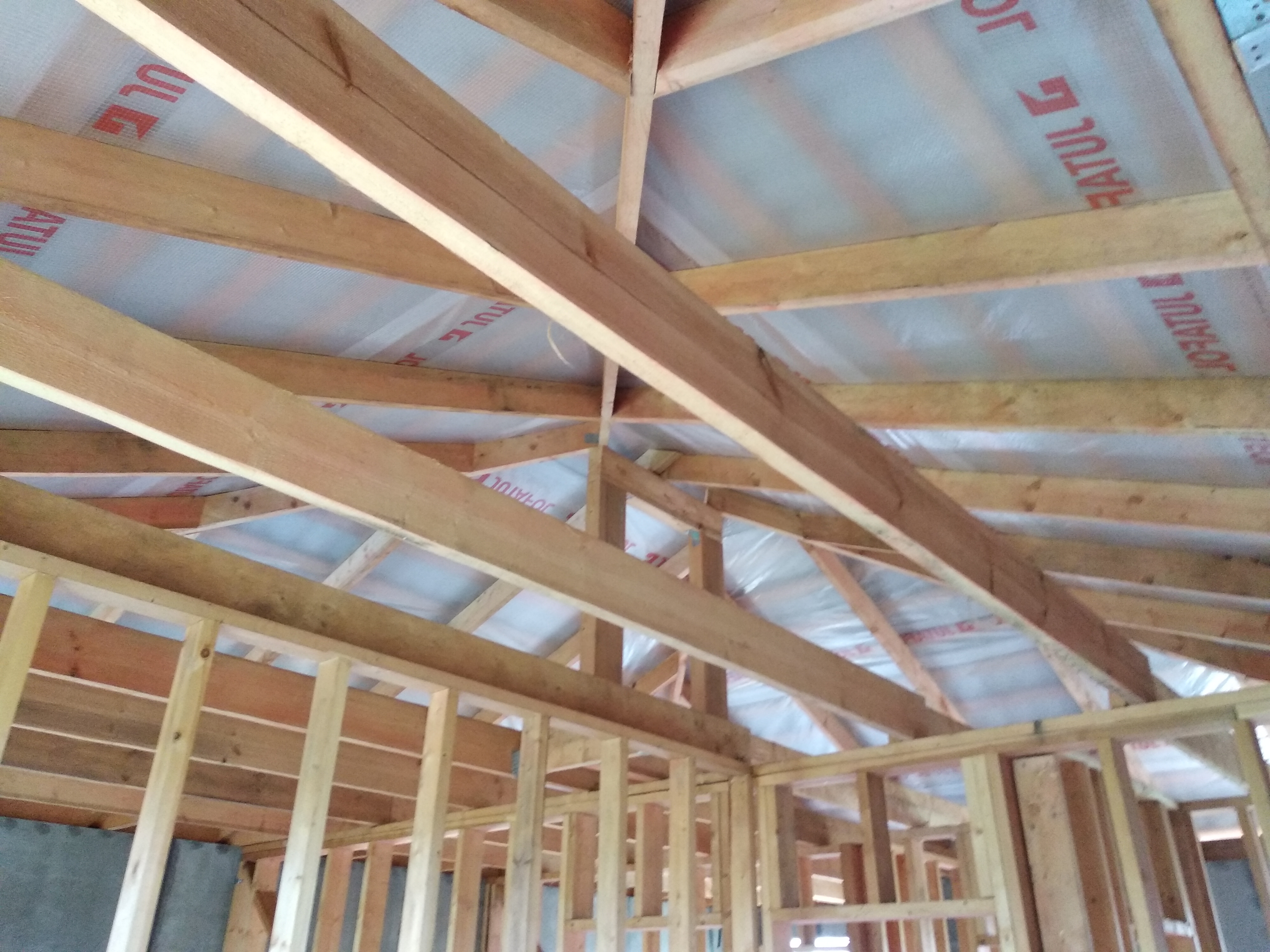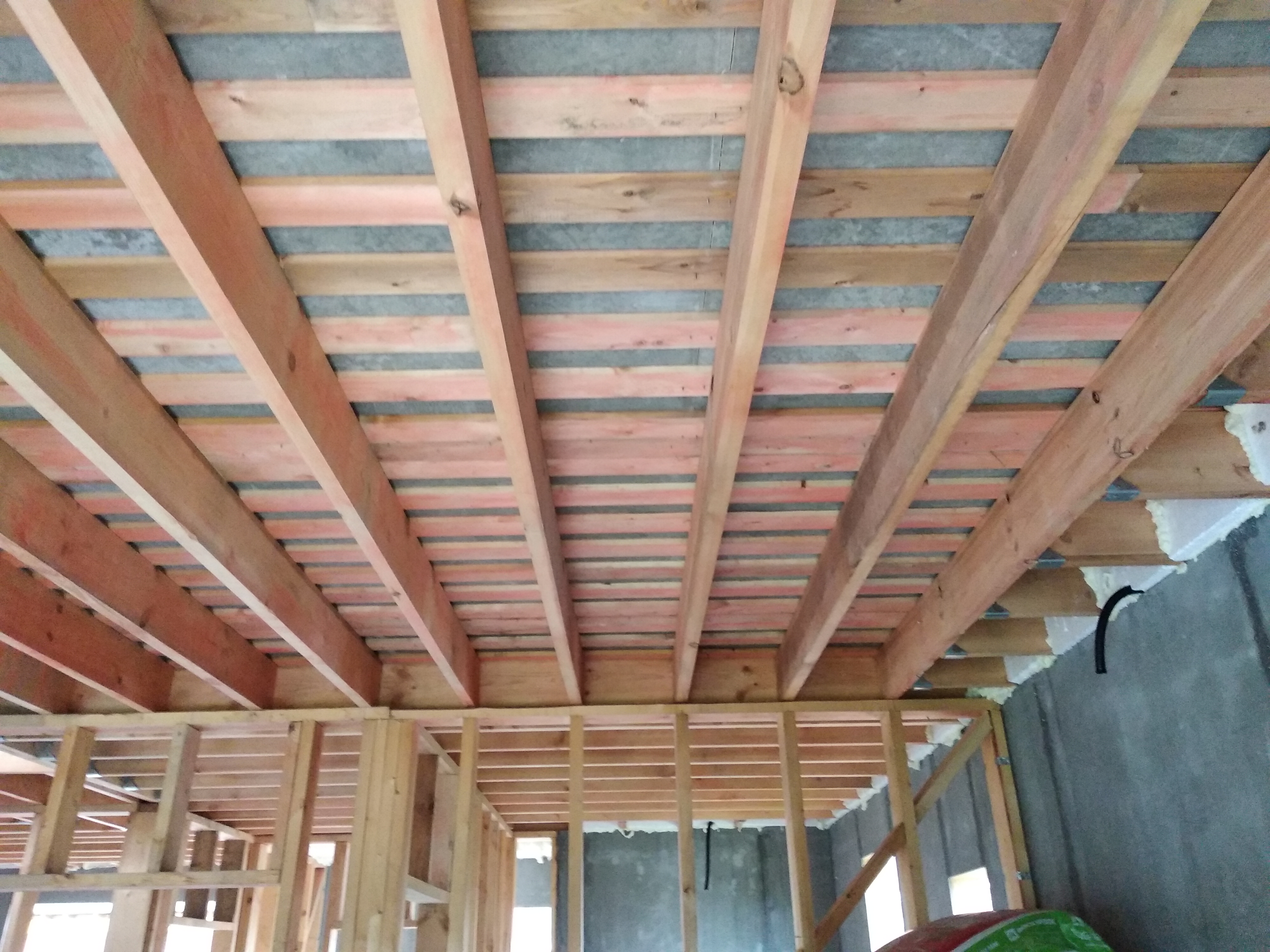 В межэтажных перекрытиях в качестве несущих лаг мы применяем двутавровые балки собственного производства с влагостойкой 24 мм. фанерой в сердечнике.