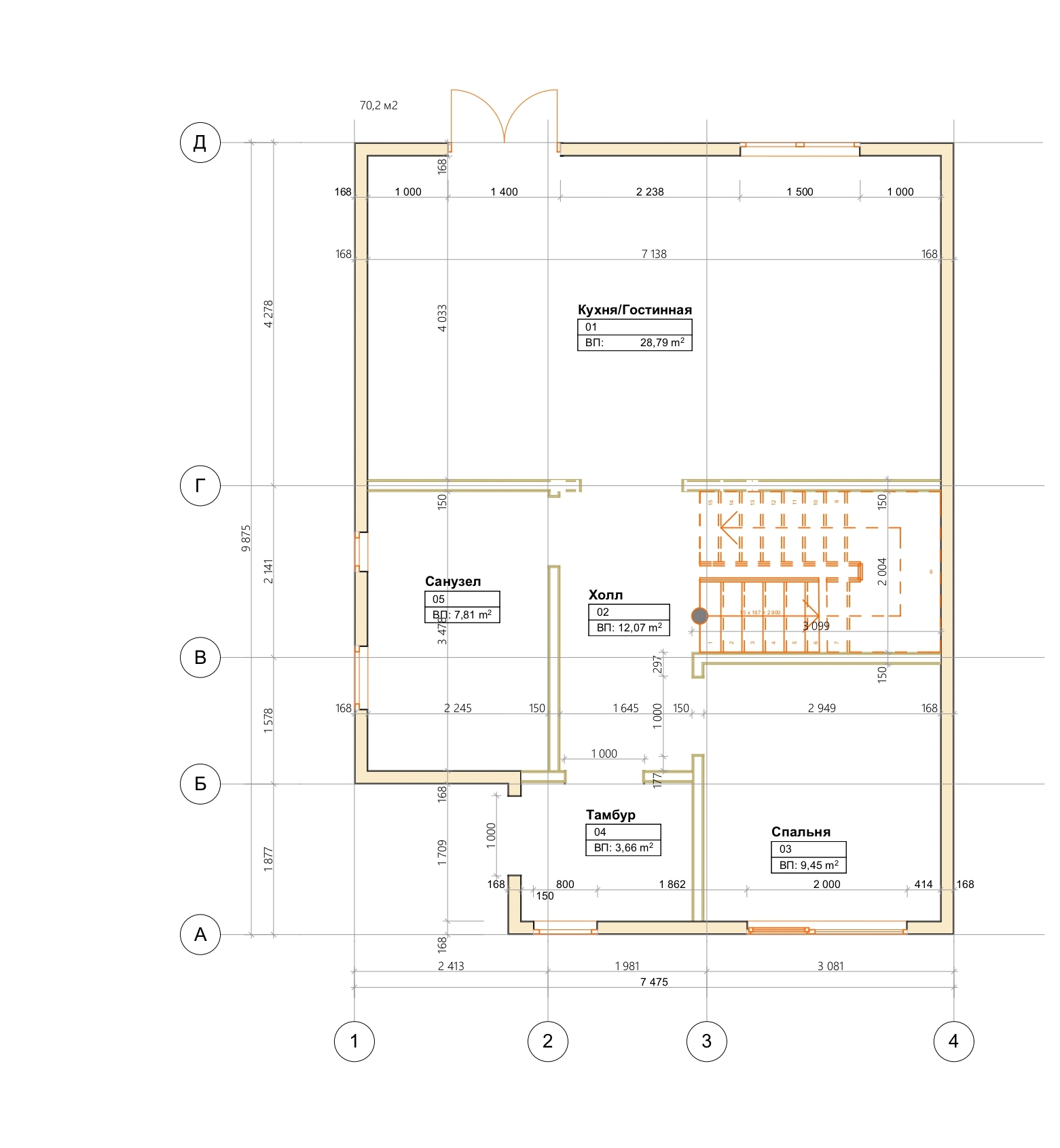 Площадь застройки – 70,2 м2