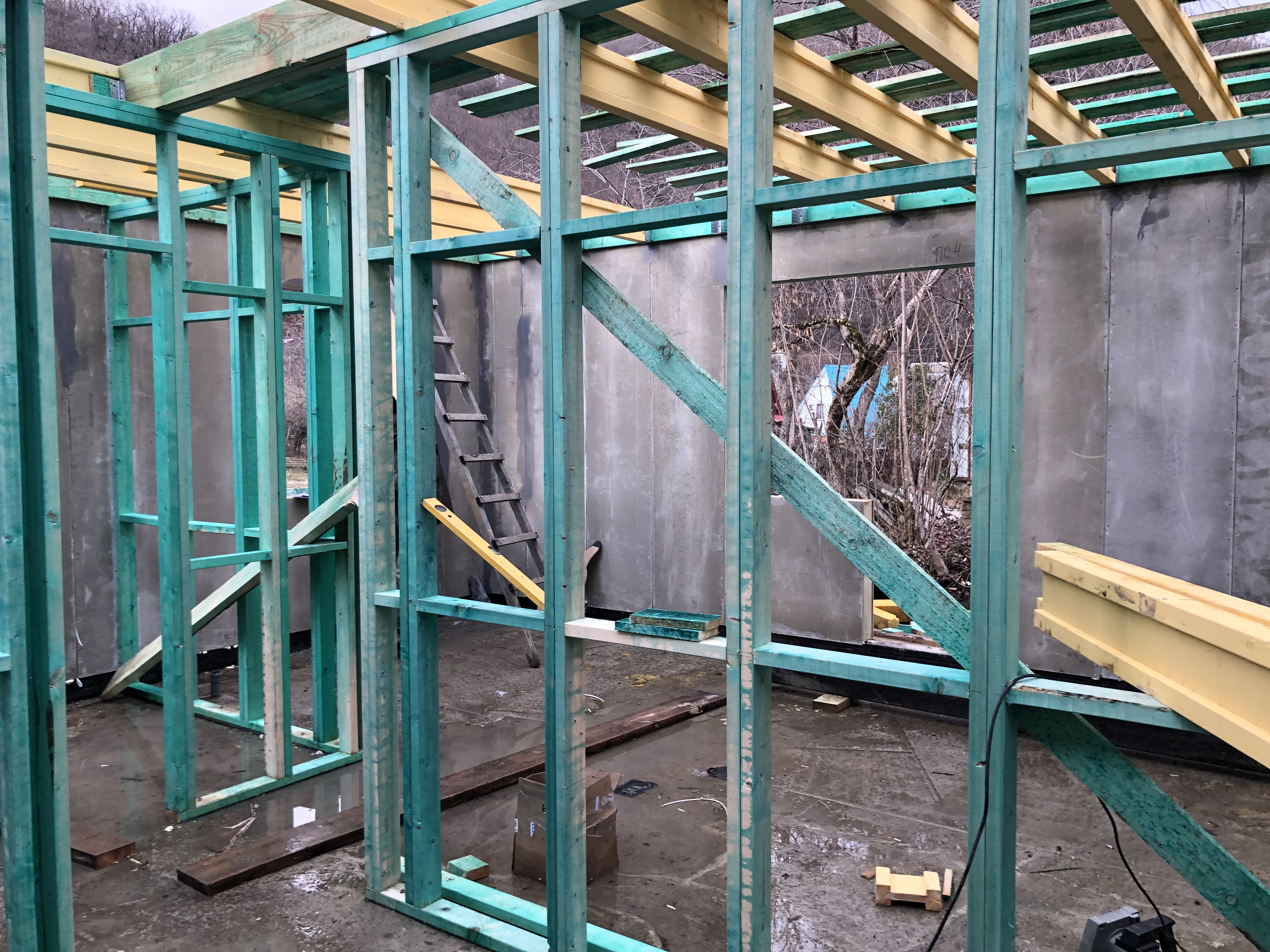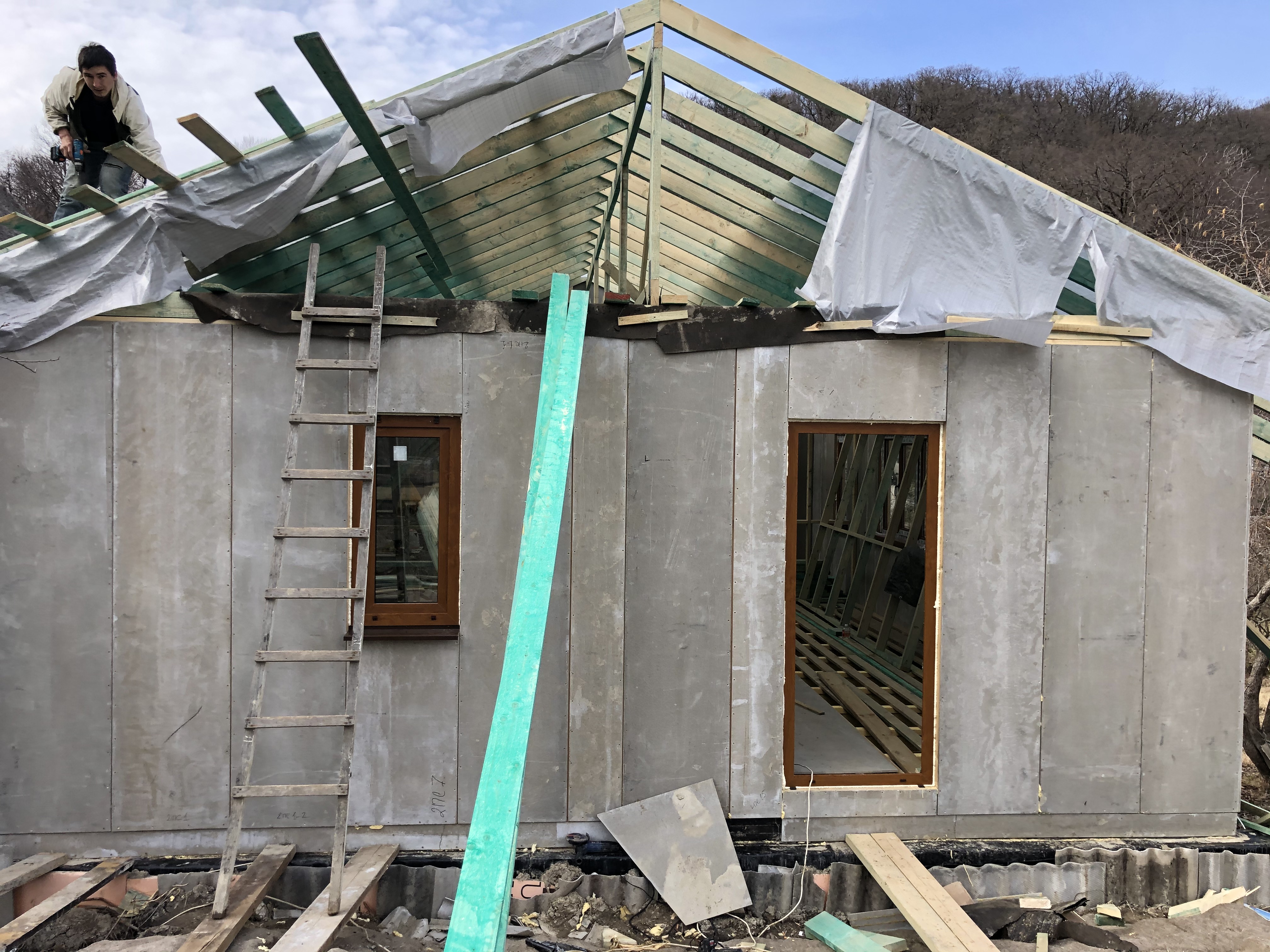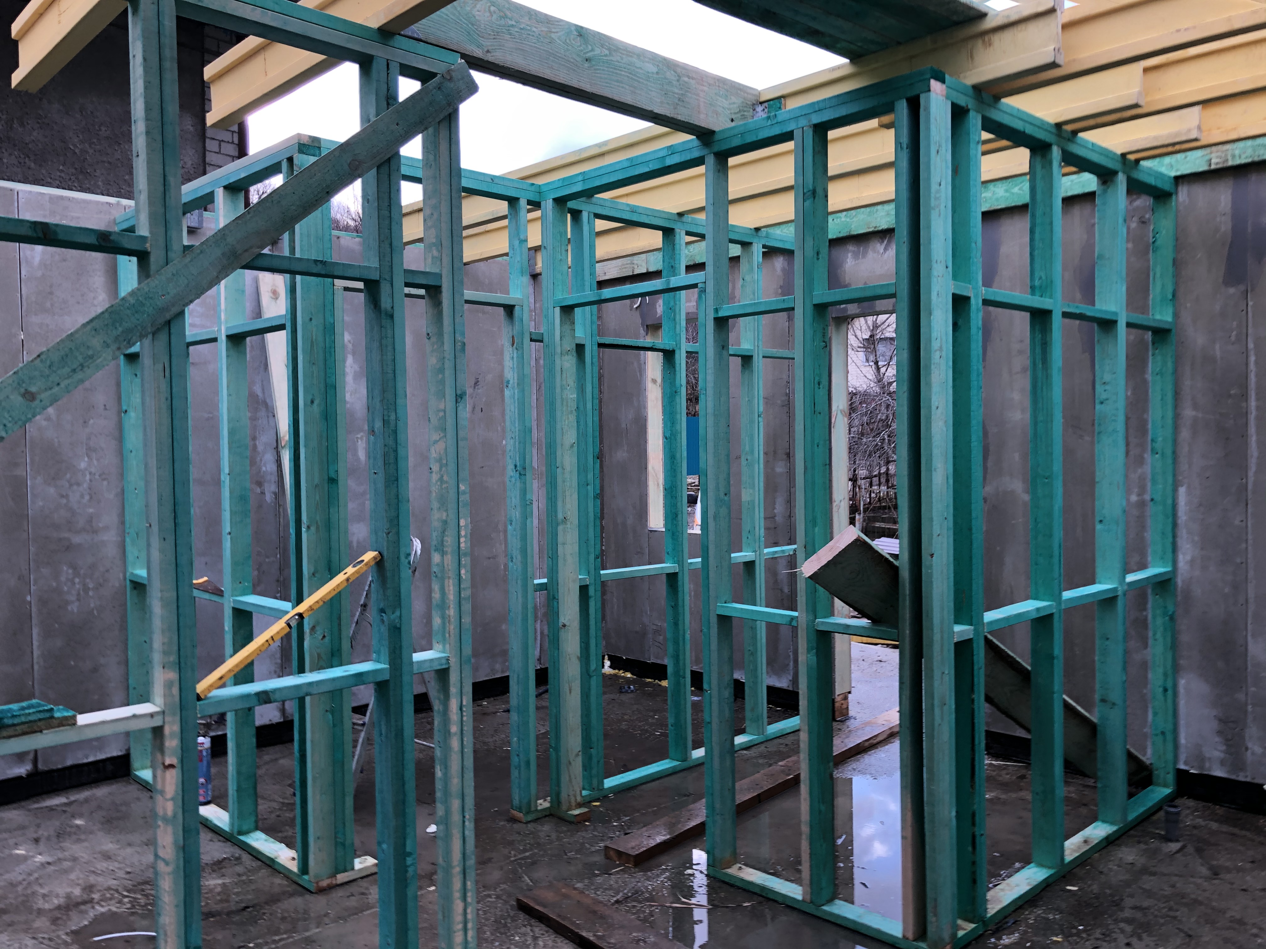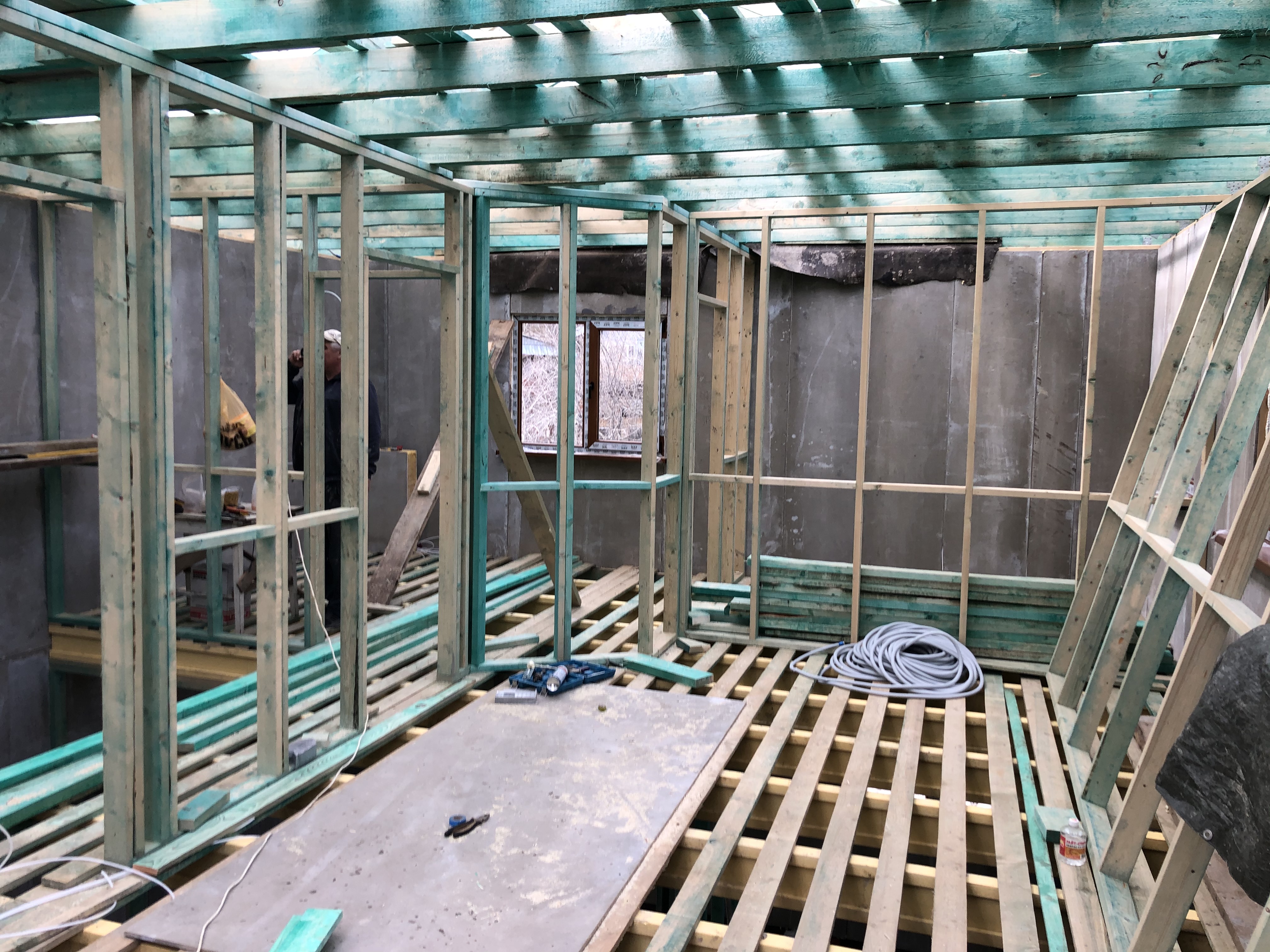 Ростверк изготовлен из калиброванного клееного бруса и защищен снаружи цементно-стружечной плитой