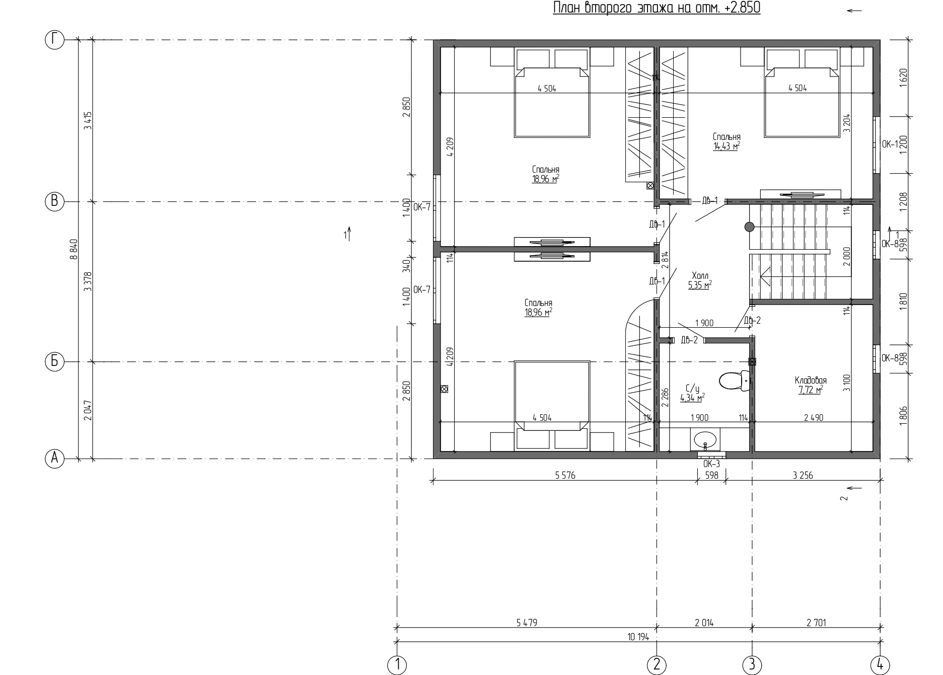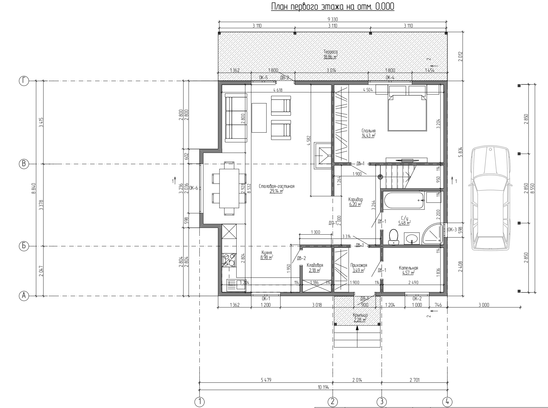 Площадь застройки – 107.14 м2