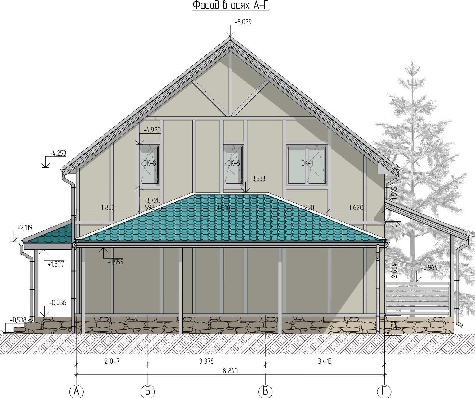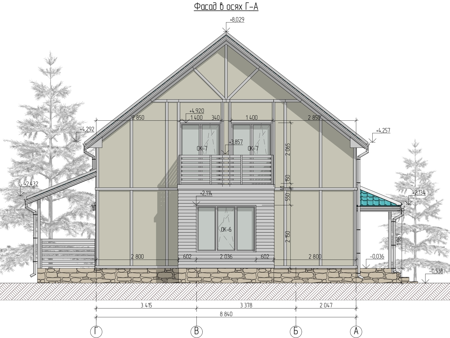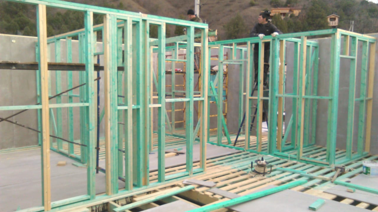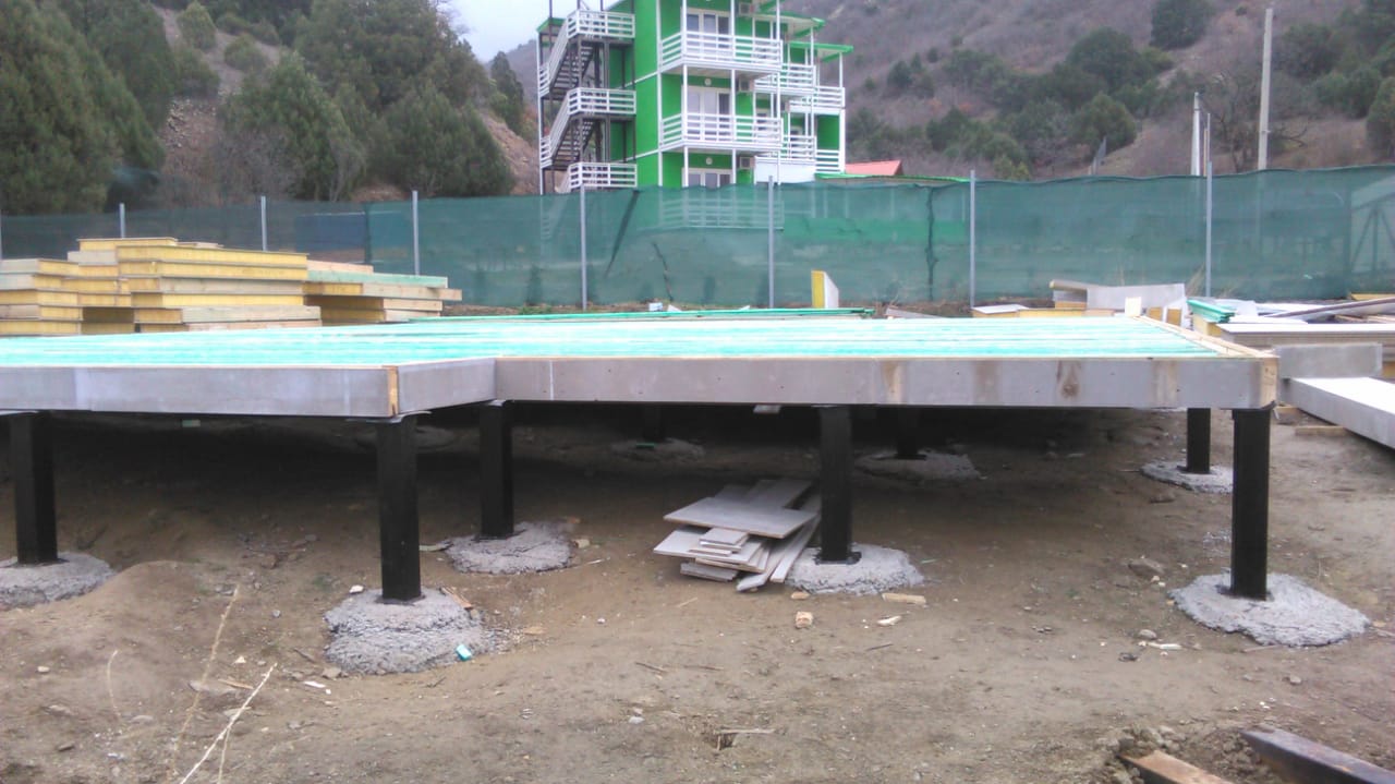 Ростверк изготовлен из калиброванного клееного бруса и защищен снаружи цементно-стружечной плитой