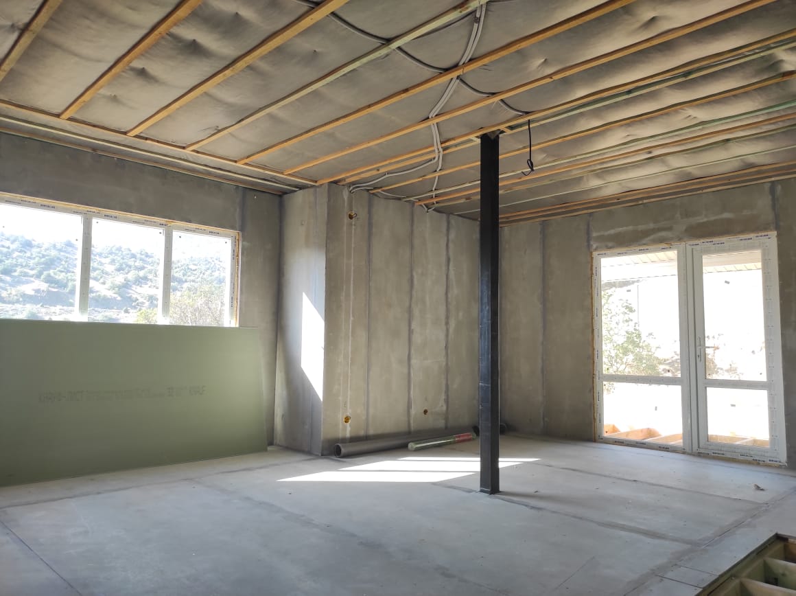 В качестве утеплителя помимо полистирола мы применяем каменную мин. плиту ISOVER. Класс горючести такого утеплителя НГ- негорюч. Данный утеплитель имеет потрясающие акустические (шумоизоляционные) характеристики!