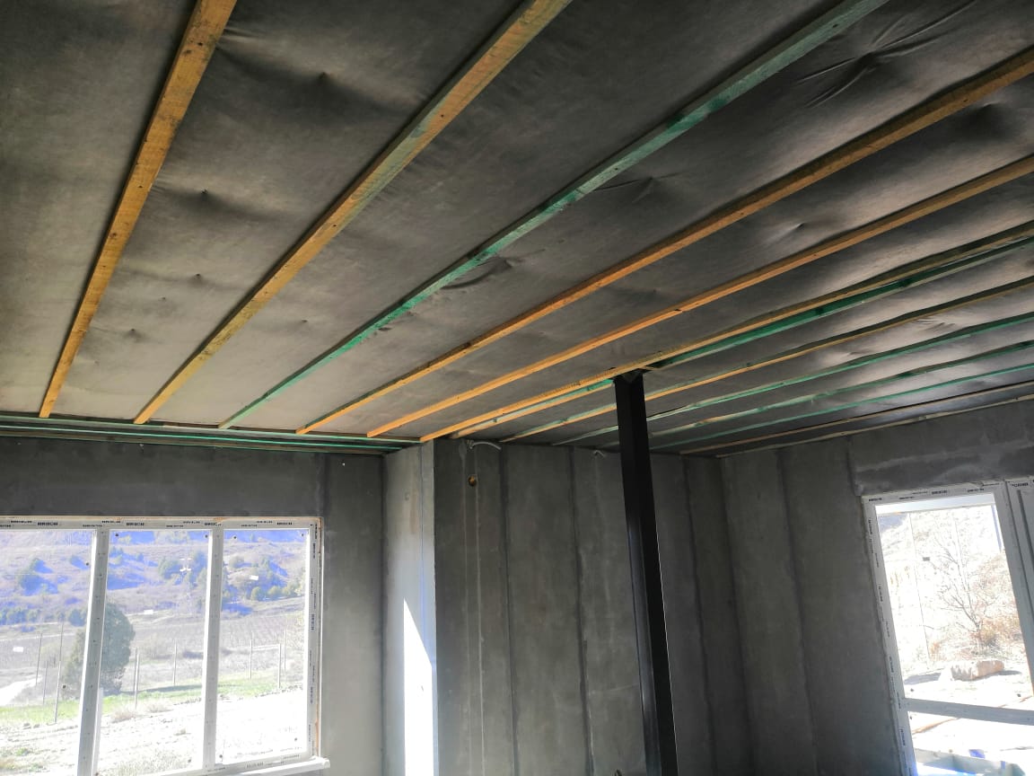 Потолок состоит из двутавровых балок 250 мм, а шаг монтажа балок - 600 мм.